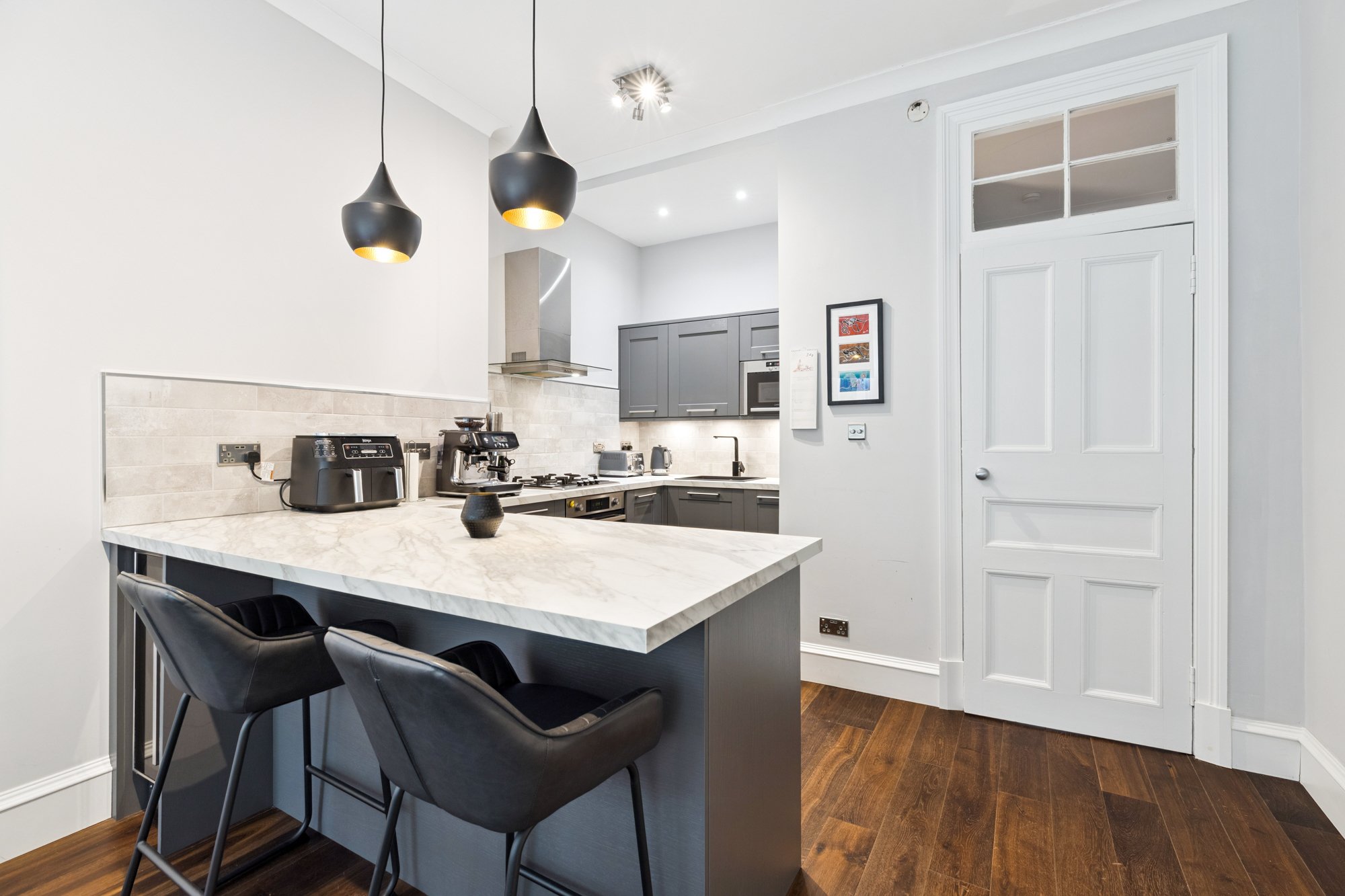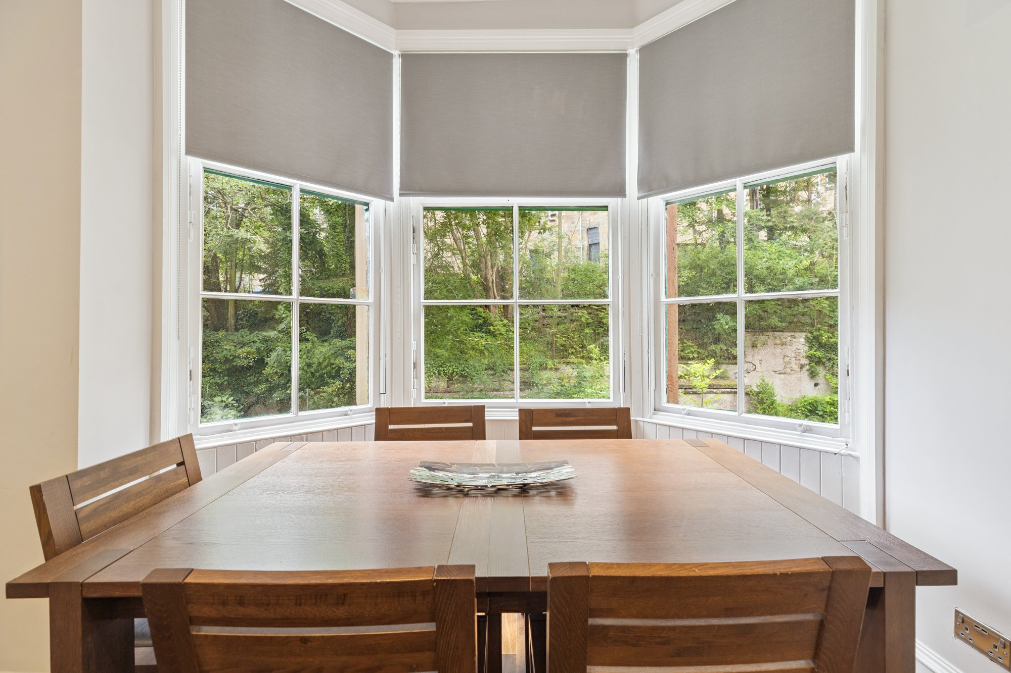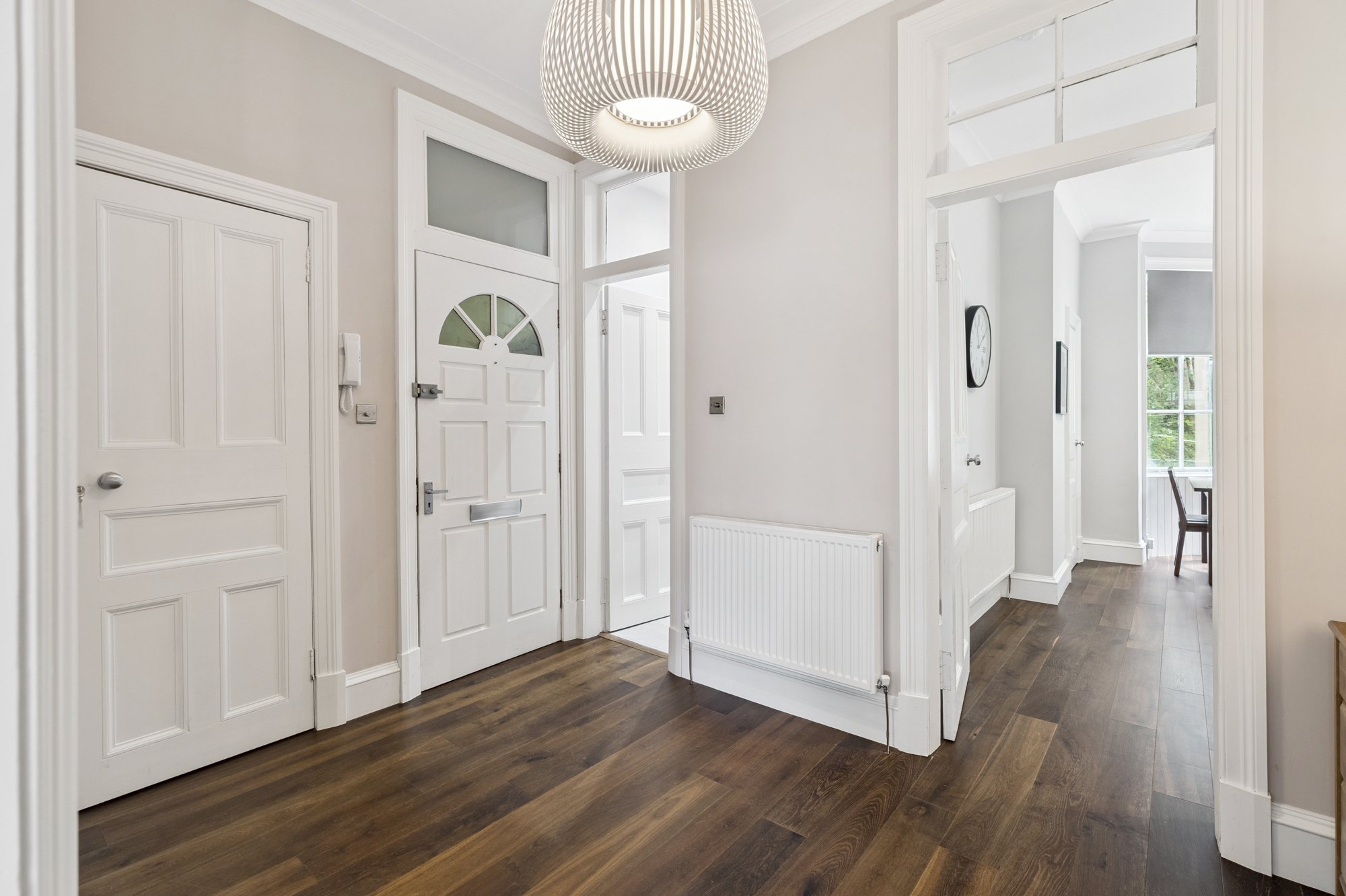 The property is accessed via a secure and well-maintained communal stairwell and opens into a spacious central hallway with excellent flow between rooms. To the front, the generously sized lounge is bright and welcoming, with a beautiful bay window that floods the space with natural light.