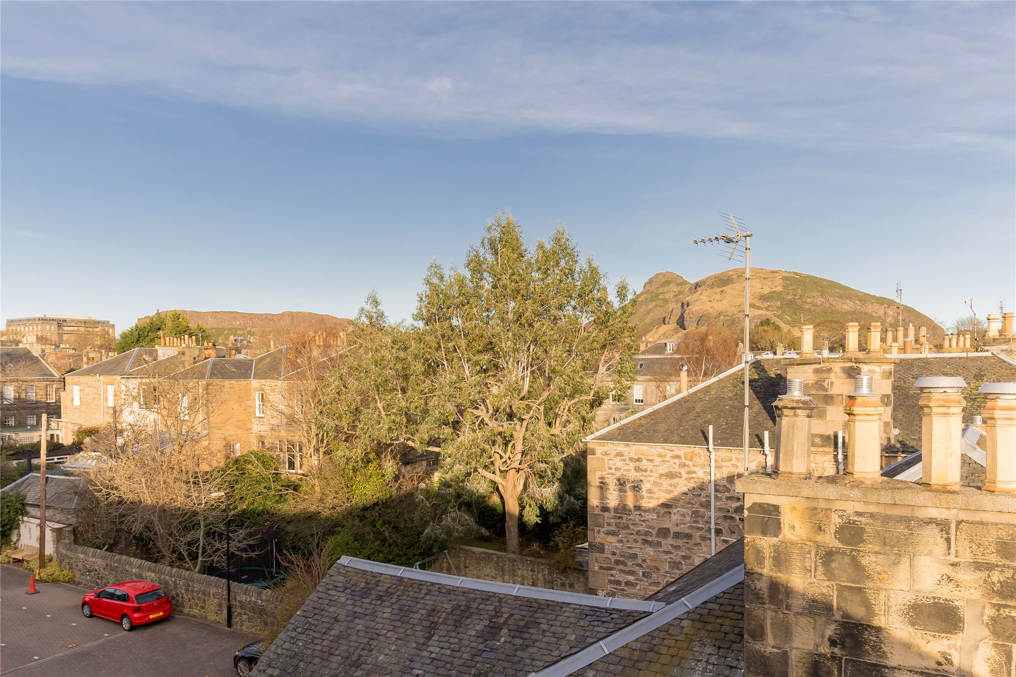 Set within an exclusive, modern landscaped development in the popular residential area of Newington in south Edinburgh, 19/9 South Gray Street presents a rare opportunity to acquire a beautifully proportioned, double upper three-bedroom apartment offering over 1,500 square feet of bright and versatile living space. Occupying the second and third floors, this impressive property benefits from allocated private parking, secure entry, and stunning panoramic views across the Pentland Hills and Arthur’s Seat – a combination that is seldom found in such a central location.