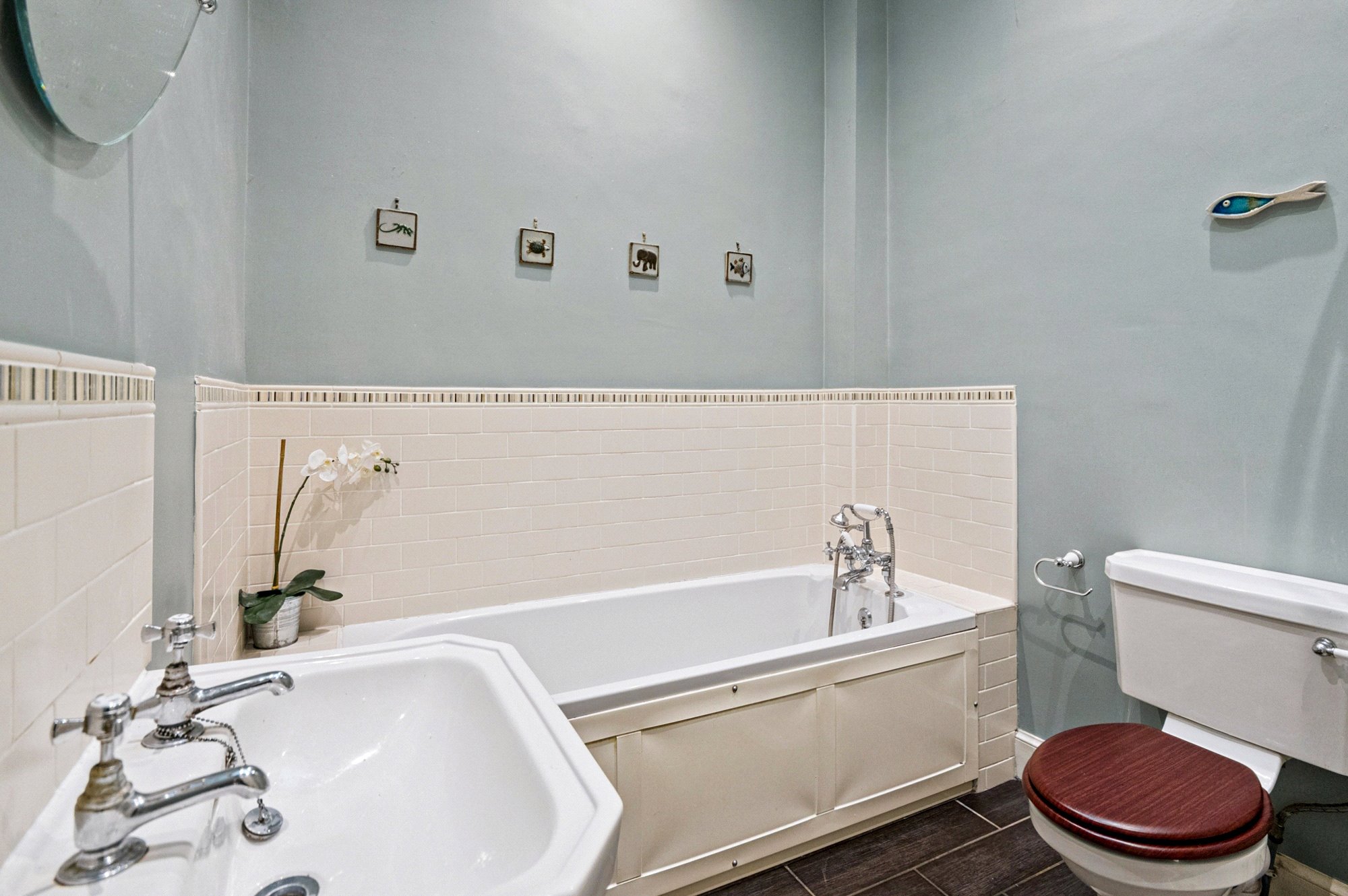 An attractive staircase with a roof light overhead leads to the first floor, where there are four well-proportioned bedrooms. To the front, the principal bedroom enjoys a delightful south-facing bay window, while a further bedroom at the front also benefits from the same sunny aspect. To the rear are two good-sized double bedrooms overlooking the garden, offering a peaceful outlook.