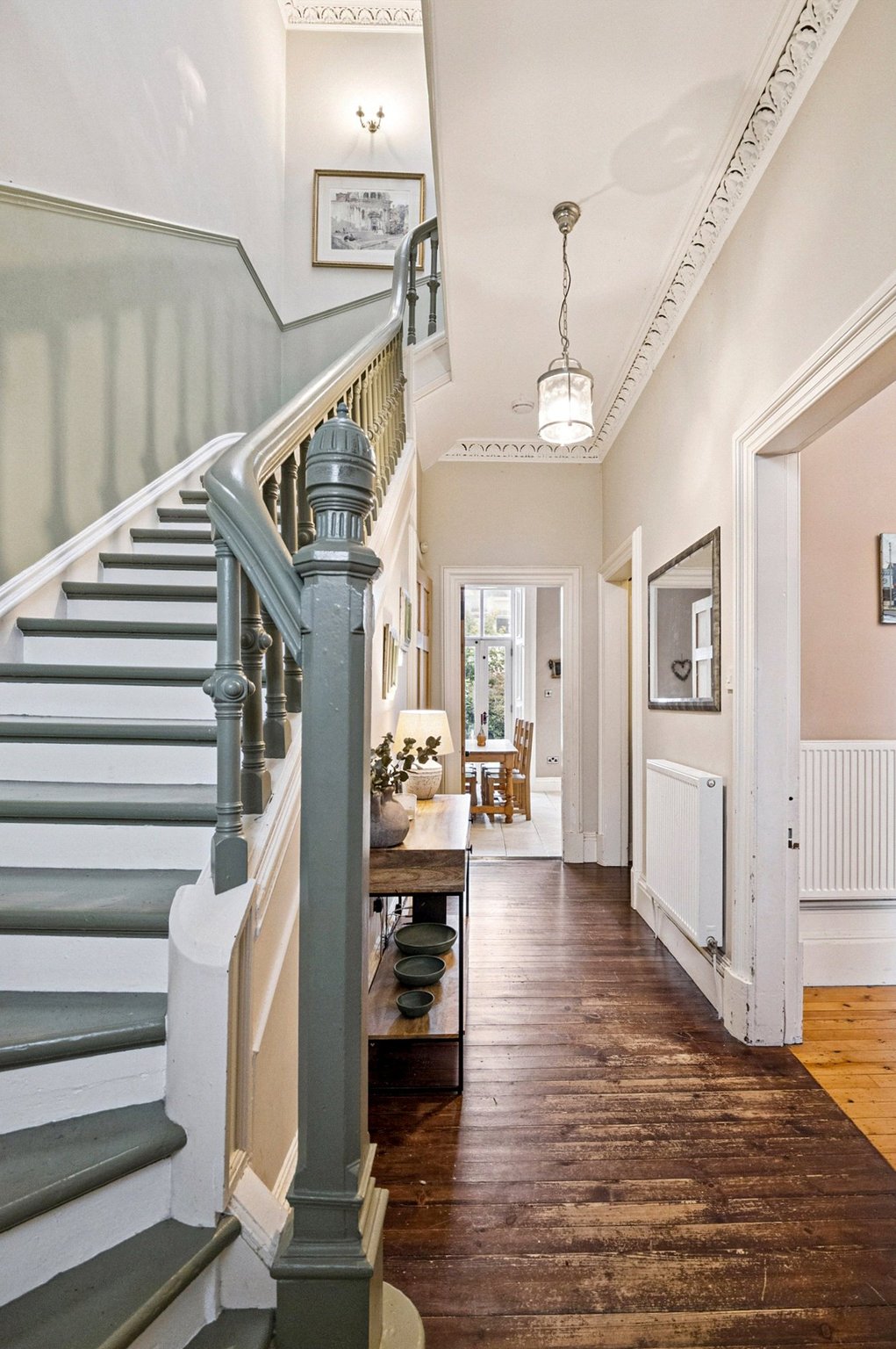 2 Afton Terrace is a beautifully proportioned Victorian home, entered via a private front garden and into a welcoming vestibule that opens into a spacious reception hall. Off the hall are useful storage cupboards and a box room, ideal for use as a study or home office.