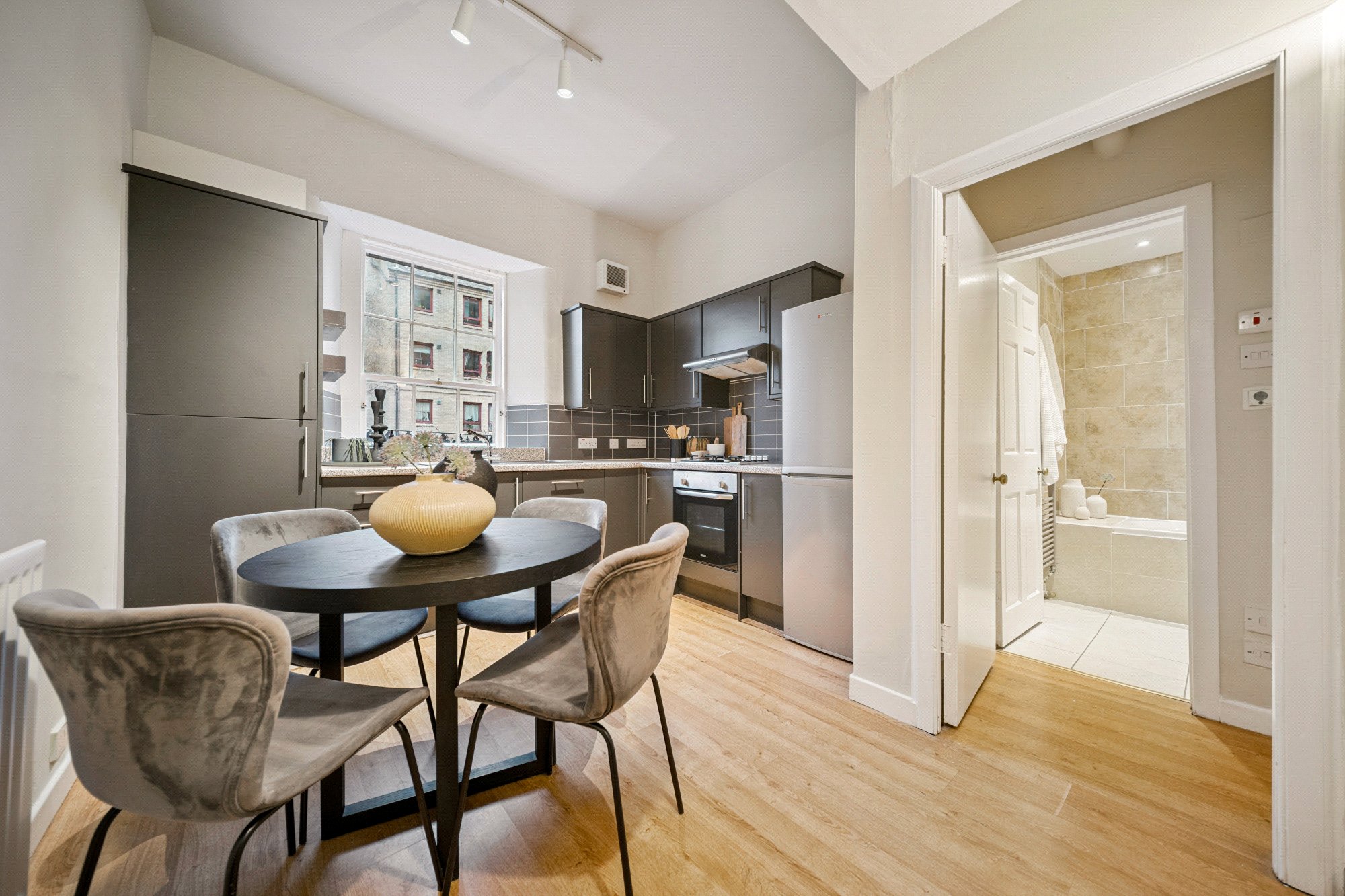 38/6 Barony Street is a spacious and well-proportioned three-bedroom main door flat arranged over ground and lower ground floors, forming part of a traditional Georgian, Category C-Listed tenement building. The property benefits from its own private entrance and a rare private terrace, offering flexible accommodation well suited to modern city living with a practical and versatile layout ideal for families, professionals, or those seeking additional work-from-home space.