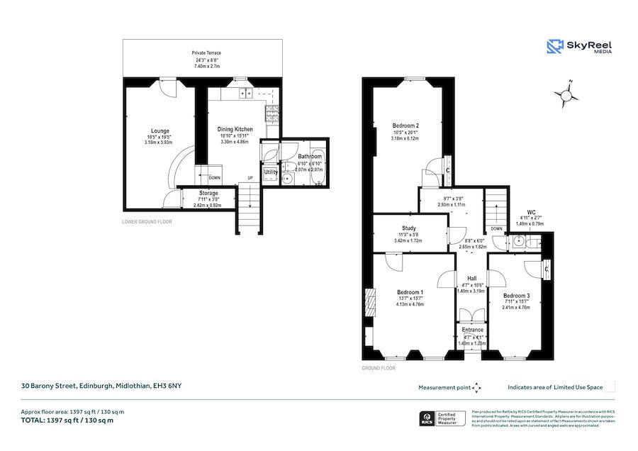An impressive three-bedroom main door duplex flat with private terrace, set over ground and lower ground floors, in the heart of Edinburgh’s New Town.