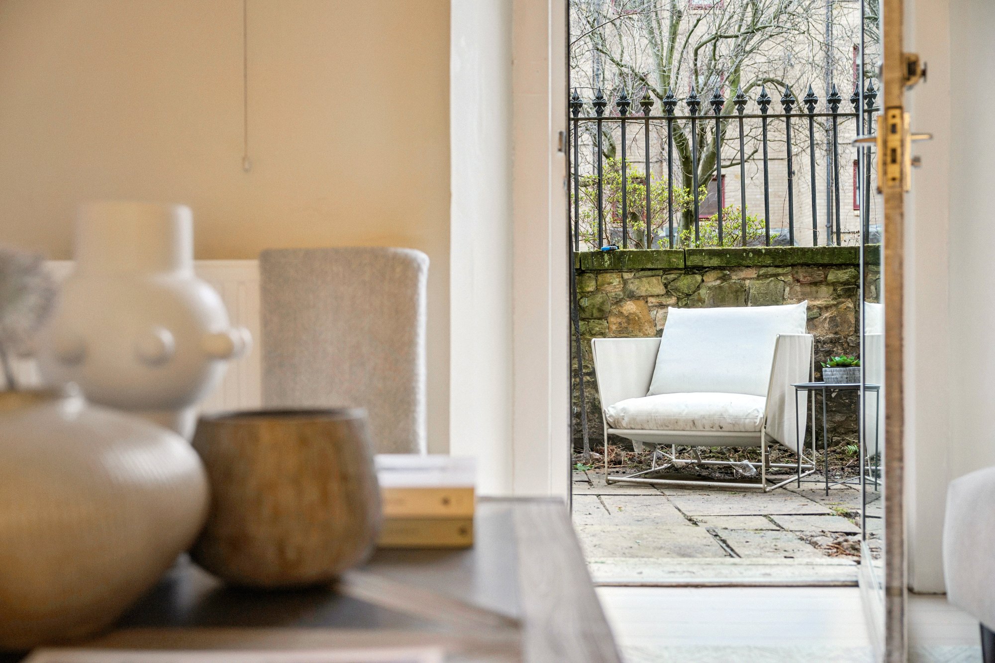 The property enjoys the rare benefit of a private terrace, providing valuable outdoor space for seating, entertaining, or container gardening — a notable feature for a central New Town property. In addition there is access to a shared residents' garden space with lawn and planted areas.