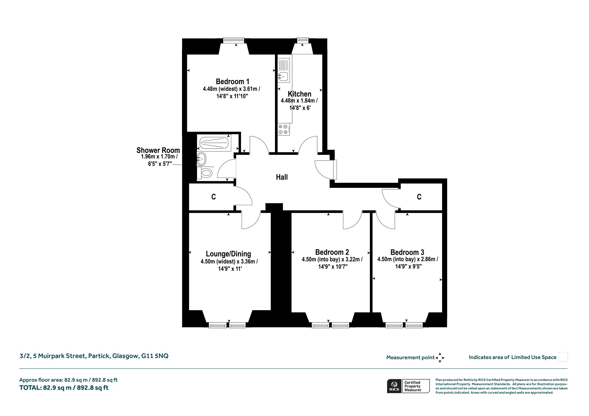 - Three-piece shower room