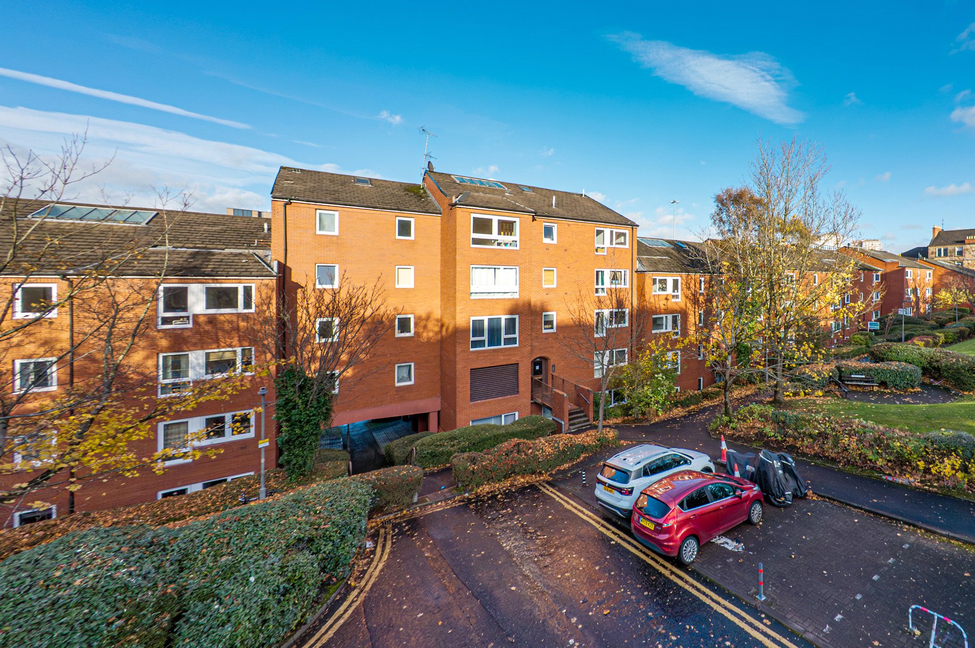 This stylish one-bedroom top floor flat is set within a modern development in Garnethill, the red brick development was completed in mid-1980’s, in an area on the west edge of the City Centre close to Glasgow West End. This popular development has attractive residents tree lined grounds and offers the significant advantage of an lockable allocated parking space and open outlook across the city skyline and beyond. The property is positioned on the fourth floor and is in walk in condition with a modern kitchen and bathroom. The Garnethill area is a few minutes’ walk from Sauchiehall Street, St Georges Cross, and Cowcaddens Underground and Glasgow School of Art, The Royal Conservatoire and Glasgow Caledonian University and Strathclyde and Glasgow University all within good proximity. Internally the property is freshly presented throughout and includes a bright and spacious living/dining room having a large double glazed picture window viewing north over West Graham Street.