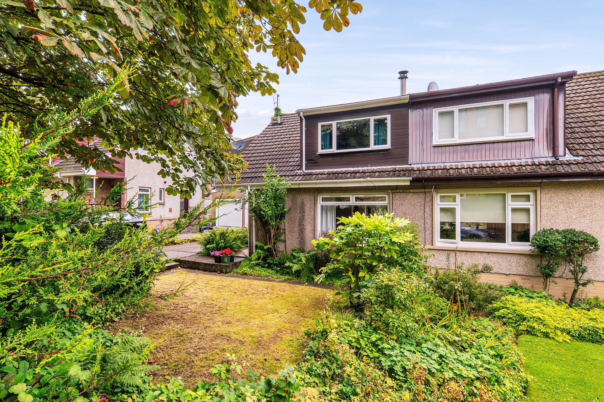 The house is approached via driveway and path, flanked by front garden leading to the front door.
