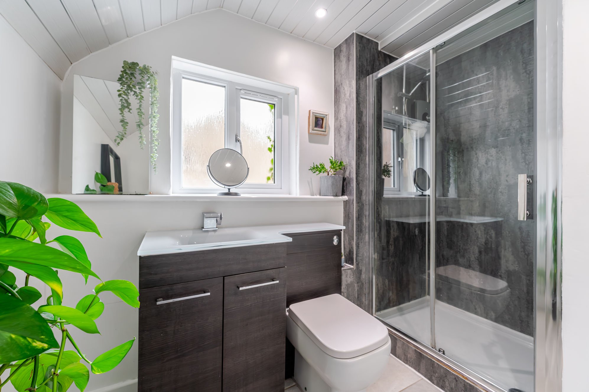 The first floor accommodation comprises two double sized bedrooms, both with integrated wardrobes, wet walled shower room with white two piece suite, vanity unit and separate walk-in shower and a third bedroom.
