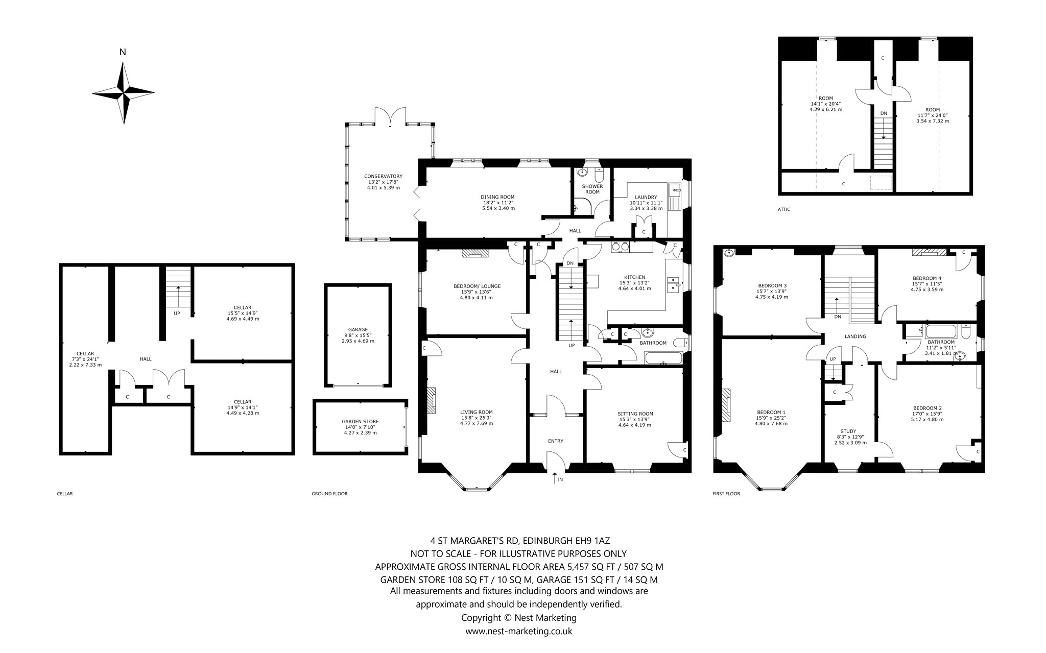 Ground Floor: Vestibule, reception hall, sitting room, living room, dining room, kitchen, conservatory, bedroom/lounge, laundry, shower room, extensive cellar storage