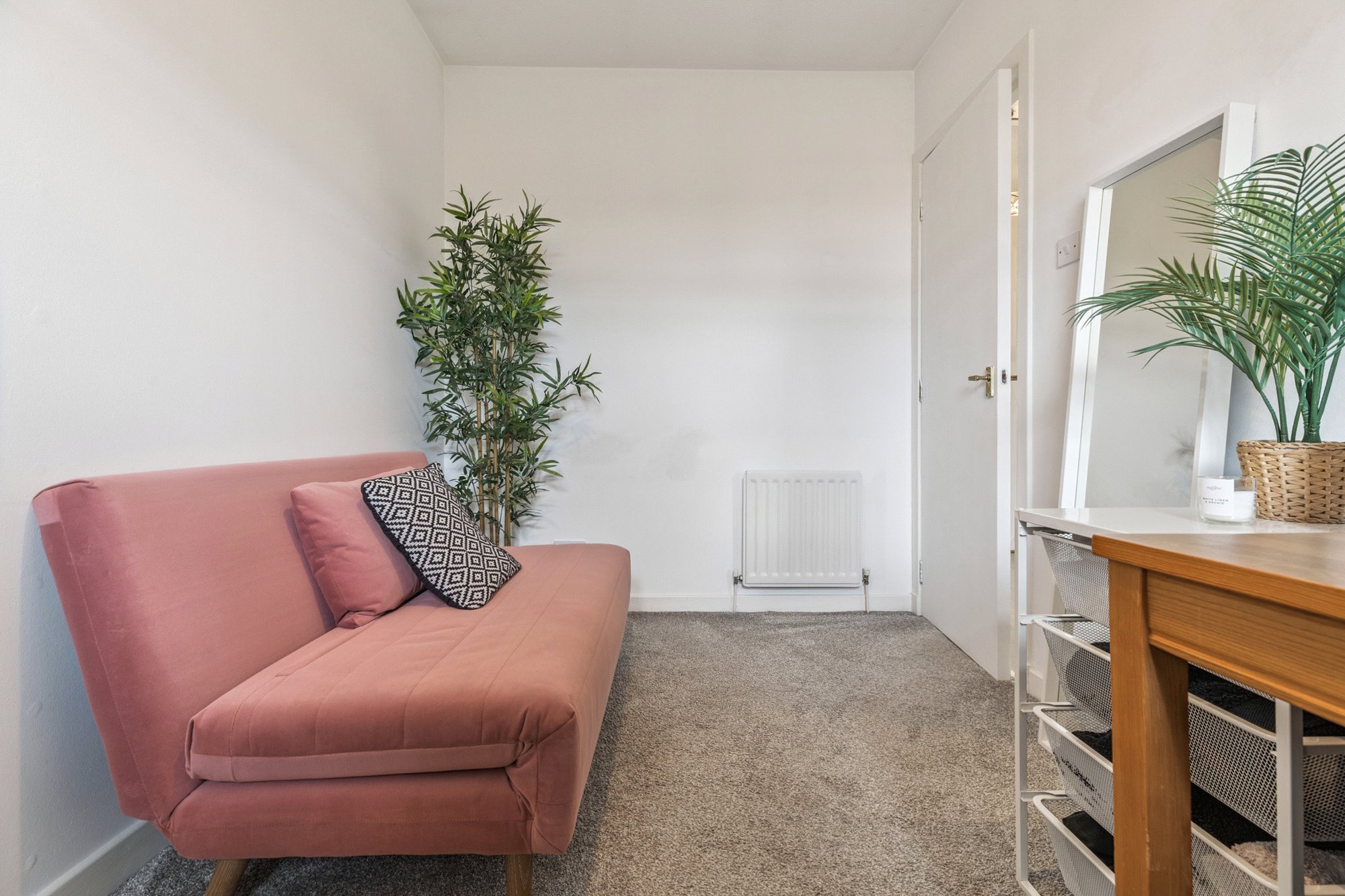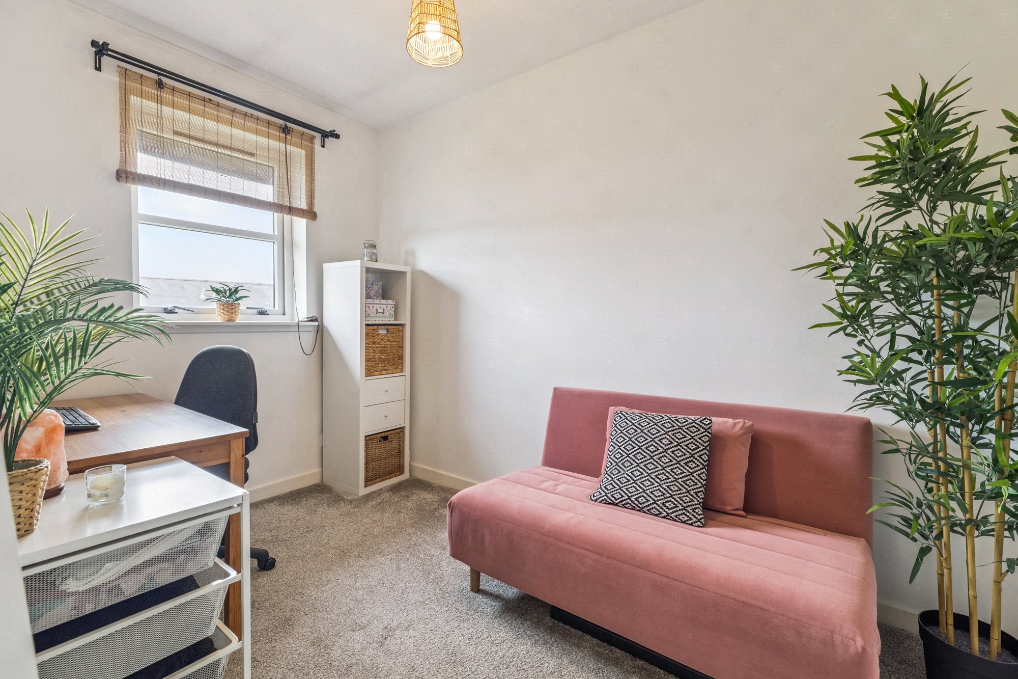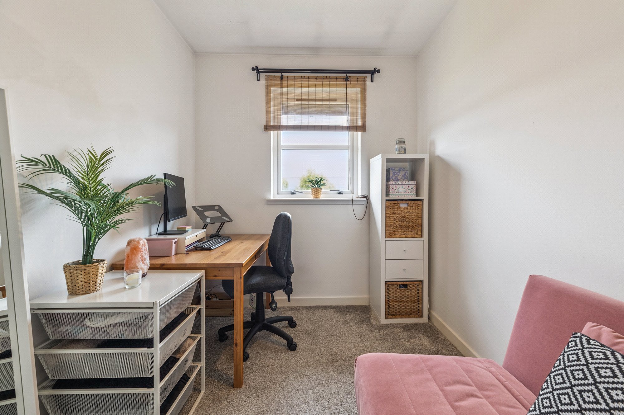 From the shopping centre on Crown Street, continue southwest to the junction with Alexander Crescent, following the one-way road system around the crescent, you will find No. 21 on the south facing side of the street on left-hand side.