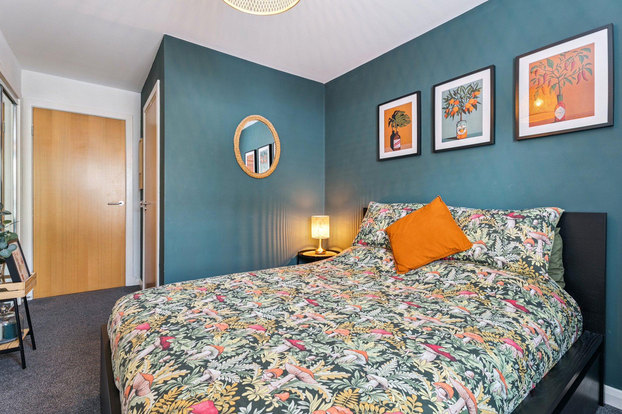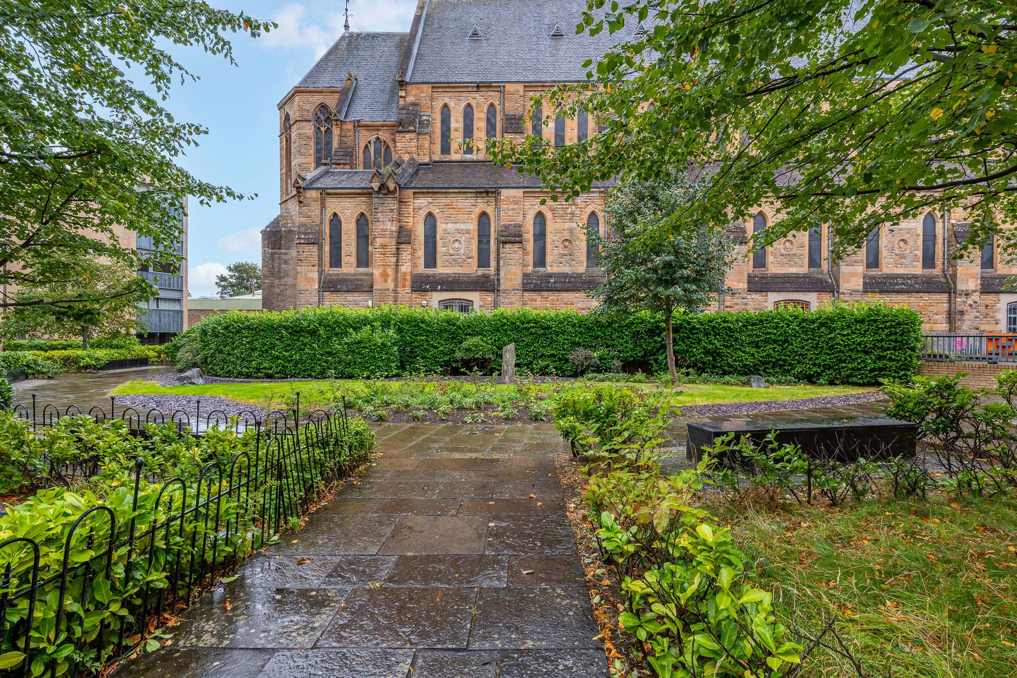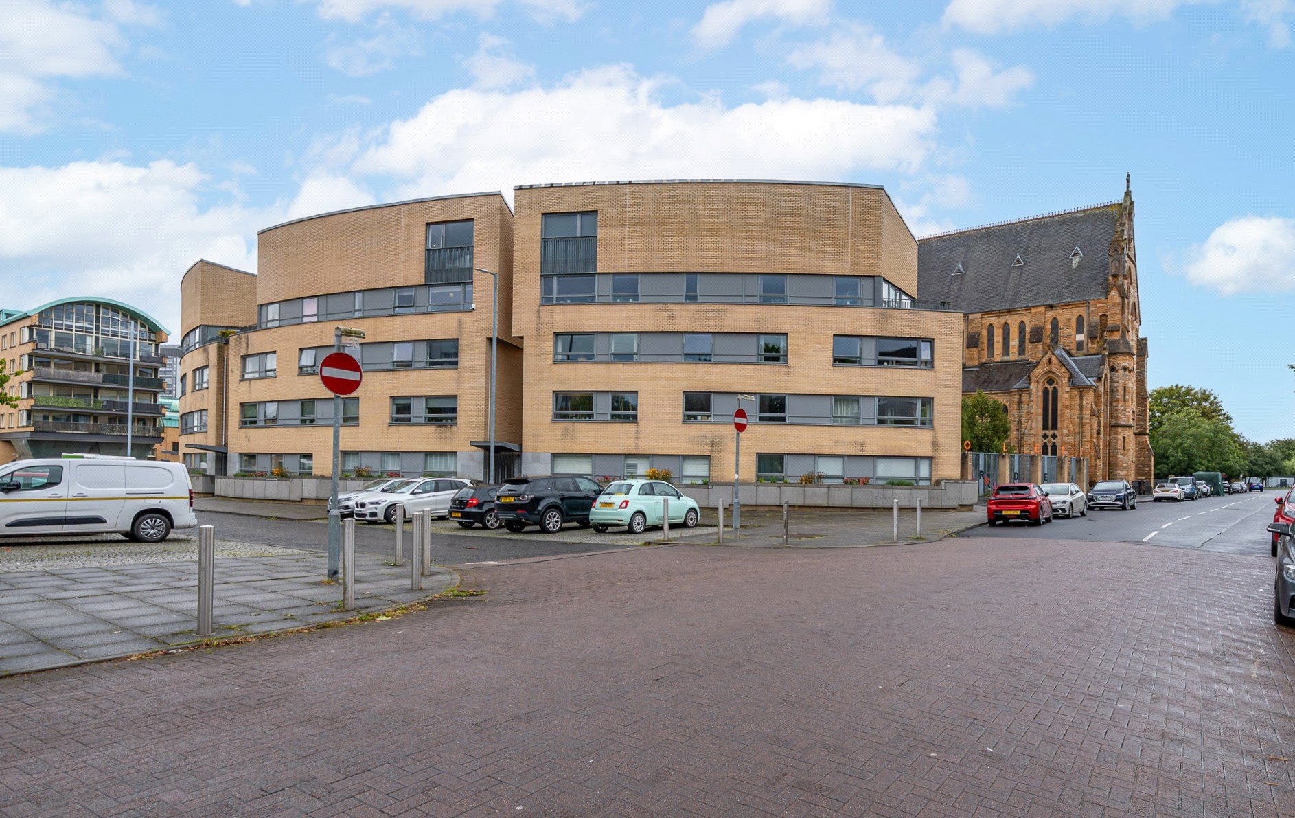 Stylishly presented and freshly decorated, this modern two-bedroom apartment, is situated on the ground floor of a gated courtyard development and centrally located within the popular New Gorbals, a suburb to the south of the City Centre and only minutes’ walk over the River Clyde to Glasgow Green and the Merchant City beyond. The enclosed resident’s communal courtyard gardens offer a unique and contemporary outlook from the modern urban structure of the building towards the St Francis Community Centre Church, one of the Gorbals’ last important Victorian Buildings saved and repurposed for local community use, its striking Gothic architecture set against a contemporary mix of modern apartment blocks.