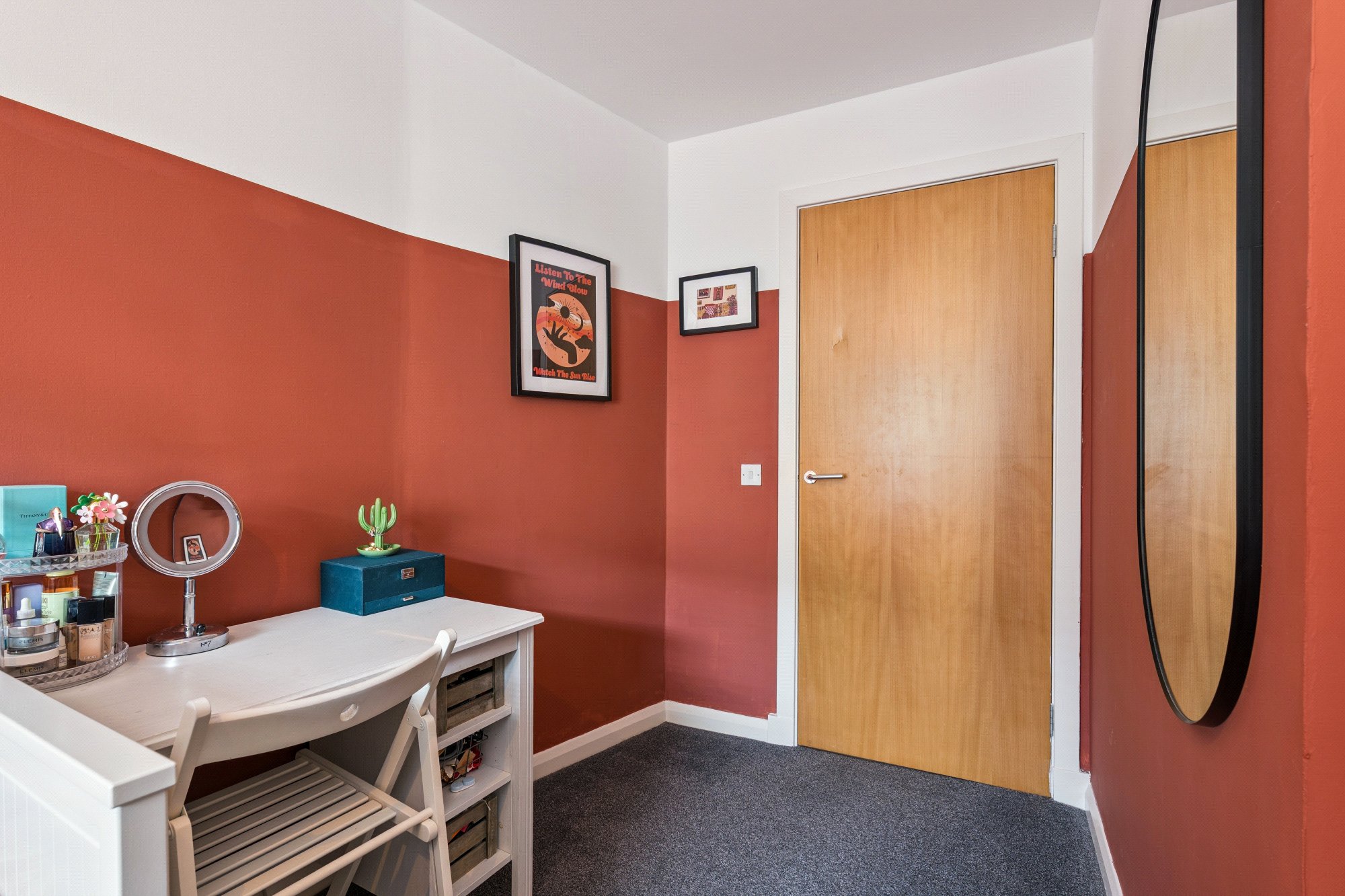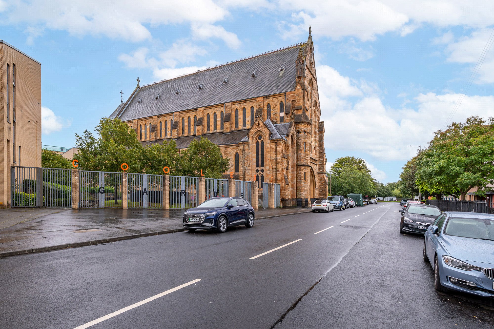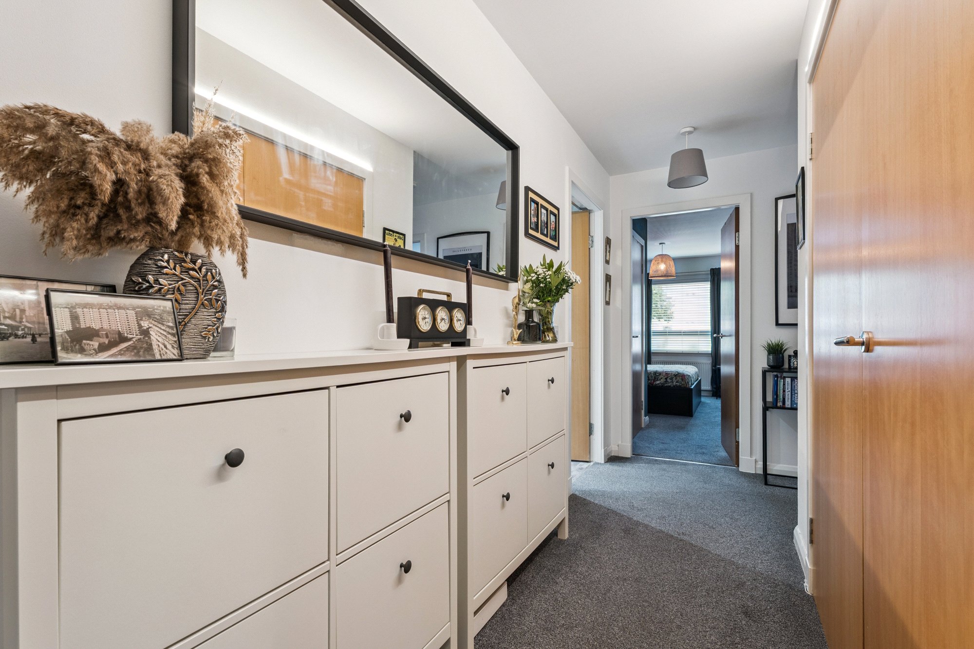 Stylishly presented and freshly decorated, this modern two-bedroom apartment, is situated on the ground floor of a gated courtyard development and centrally located within the popular New Gorbals, a suburb to the south of the City Centre and only minutes’ walk over the River Clyde to Glasgow Green and the Merchant City beyond. The enclosed resident’s communal courtyard gardens offer a unique and contemporary outlook from the modern urban structure of the building towards the St Francis Community Centre Church, one of the Gorbals’ last important Victorian Buildings saved and repurposed for local community use, its striking Gothic architecture set against a contemporary mix of modern apartment blocks.