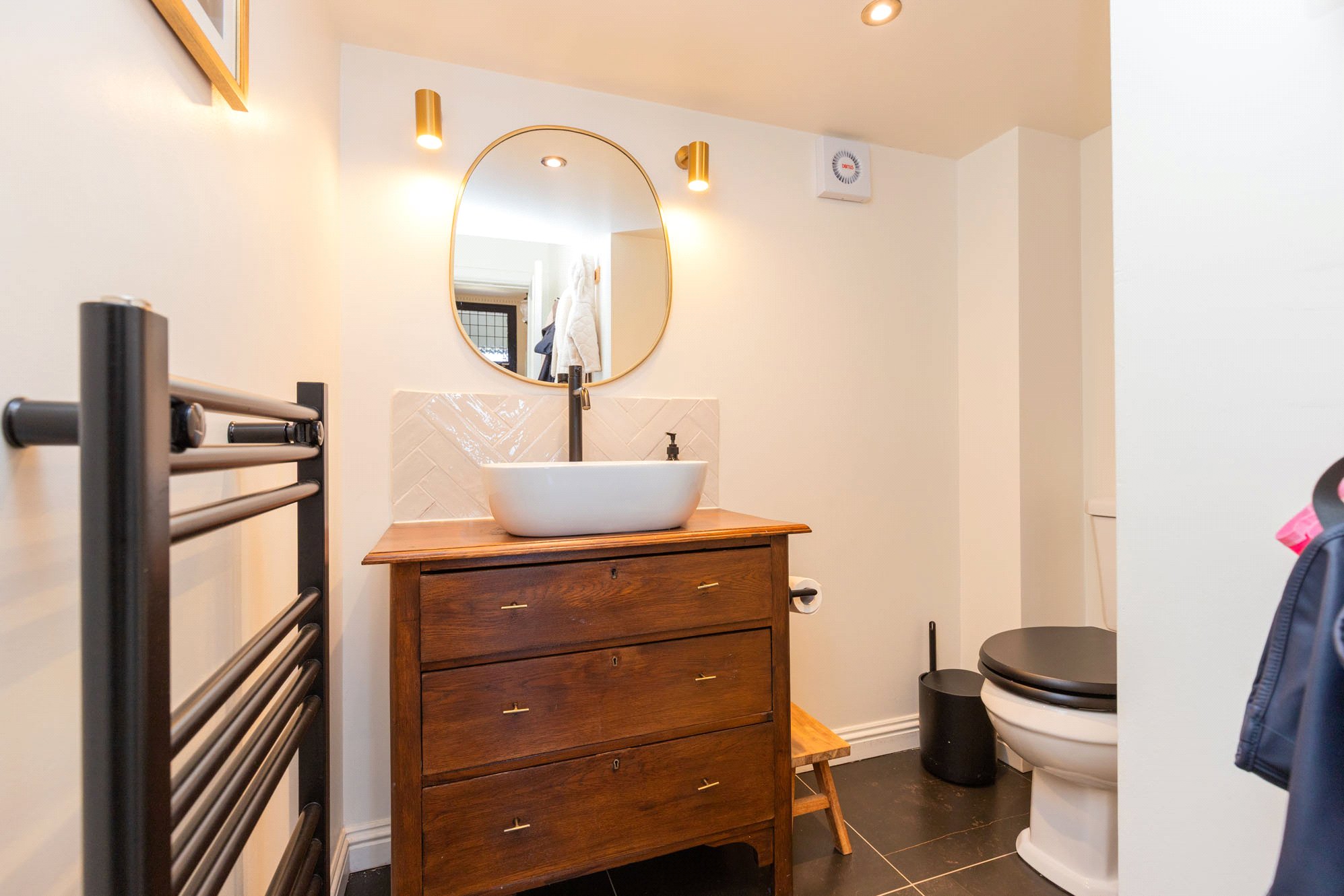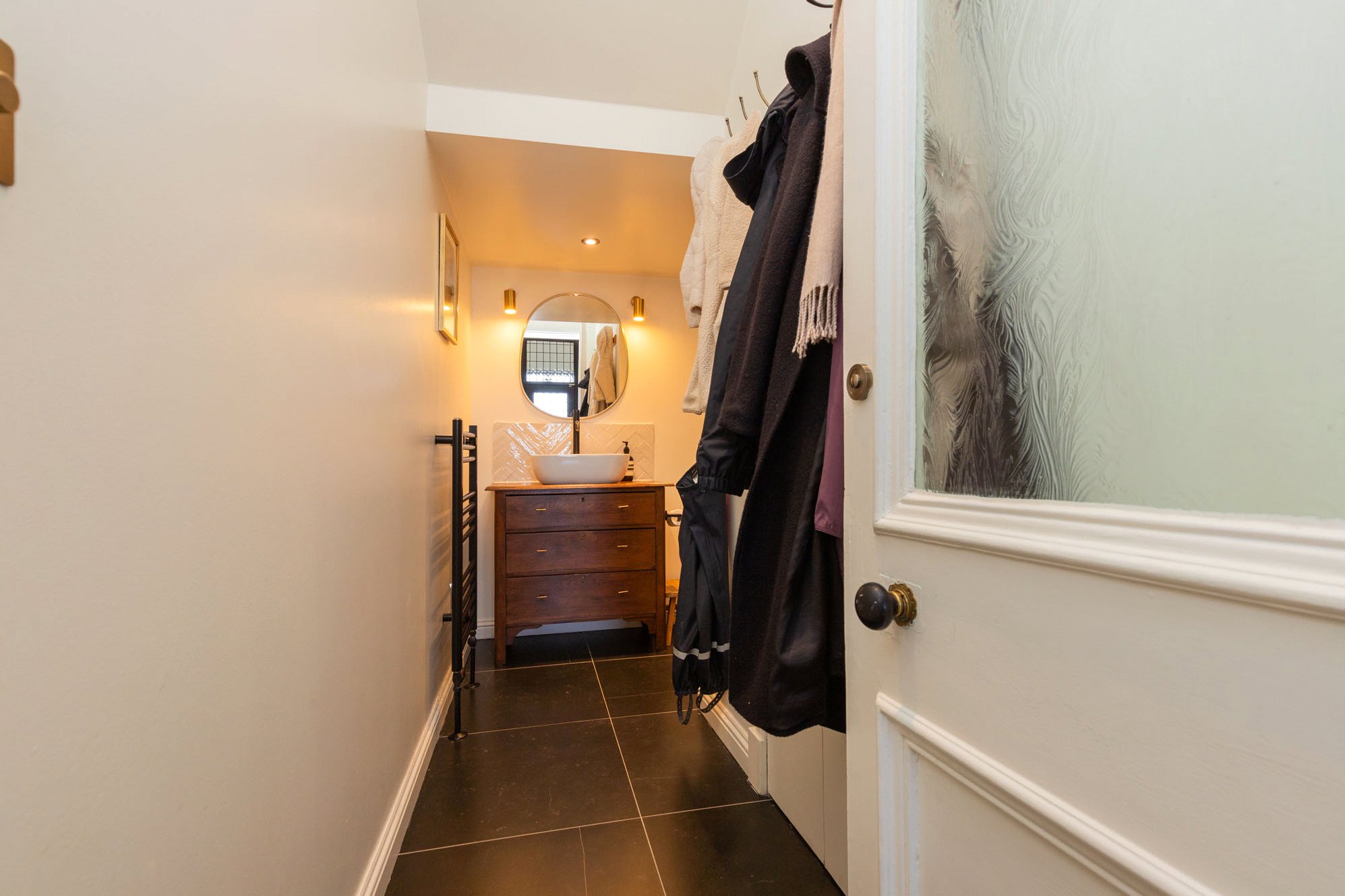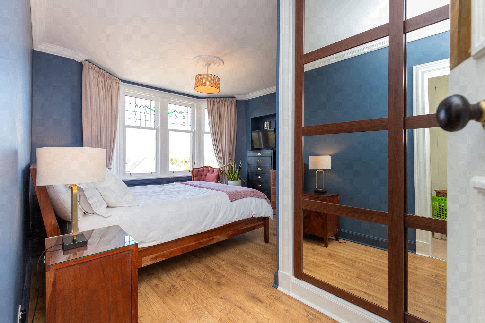 Upstairs, the first floor hosts three well-proportioned bedrooms, including a particularly generous principal bedroom with en-suite, along with a stylish family bathroom. A further staircase leads to the second floor where an additional bedroom offers flexible use as guest accommodation or a home office.