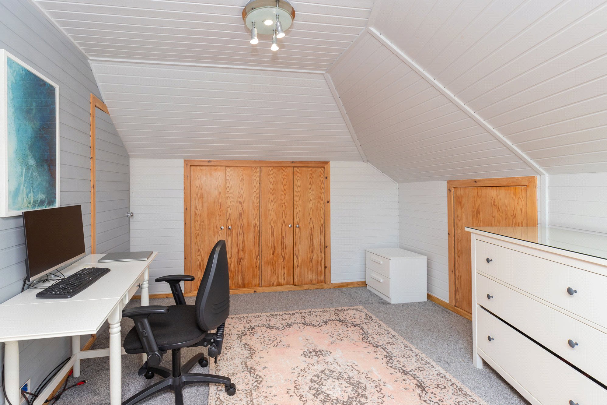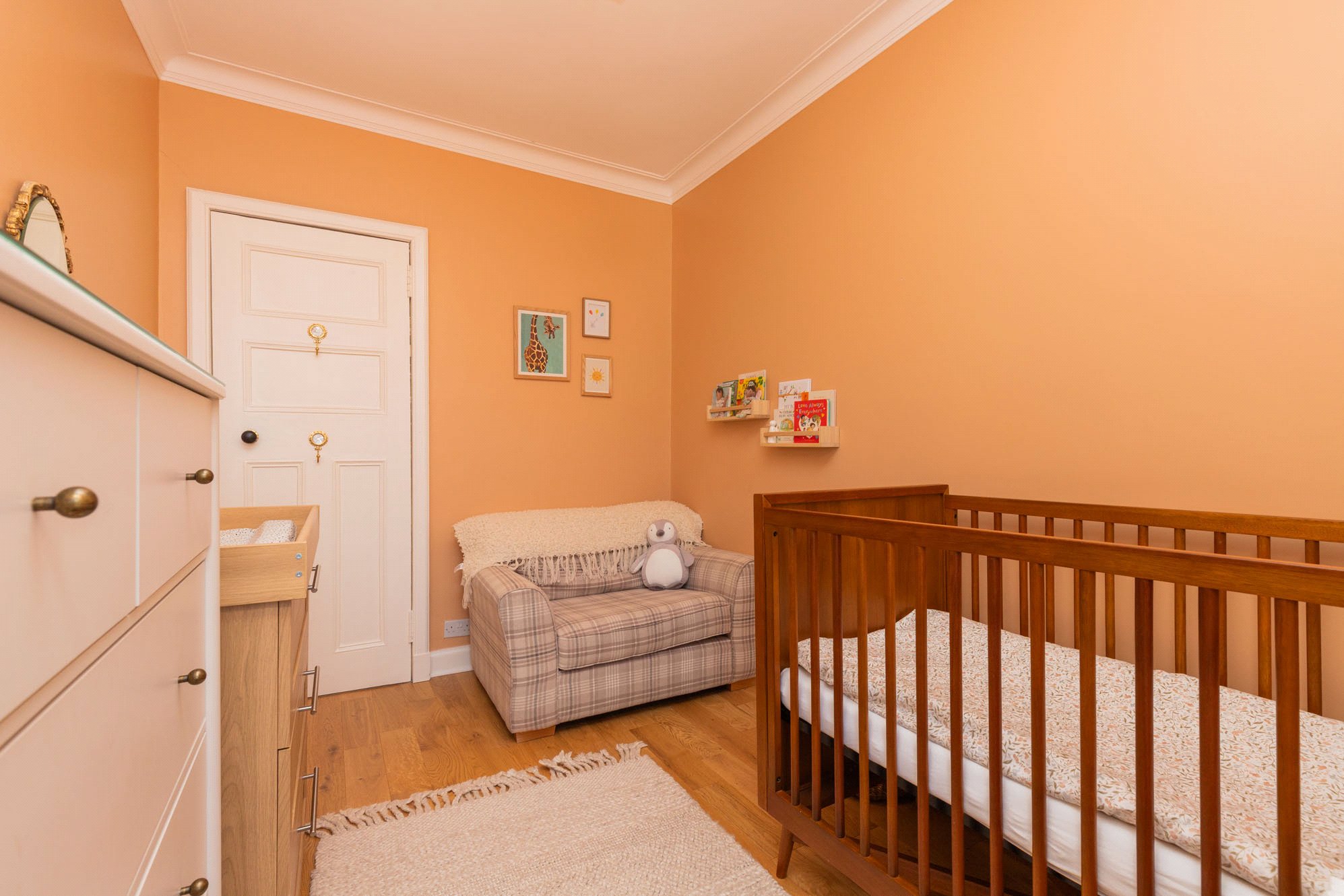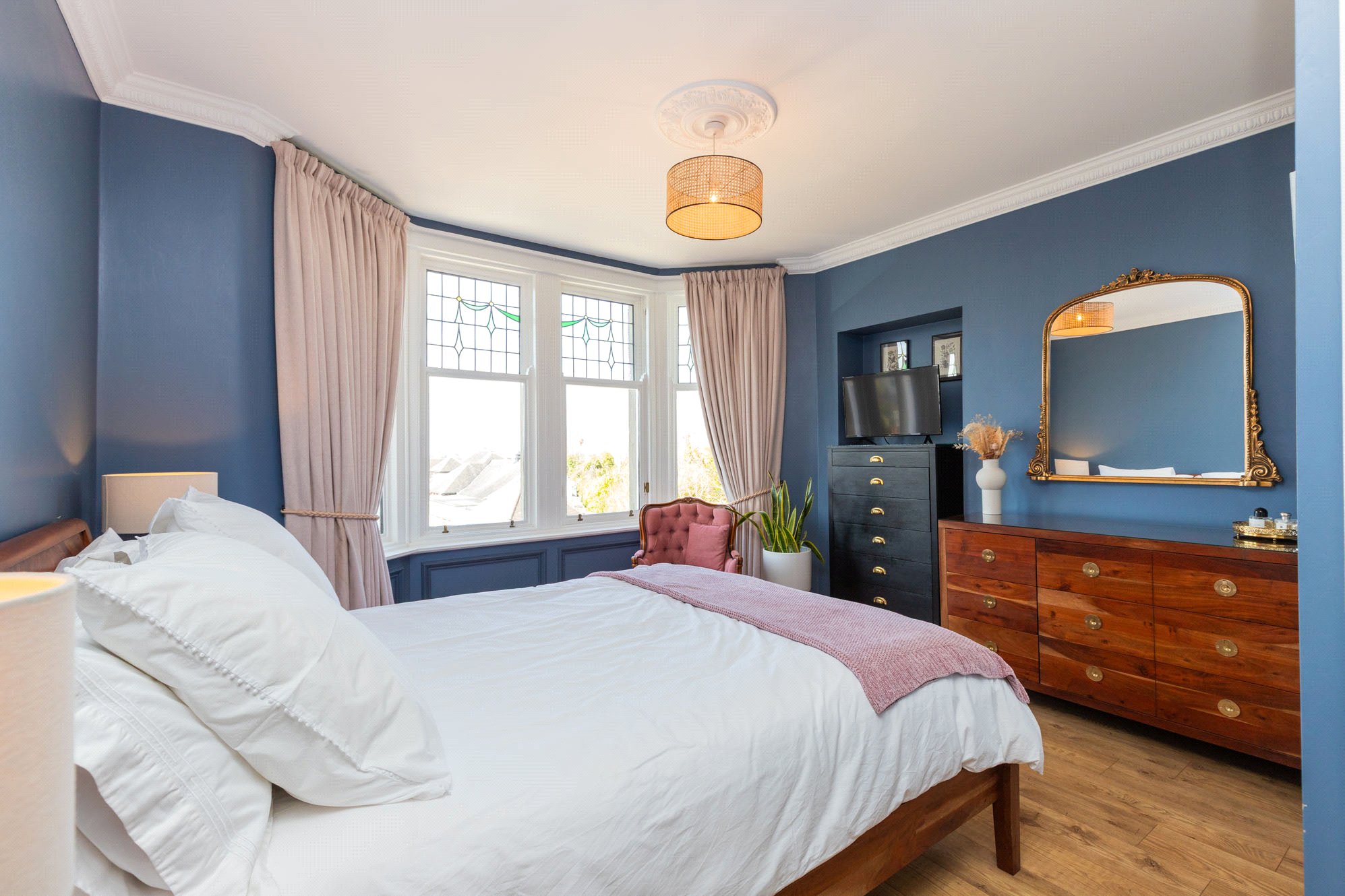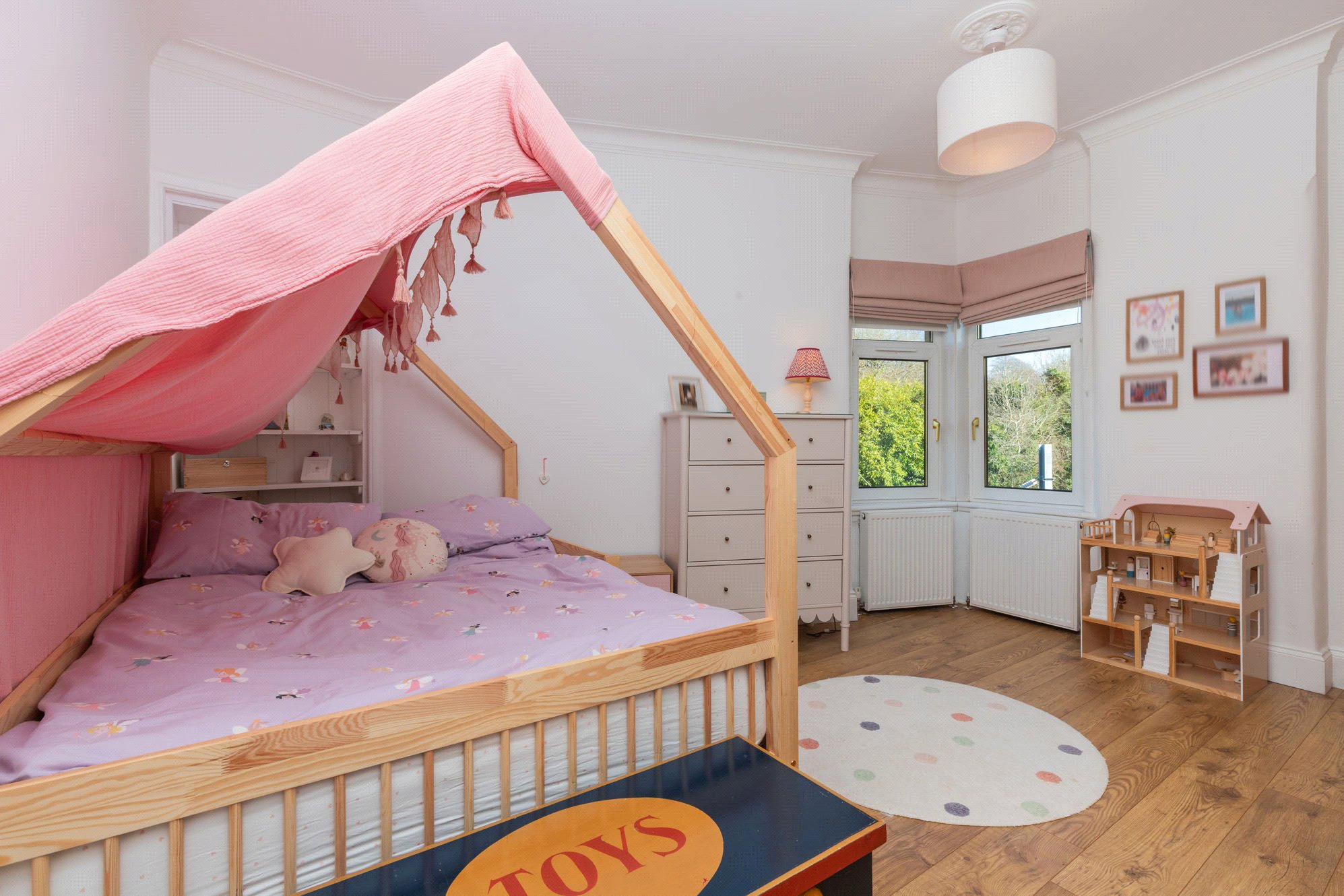 Upstairs, the first floor hosts three well-proportioned bedrooms, including a particularly generous principal bedroom with en-suite, along with a stylish family bathroom. A further staircase leads to the second floor where an additional bedroom offers flexible use as guest accommodation or a home office.