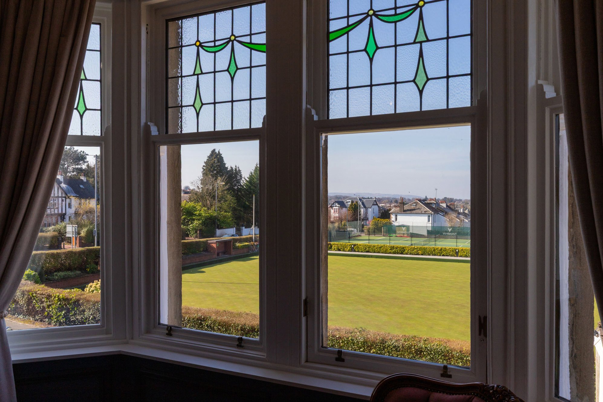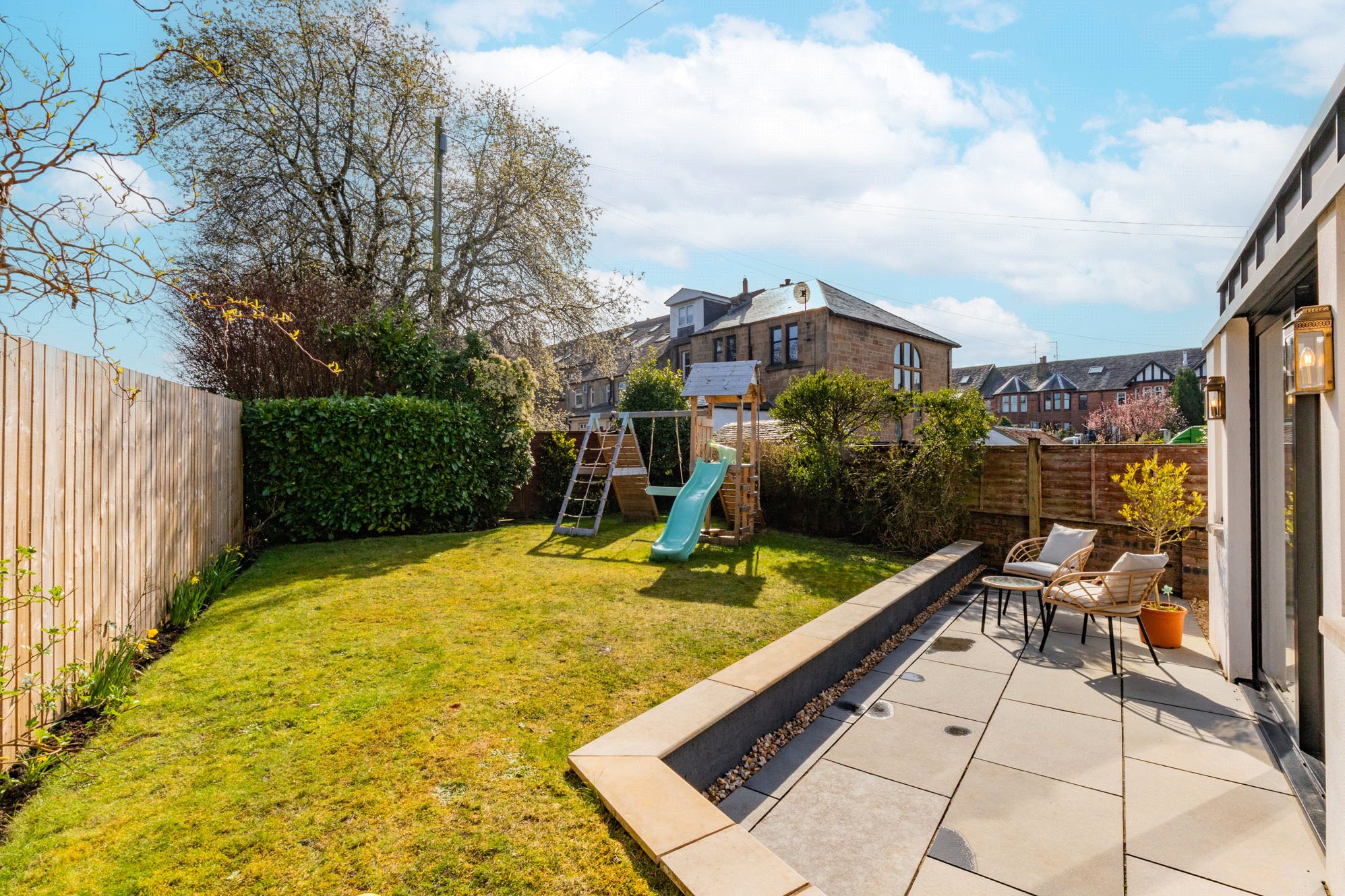 Set within a sought-after pocket of Clarkston, this charming blonde sandstone end-terrace villa enjoys an enviable position overlooking the bowling green, offering a peaceful outlook and a strong sense of privacy.