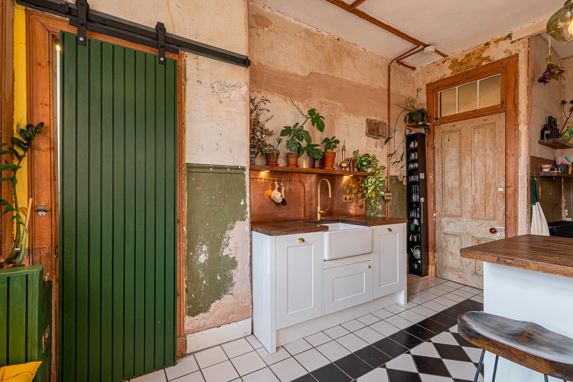 Sympathetic improvements by the current owners balance modern convenience with original detail; a contemporary kitchen fitted with sleek cabinetry complements well-preserved period features. Original plasterwork has been exposed and carefully restored, with the electrics and plumbing retrospectively and subtly surface-mounted to protect the property’s traditional fabric. There are two well sized double bedrooms, advantageously positioned at opposite ends of the accommodation to maximise privacy, in addition to a lovely front lounge with a gorgeous yet discreet aspect, facing onto to the park and trees opposite.