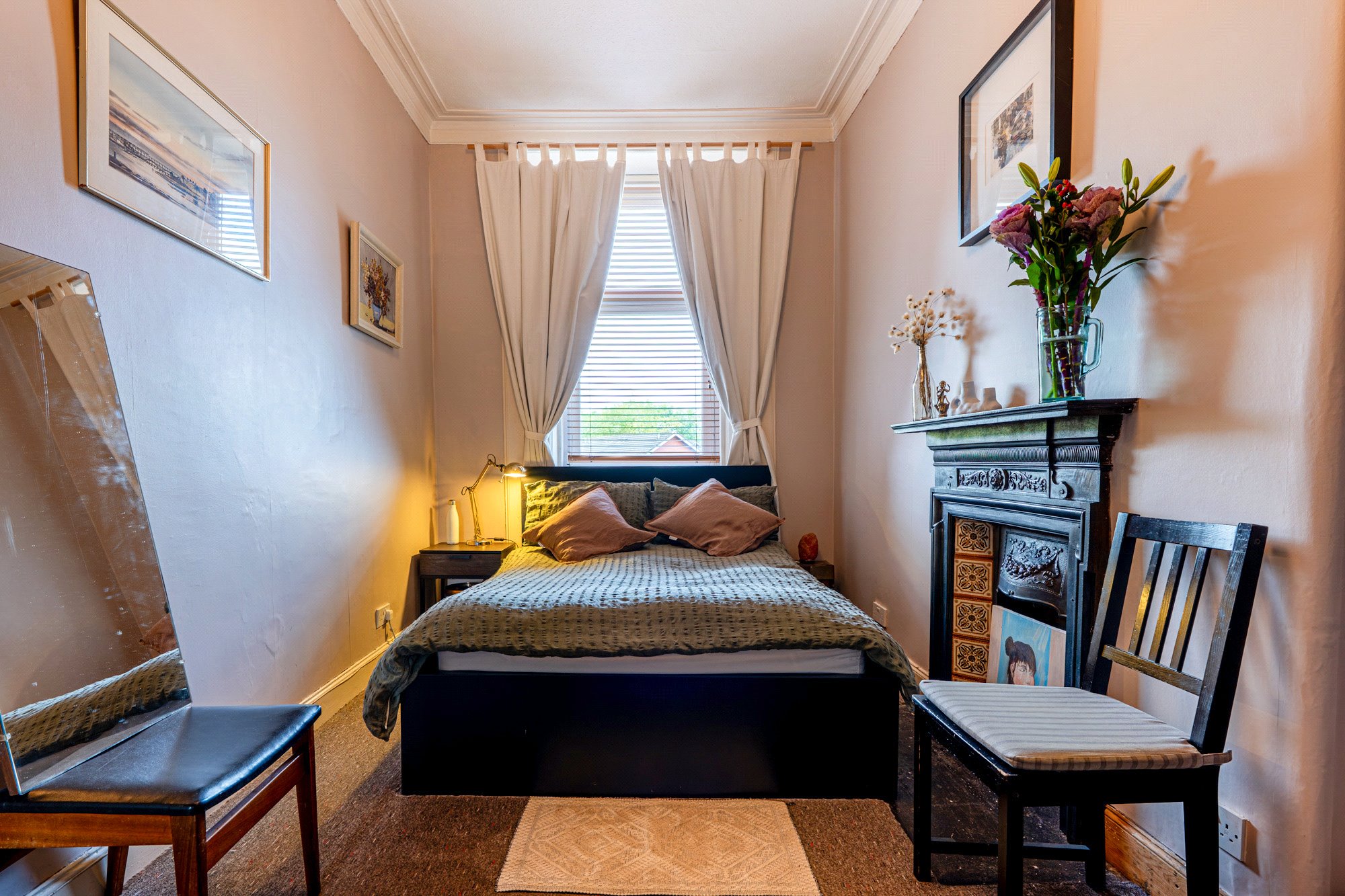 - Main bedroom of double proportions with ceiling cornice, traditional flooring, cast iron focal fireplace and single window to the rear.