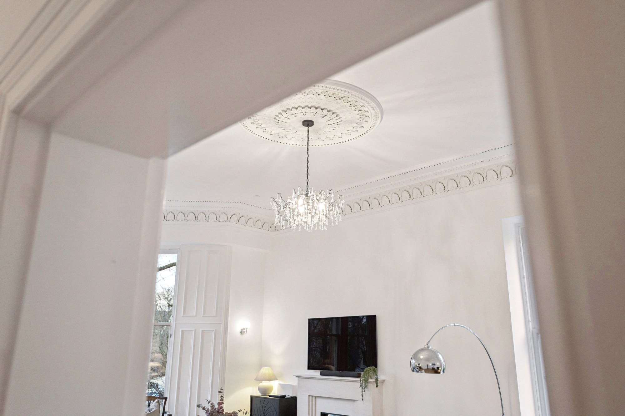 The home for sale is held within the instantly impressive Dalrymple Collection by Messrs L&S Homes, who sympathetically restored and formed numbers 17 to 19 Belhaven Terrace West in 2015, transforming former student halls of residence into one of Dowanhill’s finest developments of luxury period conversions. As you will see during an in-person visit, the developers ‘left no stone unturned’ during the full-scale renovation — creating luxurious modern interior living spaces while carefully restoring ornate period features and undertaking a comprehensive exterior refurbishment in full compliance with listed building regulations. To the rear, the developers created beautiful, shared garden spaces for residents to enjoy including an astro-turfed common green and an annexe garden accessed from the rear lane, offering a further enclosed residents’ outdoor space complete with BBQ area and seating. The home for sale benefits from a private allocated car parking space within a secure car park (number 4) and has a private bike store locker, held within the lower ground level of the mews and garaging block behind number 17.