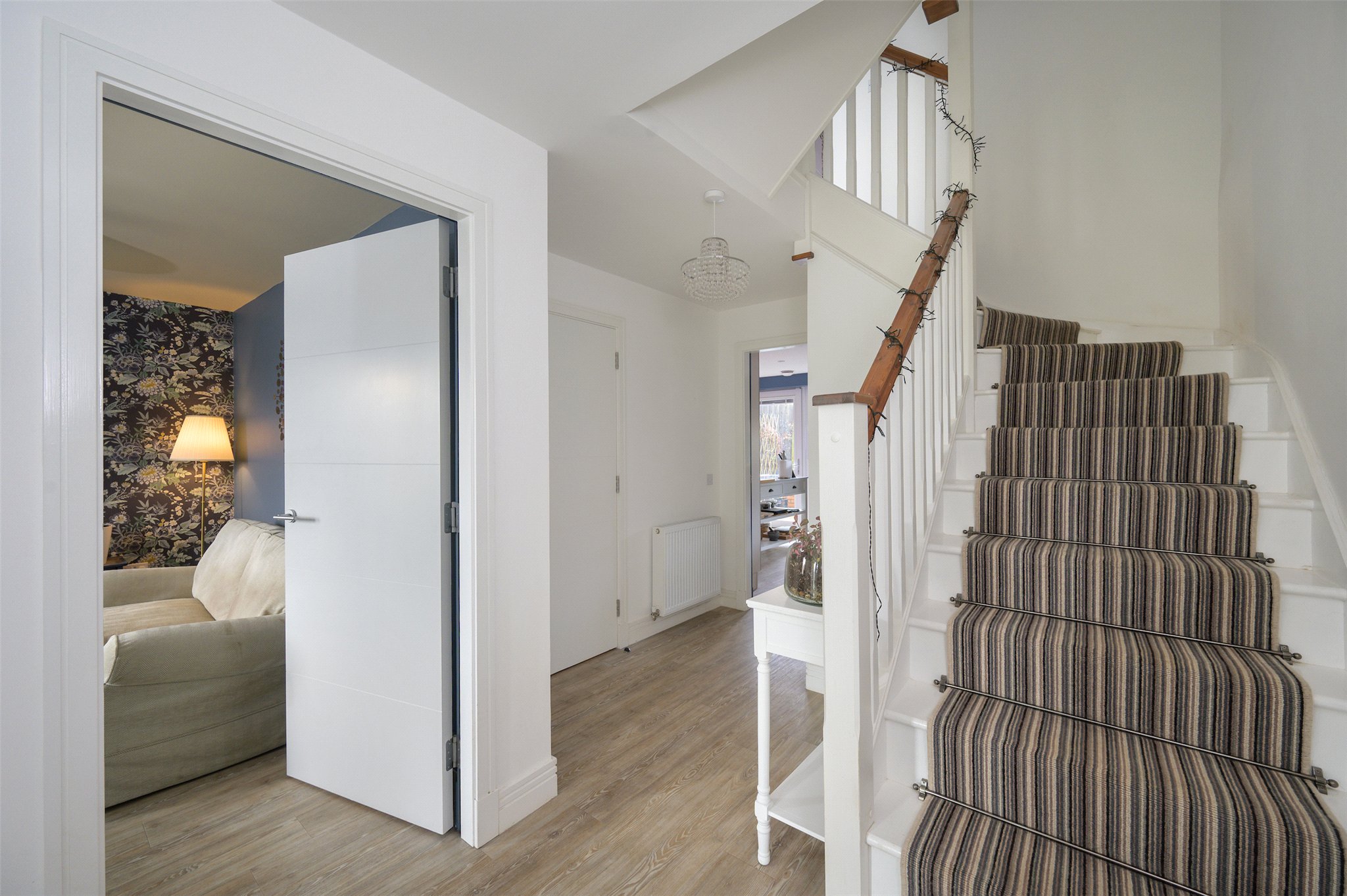 The stylish property is set over three floors and benefits from an enclosed rear garden, private driveway and single garage with electric car charging point.