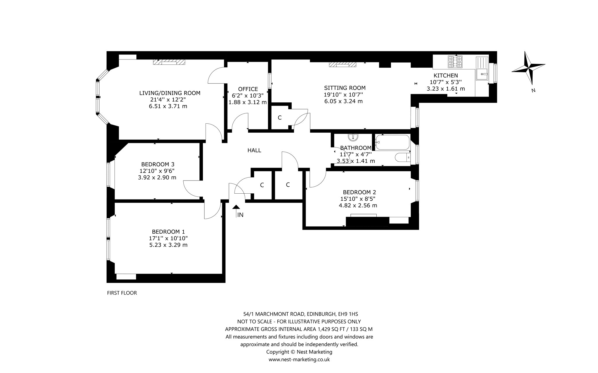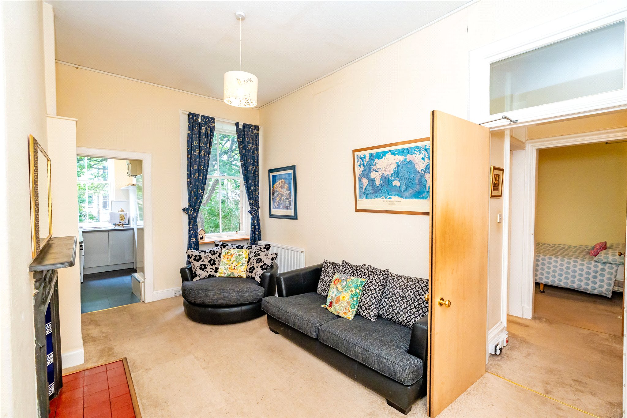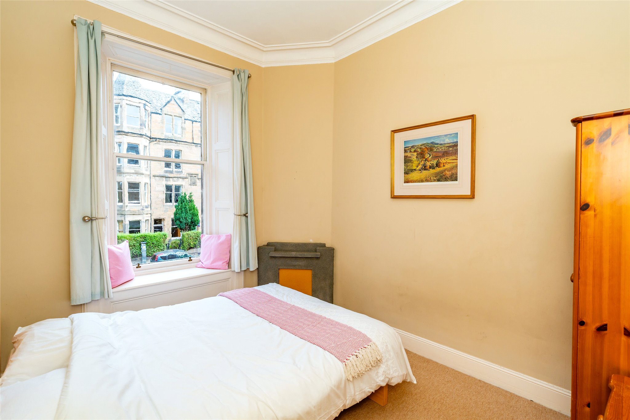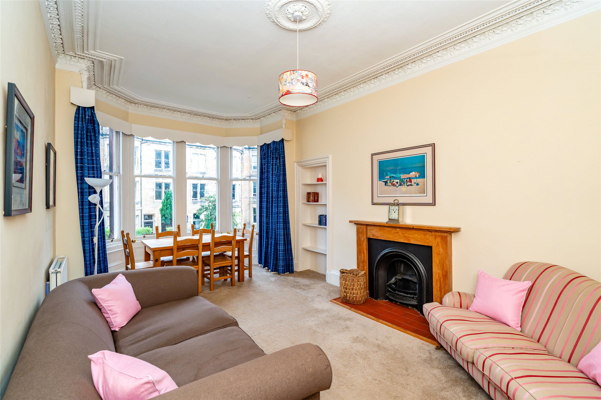 A superb first floor tenement flat in the heart of Marchmont, offering over 1,400 sq ft of beautifully proportioned living space. This elegant home combines period charm with flexible accommodation, featuring a bay-windowed living/dining room, separate sitting room, three double bedrooms, a modern bathroom, fitted kitchen and a useful study/box room.
