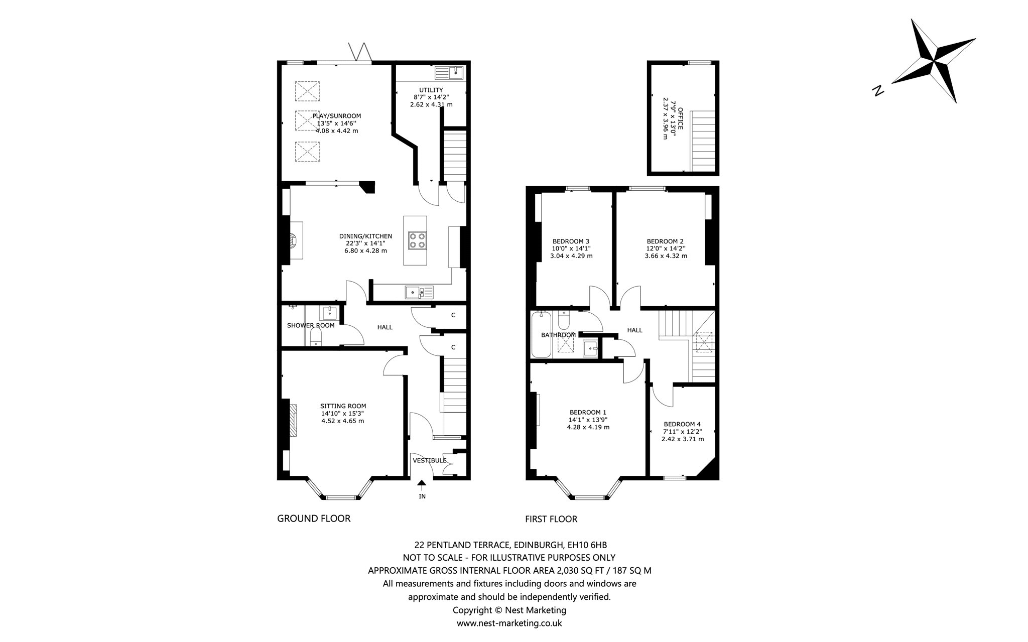 An exciting opportunity to acquire a fabulously presented, extended terraced family home in the sought after Southside of Edinburgh. Boasting four bedrooms on the first floor and perfect family living/ entertaining on the ground floor, this perfect home allows easy modern living, as well as having a separate sitting room. Benefiting from an extension comprising a sunroom leading out to the south/ west facing garden with patio and outdoor dining area, as well as a good sized lawn, this makes the perfect family home. There is also a utility room and shower room, and plentiful storage, completing the ground floor. Upstairs, the four bedrooms are all good sizes and there is a family bathroom on this level too. There is also an office on the first floor, accessed via stairs up from the kitchen.