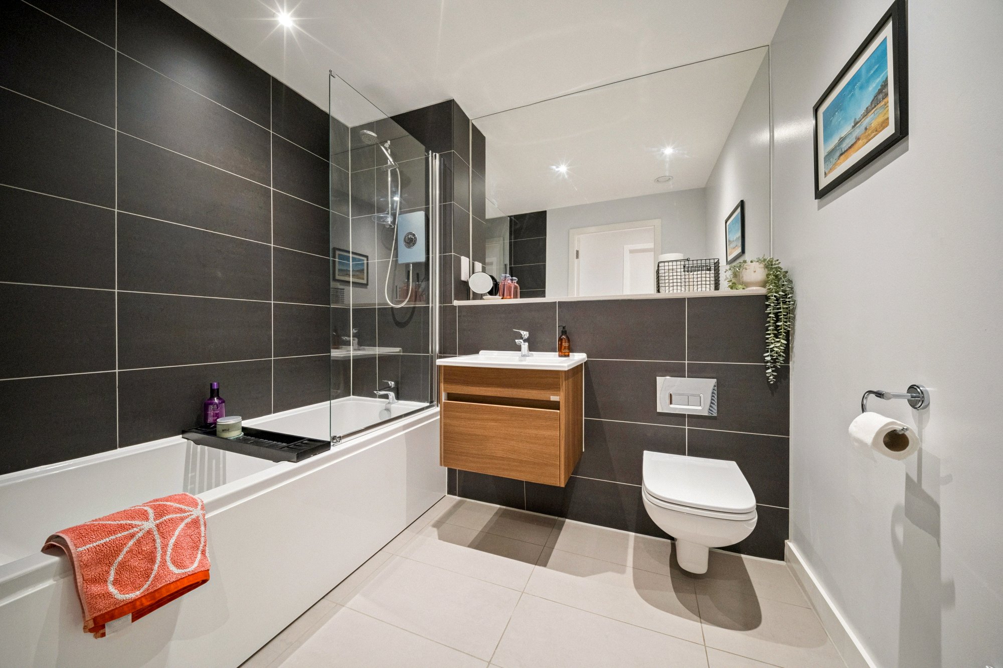 There are two well-proportioned double bedrooms, both offering comfortable and flexible accommodation. The principal bedroom benefits from built-in storage and a stylish en-suite shower room, while the second bedroom is equally generous and well suited as a guest room, home office or additional living space. A contemporary main bathroom, finished with high-quality fittings, serves the remainder of the property.