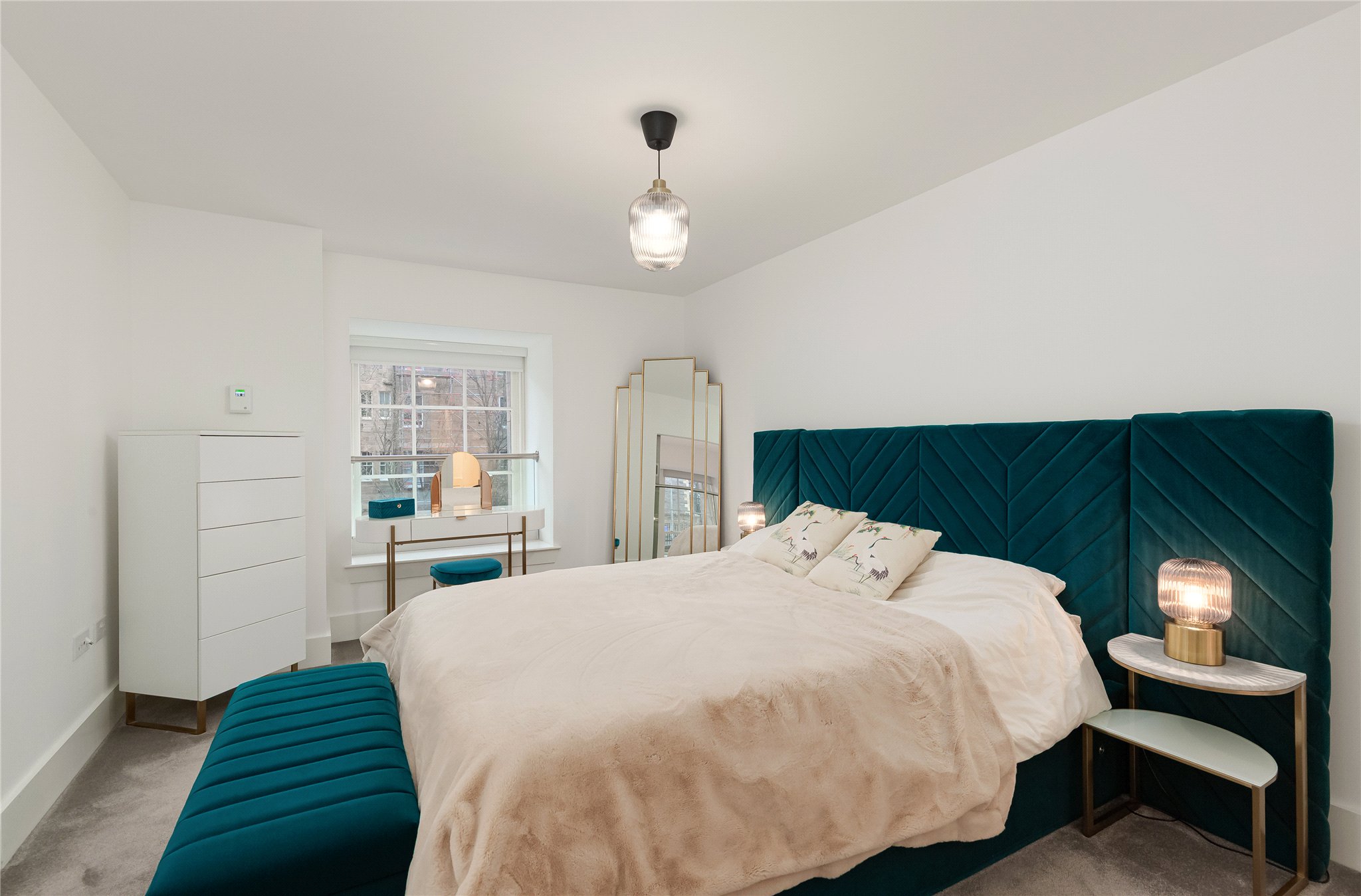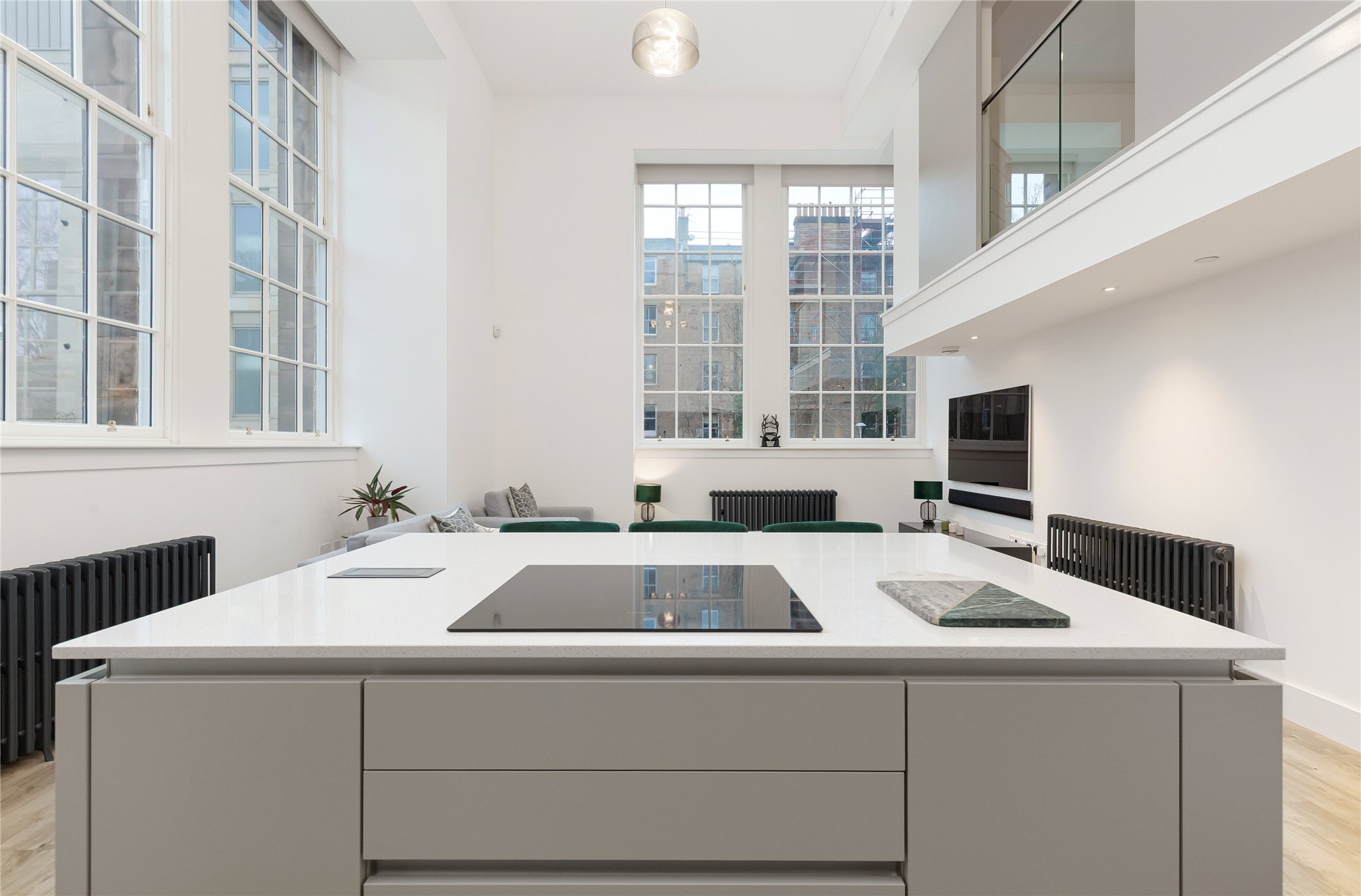 Located on the mezzanine level, the principal bedroom is generously proportioned and benefits from excellent natural light and built-in storage. A stylish shower room serves this level, creating a private and peaceful retreat away from the main living area below.