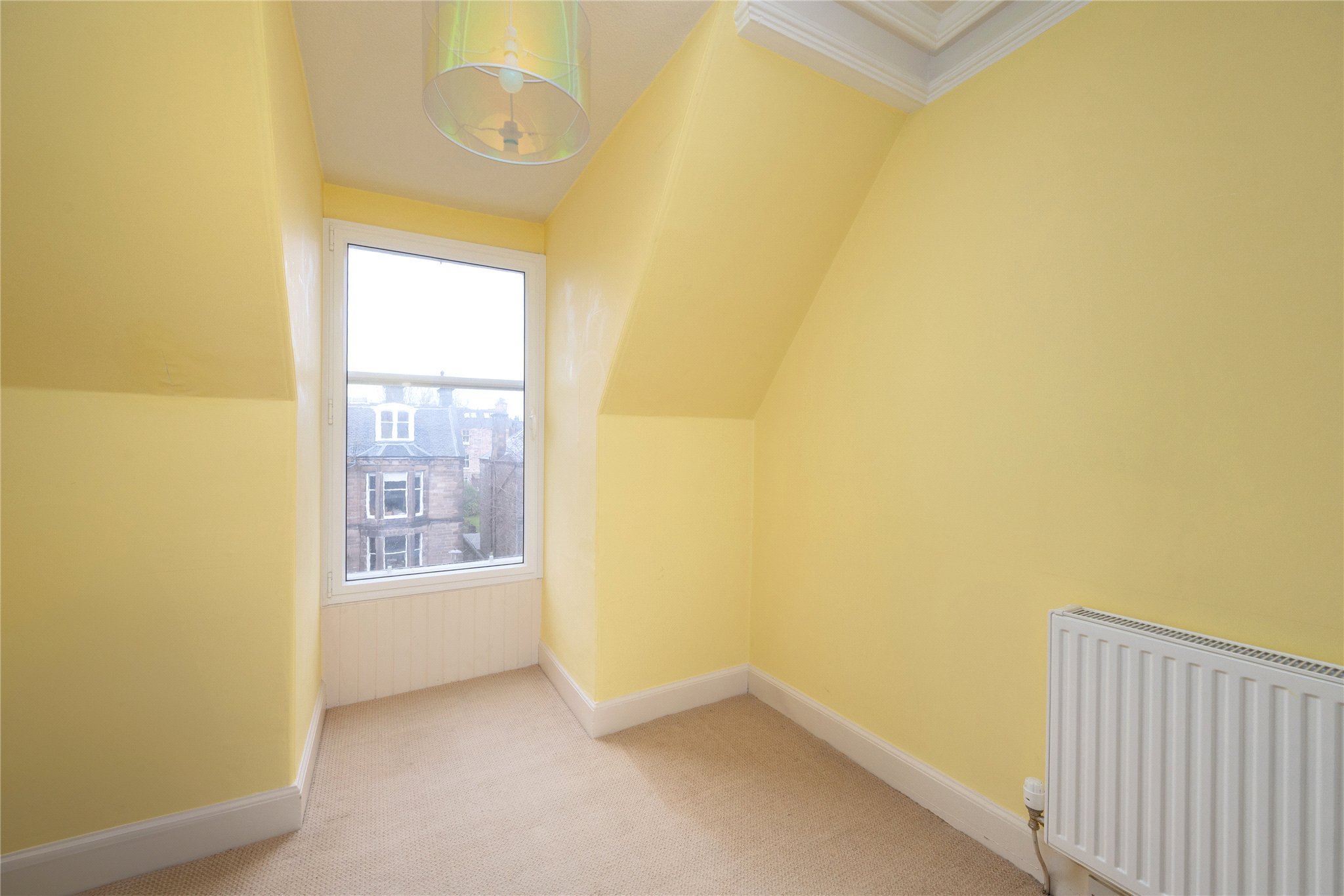 13/2 Fountainhall Road is a bright and spacious 4-5 bedroom double upper apartment, with a private front garden, located in the highly sought-after Grange area. Forming part of an elegant Victorian conversion, the property spans the first and second floors and offers generous proportions, flexible living accommodation, and a superb layout well suited to modern family life. The accommodation would now benefit from a degree of modernisation throughout.