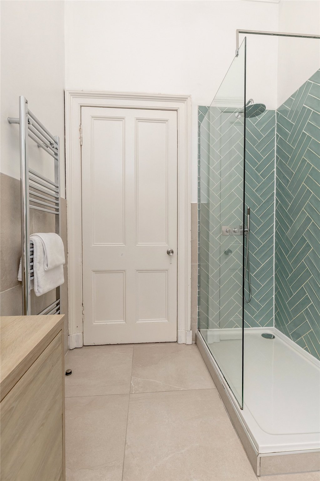 Entered via a welcoming vestibule, with a useful large storage area, the property opens up into a central hall creating an excellent flow throughout the home. To the rear for the property the impressive south facing living room is flooded with natural light, creating a warm and inviting atmosphere. Adjacent to the sitting room, the principal bedroom, with south facing aspect offers plenty of space for freestanding furniture. Splitting principal bedroom and kitchen, the bathroom located in a convenient central location, finished to a high standard, fitted with bath and separate shower, provides a fresh and modern space.