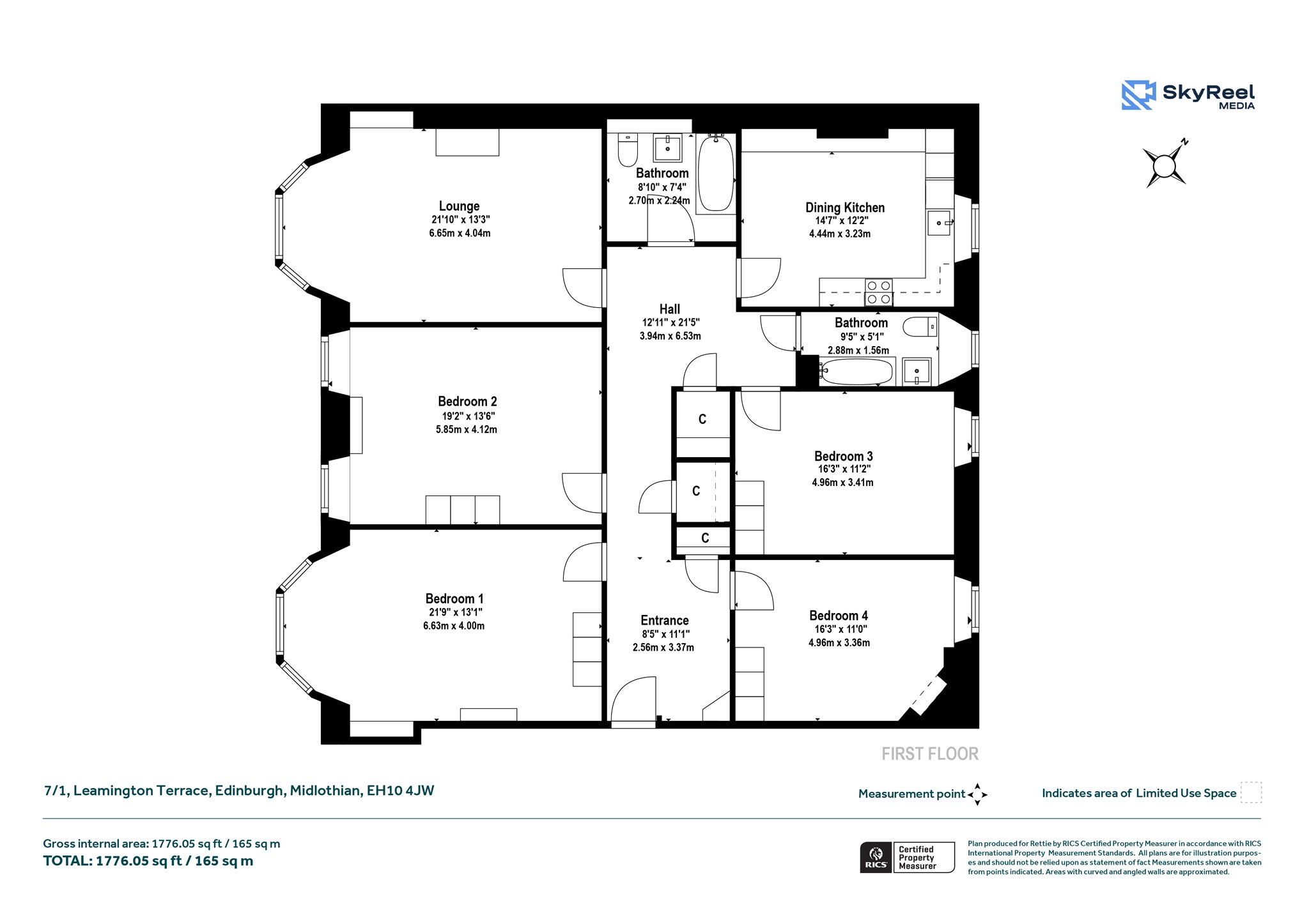 Entered via a large, open hallway, this well maintained flat proves spacious accommodation. Comprising a large sitting room with bay window, a well equipped dining kitchen, with fantastic views towards Edinburgh Castle, four double bedrooms and two bathrooms, this is a perfect flat for families, couples and investors alike. The principal bedroom is large with beautiful bay window, and all other bedrooms are very good sizes. Communal patio space completes this lovely flat.