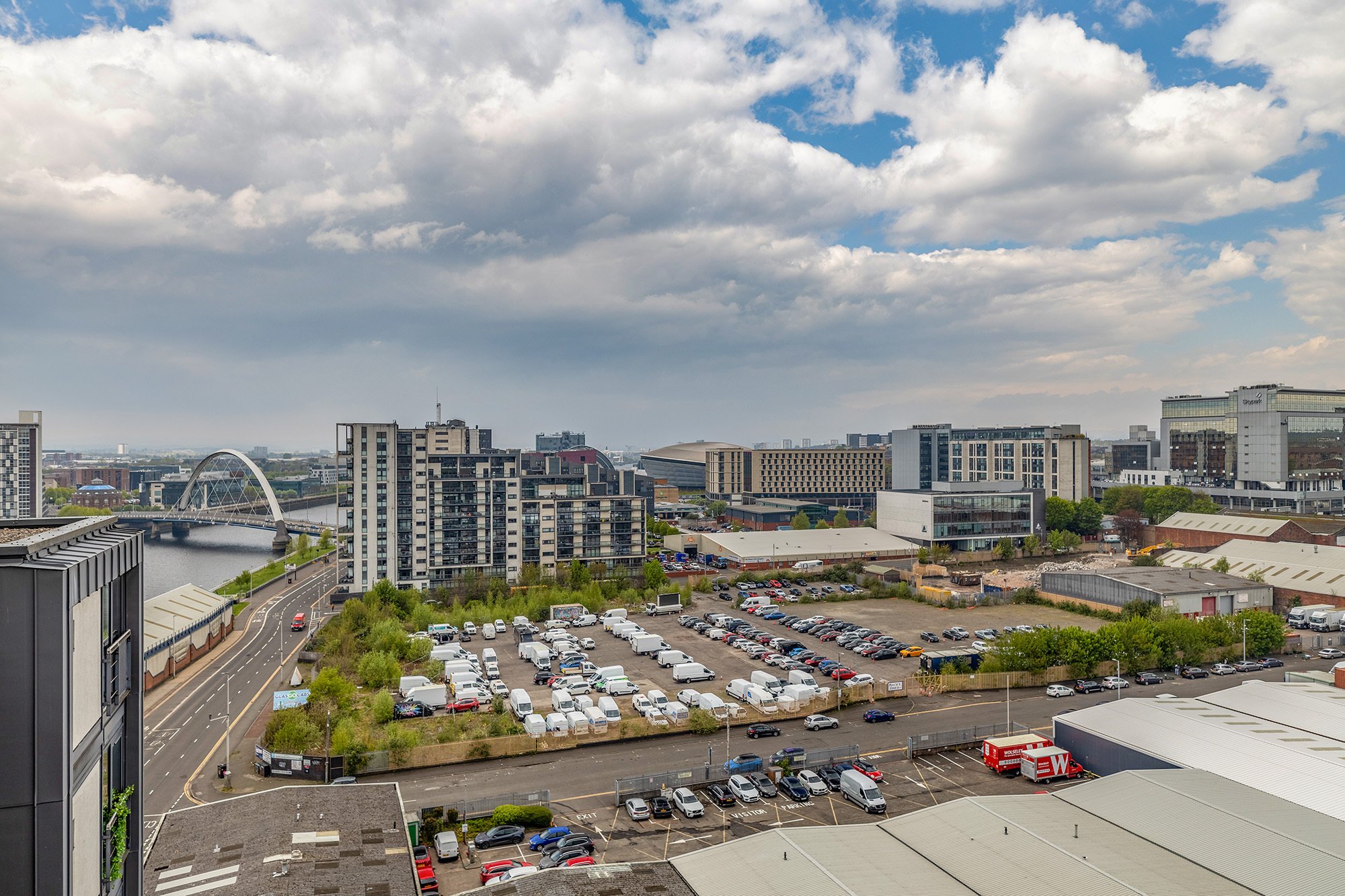 River Heights is situated on the western edge of the City Centre, it offers easy access to the central business district and is ideally located mid-way between Glasgow City Centre and the trendy West End’s vibrant neighbourhood of Finnieston, a prominent and widely renowned social location with a superb choice of wine bars, many highly acclaimed restaurants and wealth of amenities including both general and specialist shopping. In addition, there is within a short distance a myriad choice of exhibition and conference venues, shopping, culture, and several fitness clubs. In close proximity, is Glasgow’s media centre, the Universities of Glasgow, Strathclyde and Caledonian. Excellent road links, including M8, M74 and M77 motorways, are all easily accessible as are Anderston and Exhibition Centre Train Stations for access to Glasgow Central Railway Stations.