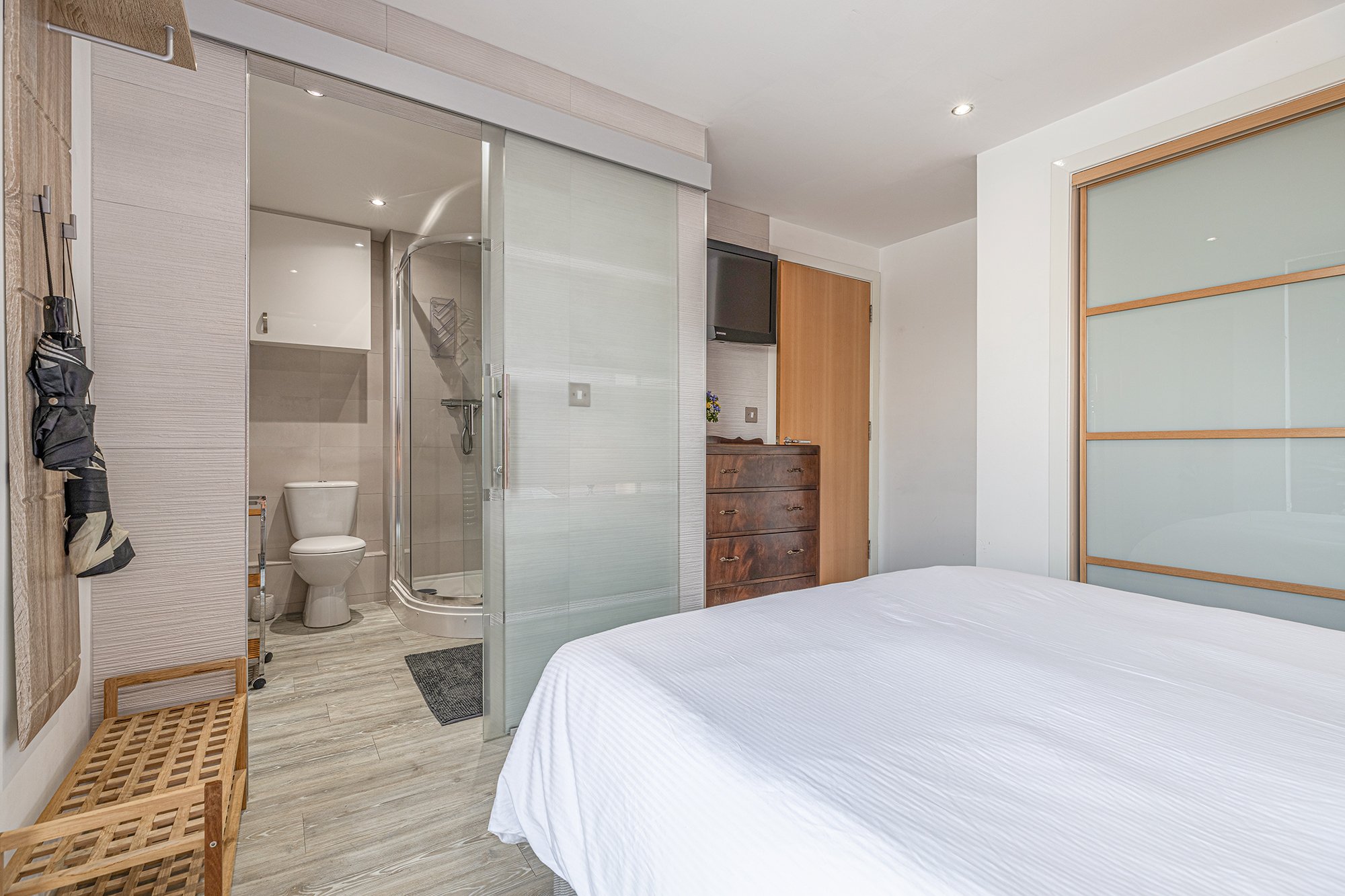- Modern shower room with walk in double sized shower.