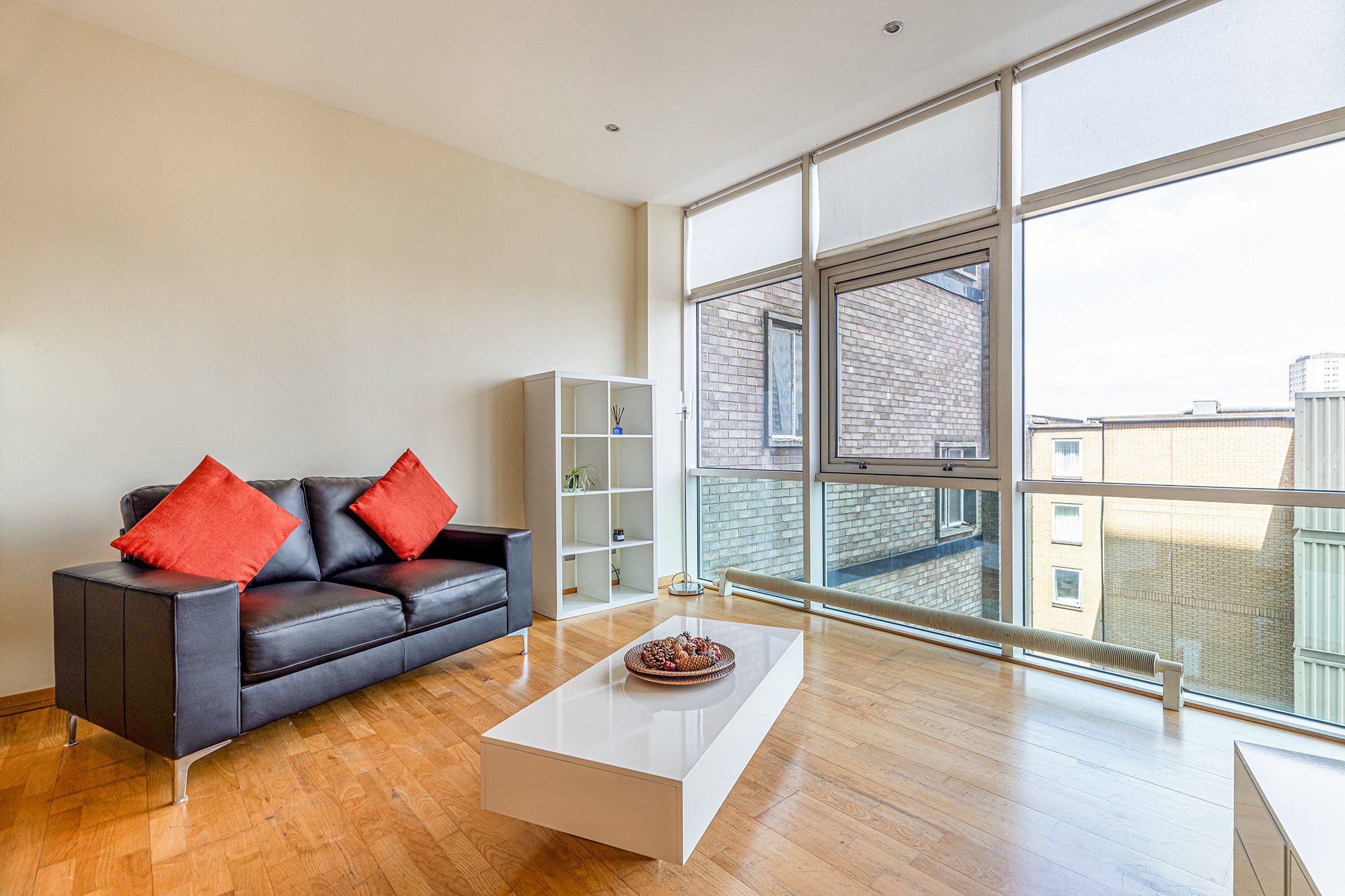 This modern one-bedroom apartment has the significant advantages of access to secure parking, offers views northeast over Glasgow City Centre’s skyline from a wall of full height glass spanning the full length of the apartment, and the loft style property occupies a sixth-floor position within Fleming House. With City living being a popular lifestyle choice, this building comes with two passenger lifts offering access to each floor, 24hr concierge security, thorough schedule of building maintenance and management from the on-site factoring, bin chutes for convenience on each floor and communal high speed Internet.