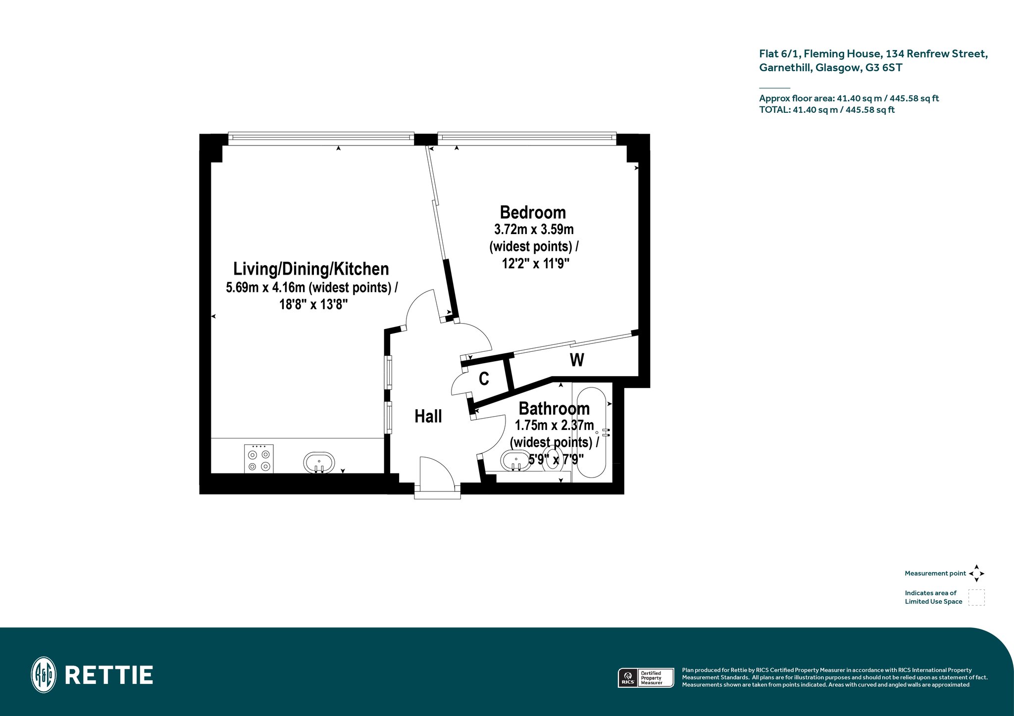 Refurbished circa 2000, the striking brutalist architecture commands a prominent position at the north end of the city centre on the edge of Garnethill, it is exceptionally well placed to take advantage of local amenities including every day and leisure shopping and excellent transport links. The interior is well presented with notable highlights including a spacious main living/dining area with open plan kitchen offering good storage and appliances, and flexible accommodation with the bedroom being accessible through sliding doors from the living space or from the main hallway.