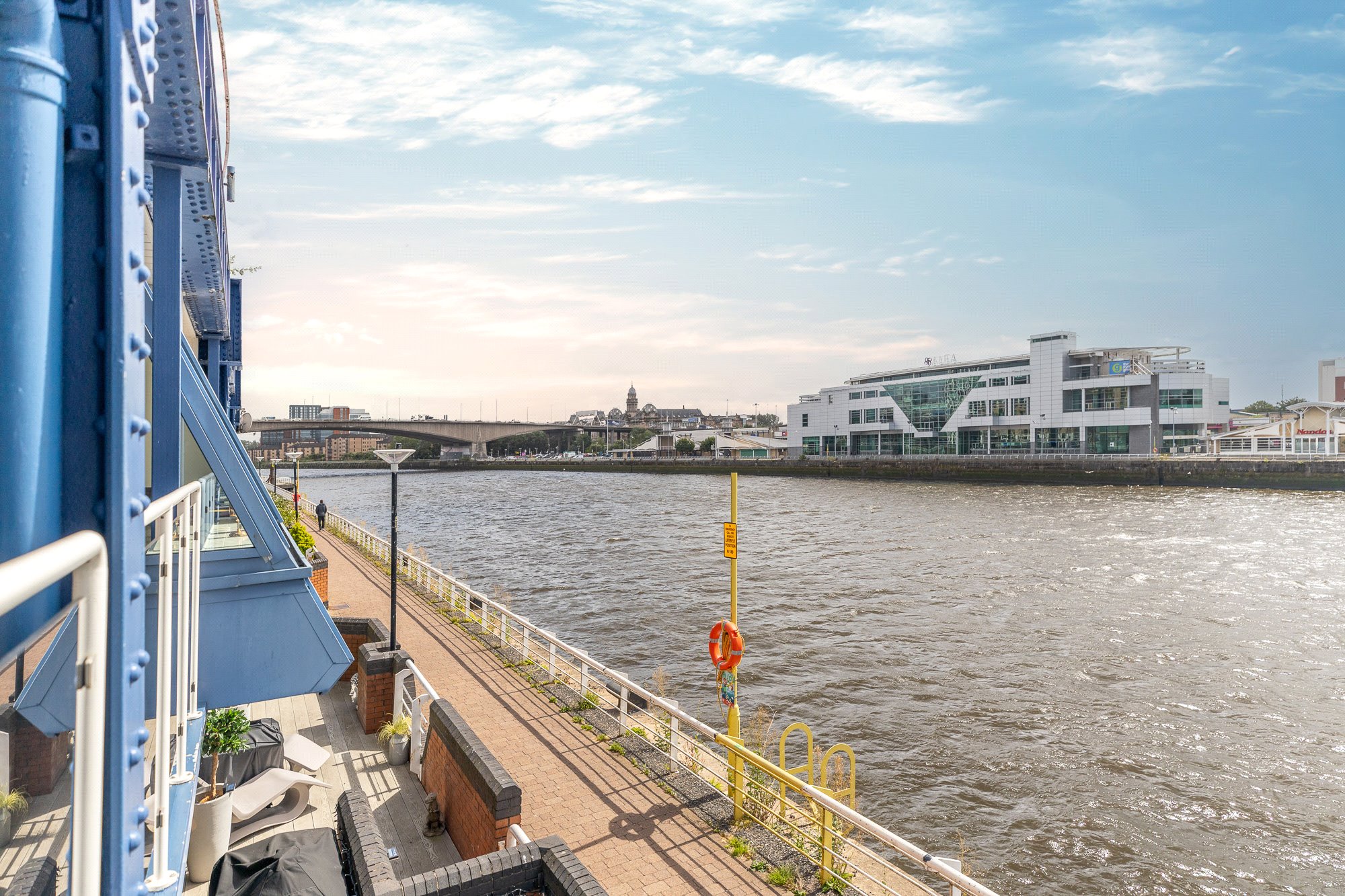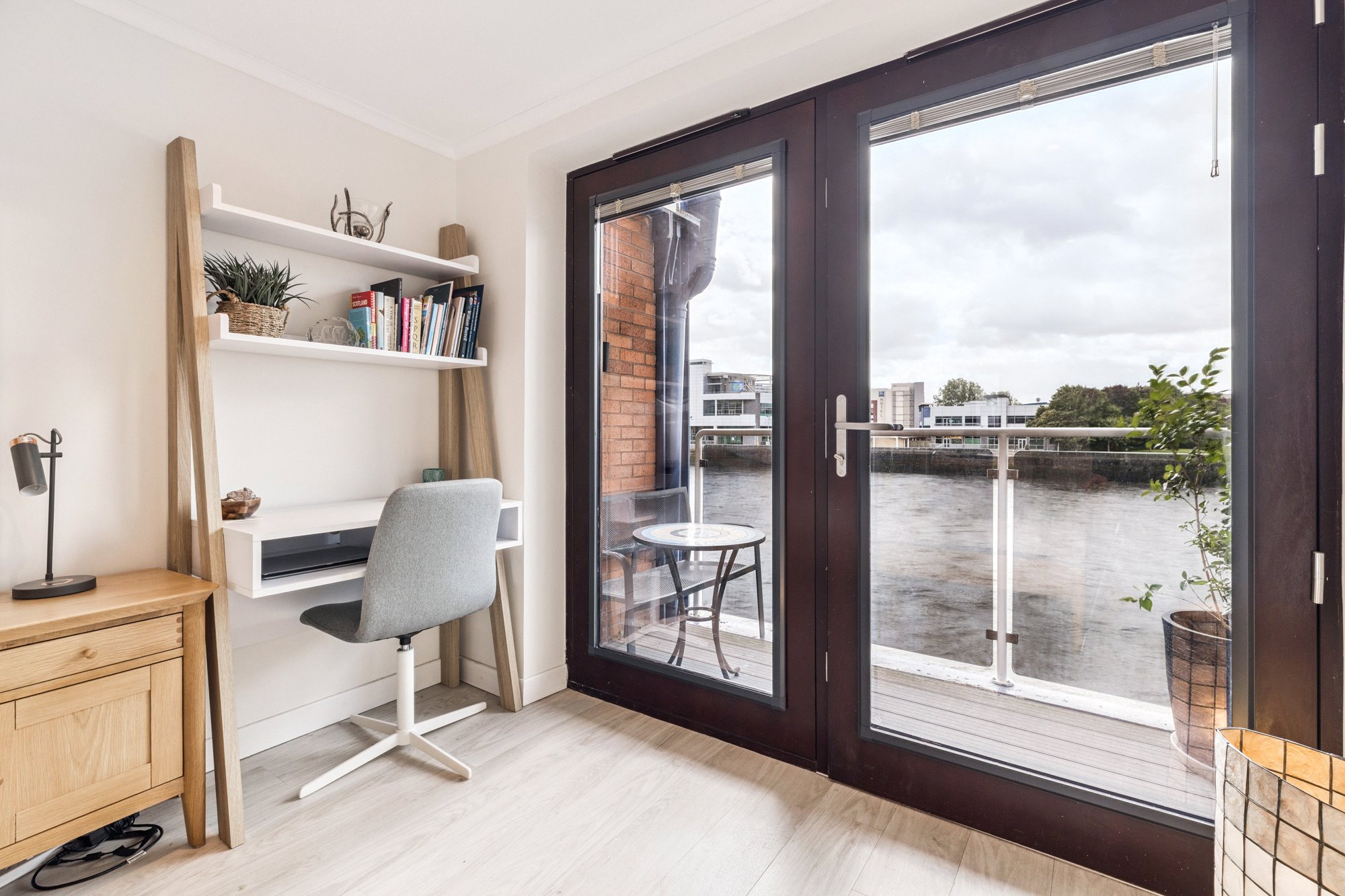 Having been extensively renovated throughout with a stylish, contemporary finish, this striking one-bedroom apartment also enjoys superb river views from its private balcony and the convenience of a secure allocated parking space. Positioned on the first floor of one of Glasgow’s pioneering residential warehouse conversions, within the original Lancefield Quay, the apartment occupies a prime riverside location on the edge of the River Clyde. It is ideally situated for easy access to the City Centre, the International Financial Services District, and the vibrant Finnieston area, where a wide array of amenities can be found along Argyle Street, along with excellent public transport connections.
