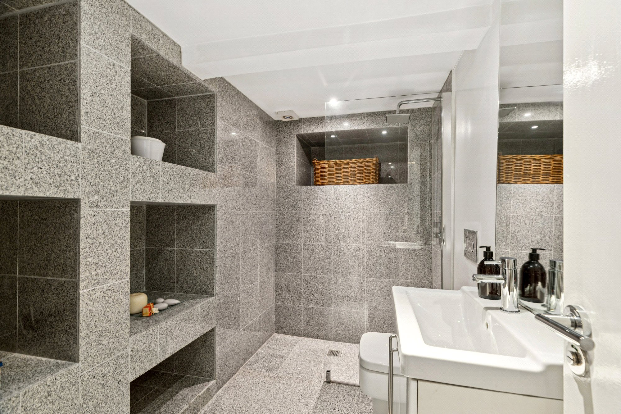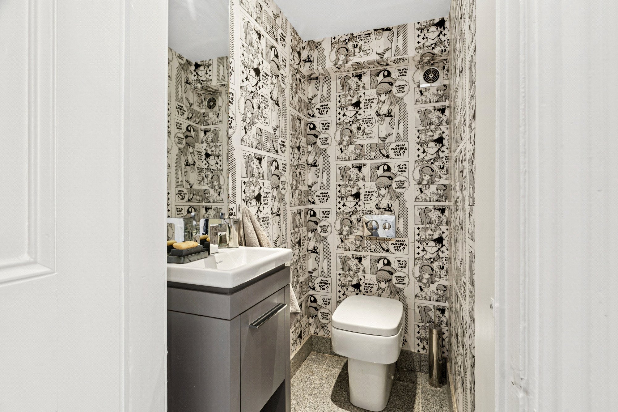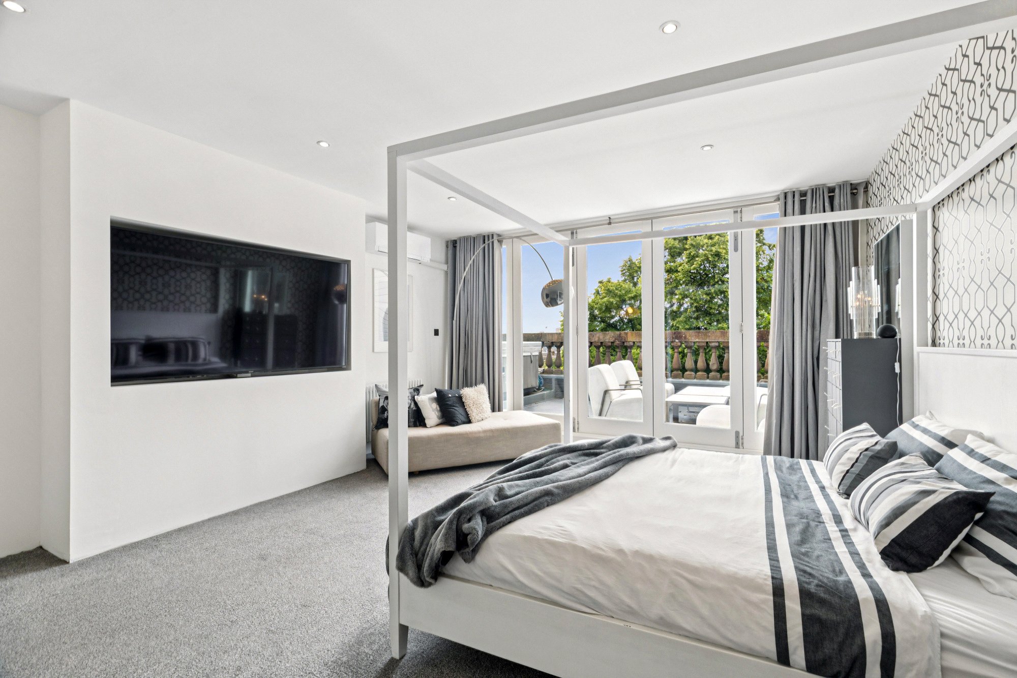Across the upper floors are flexible accommodation offering five-six generous double bedrooms, including a showstopping principal suite. This luxurious space is complete with a designer en suite bathroom featuring a central freestanding bath, walk-in shower, and direct access to the roof terrace, offering far-reaching views south and west and a private hot tub. A contemporary family bathroom and two separate WCs service the upper levels, while the lower ground floor offers outstanding flexibility. Here, you'll find an additional living/kitchen area, bedroom six, a shower room, all with rear access to the garden, this level offers the potential to function as a self-contained apartment suitable for use as a guest suite or an income generating short-let accommodation.