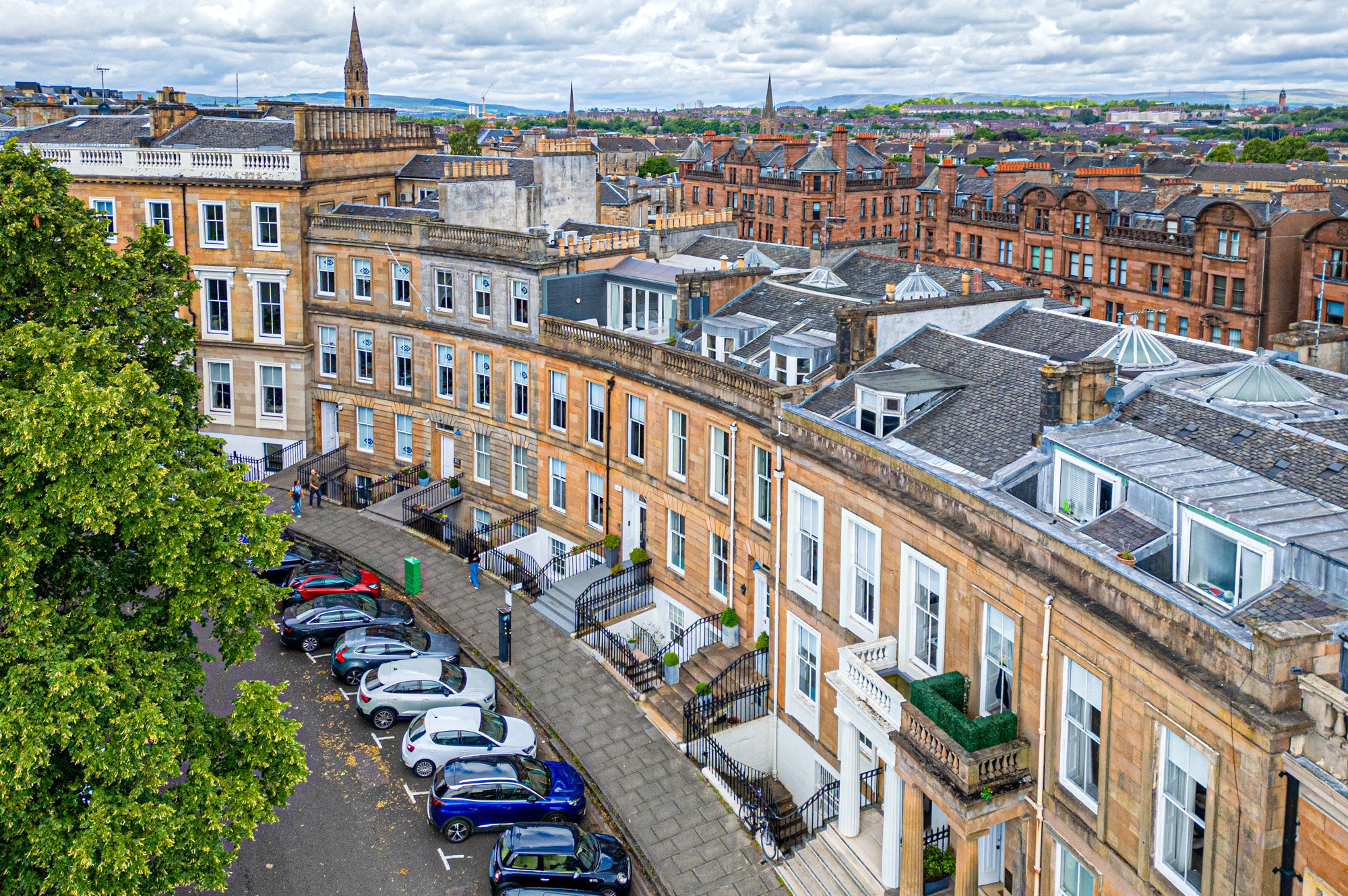 Situated within one of Glasgow’s finest Georgian terraces, echoing its elite 19th-century beginnings and overlooking the private Woodside Pleasure Gardens, this is an outstanding sandstone ‘entire’ townhouse occupying a prime position, spanning five levels, and extending to approximately 5100 sq ft. Effortlessly combining a wealth of grand original features, with sleek contemporary finishes. Boasting a private garden, secure off-street parking accessed via electric gates from Woodlands Road (with planning consent granted for a carport) and a stunning roof terrace with hot tub, this is an incredibly rare and versatile family home.