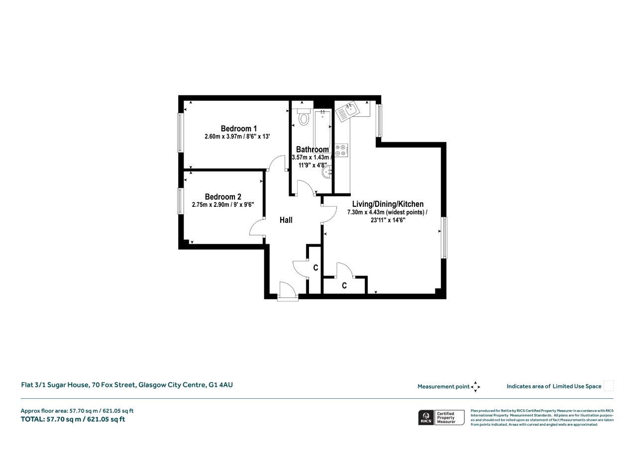Situated within the Sugar House development, a super central City development completed around 2006, this stylish two-bedroom third floor apartment spans over 635 sq ft and boasts the added benefit of a secure underground parking space. Located on Fox Street, named after the influential 18th-century statesman Charles James Fox, enjoys an exceptionally convenient city centre location, moments from the scenic Clyde Walkway and surrounded by a wealth of local amenities, including upscale dining, boutique shopping, and excellent public transport links. This vibrant part of the city continues to undergo extensive and exciting regeneration, making it a highly desirable area to live.