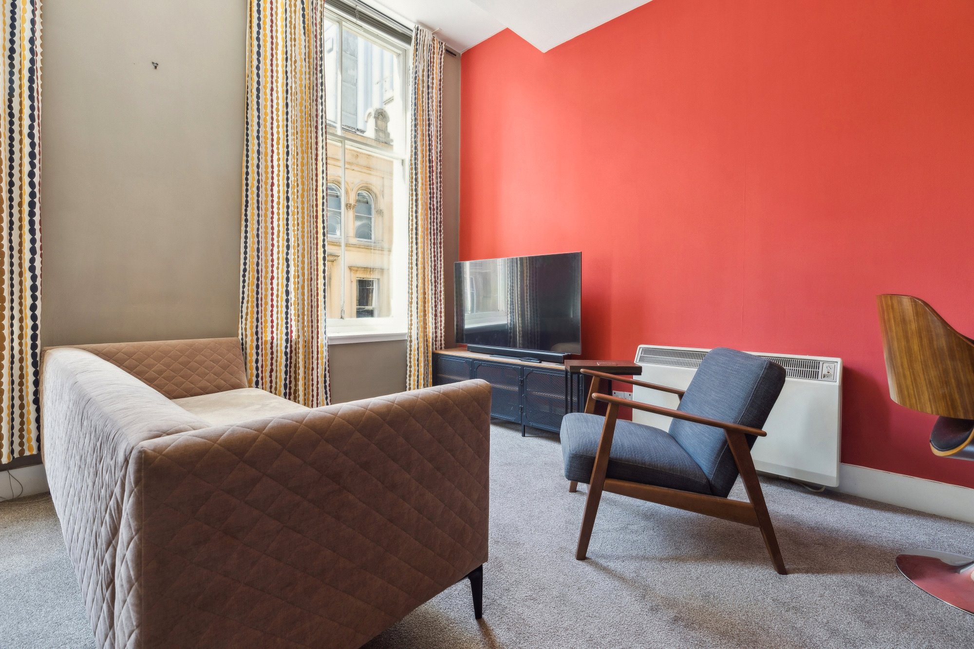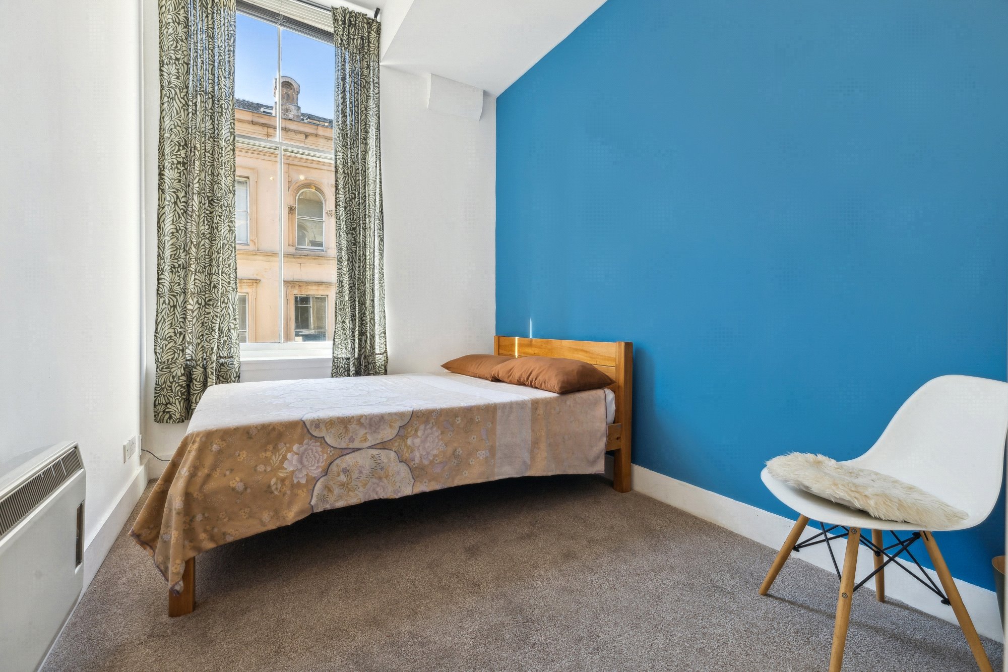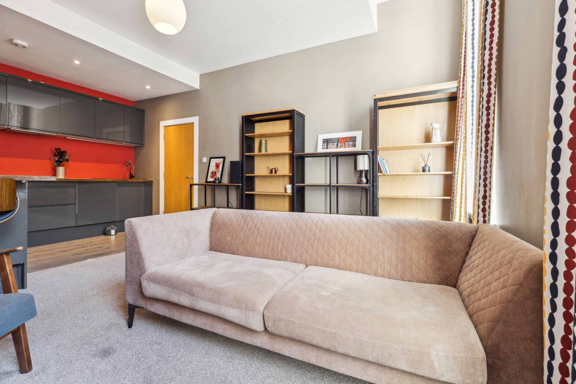 Set within a striking blonde sandstone warehouse conversion, this stylish two-bedroom apartment enjoys a superb second-floor position in the heart of Glasgow’s vibrant Merchant City. The apartment offers an outlook over Miller Street to the front, while also benefiting from access to the building’s tranquil residents’ courtyard at the rear.