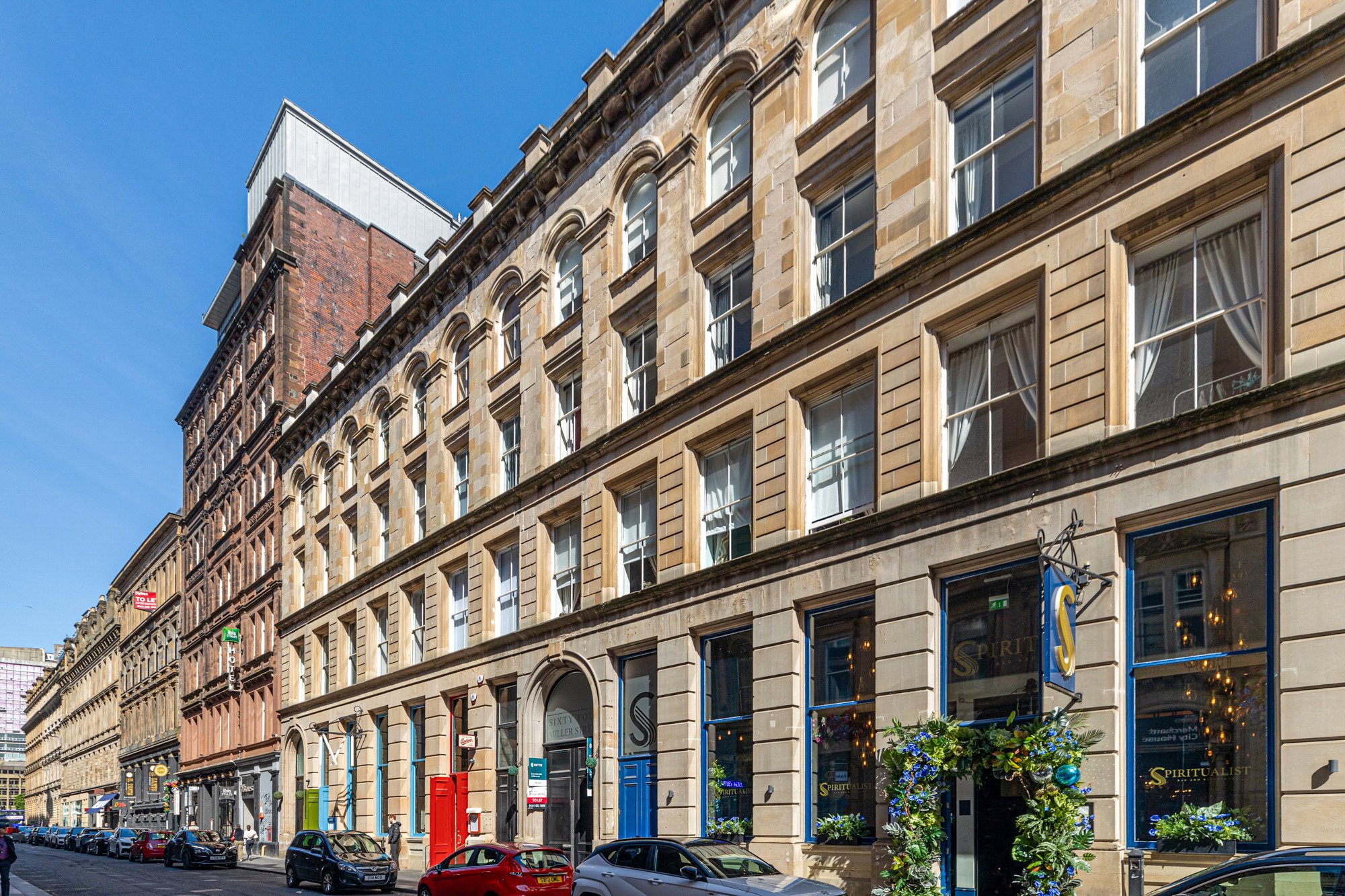 From George Square continue South onto Hanover Street. Cross over onto Miller Street and head down the street towards Argyle Street where No. 64 is two thirds of the way down on the left-hand side.