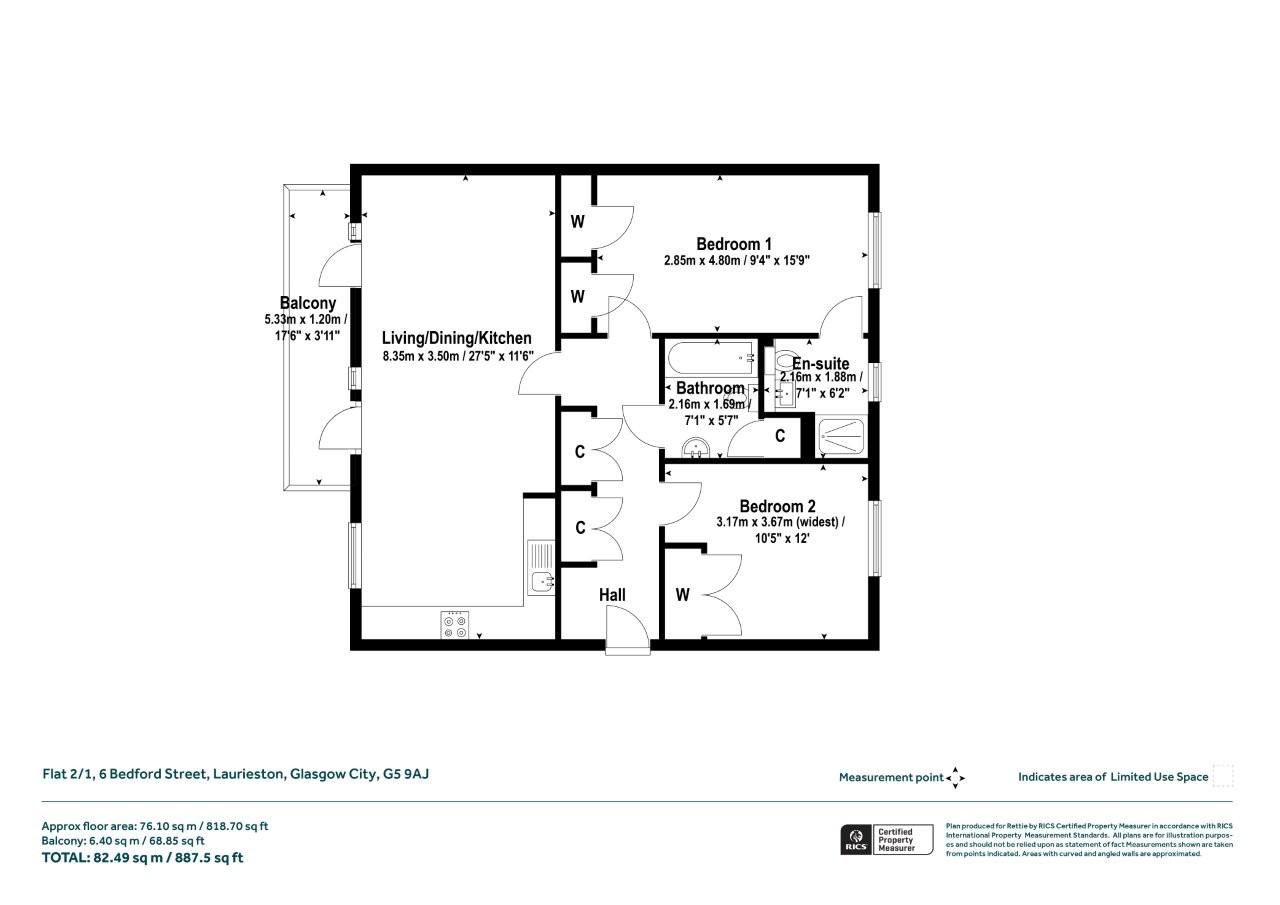 Located within the sought-after and award-winning Laurieston Living Development on the edge of Glasgow’s City Centre, this exceptionally spacious second floor two-bedroom apartment spans approximately 829 sq ft internally. It boasts a south-facing private balcony of over 17’6” , a stylish open-plan layout with the kitchen set back from the living area, and is presented in immaculate condition, having been beautifully maintained and thoughtfully styled throughout. This modern and rarely available apartment also benefits from excellent built-in storage, two generously sized double bedrooms, and high-quality finishes throughout. The location continues to appeal to professionals seeking proximity to the City Centre, with the Barclays Hub at Tradeston, the Financial Services District less than half a mile away, and the Merchant City within easy walking distance.