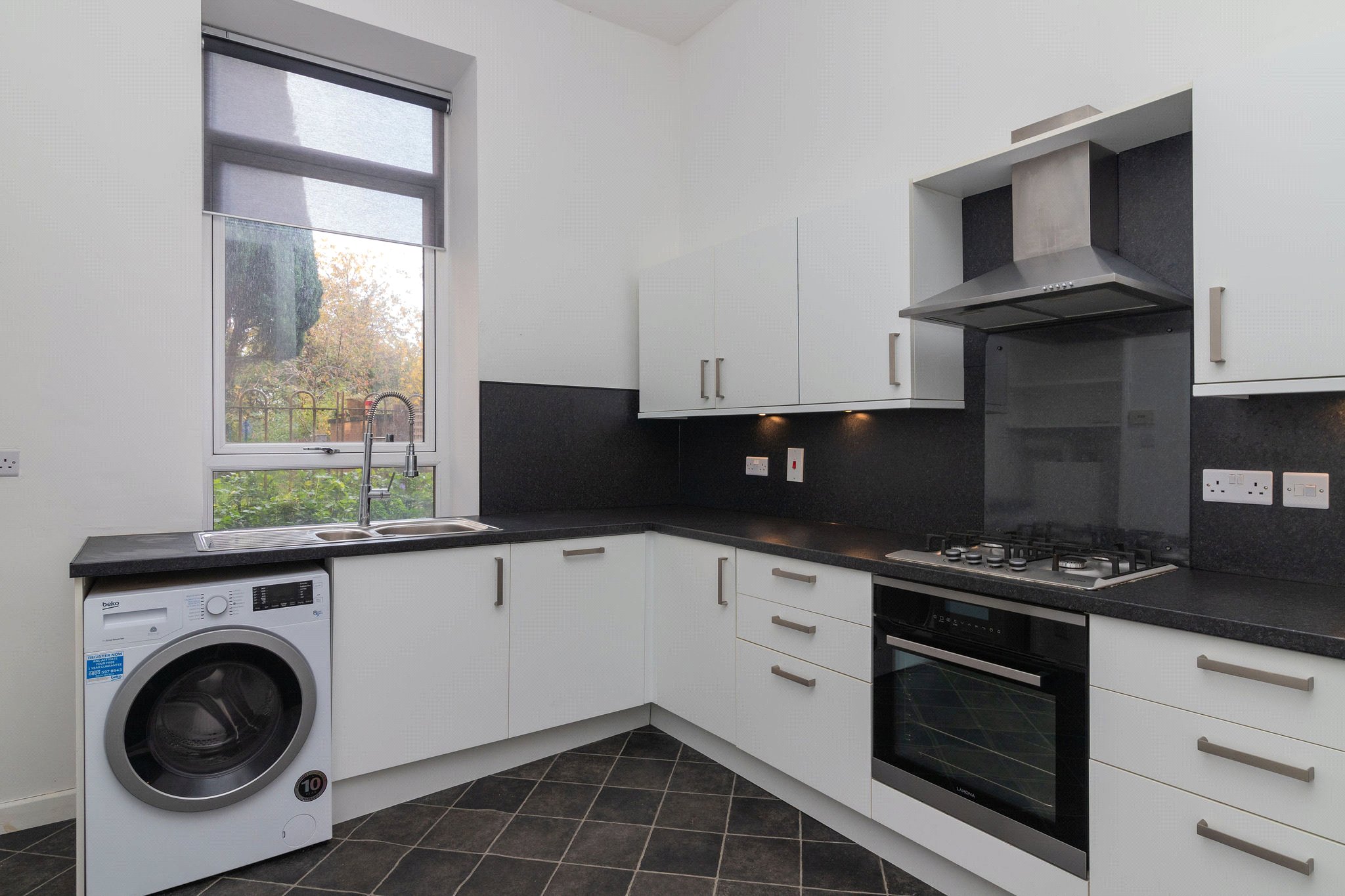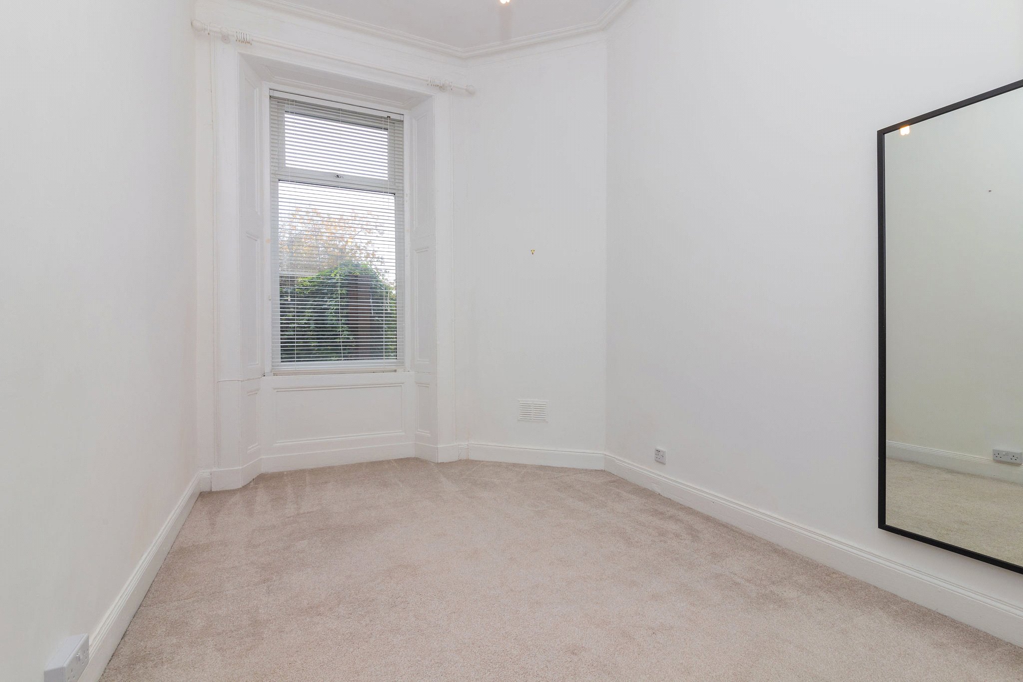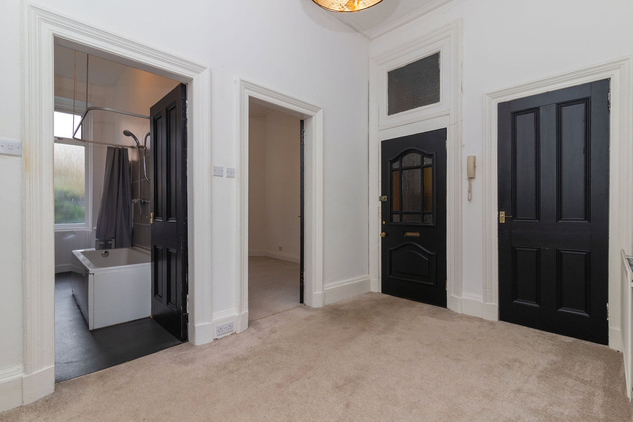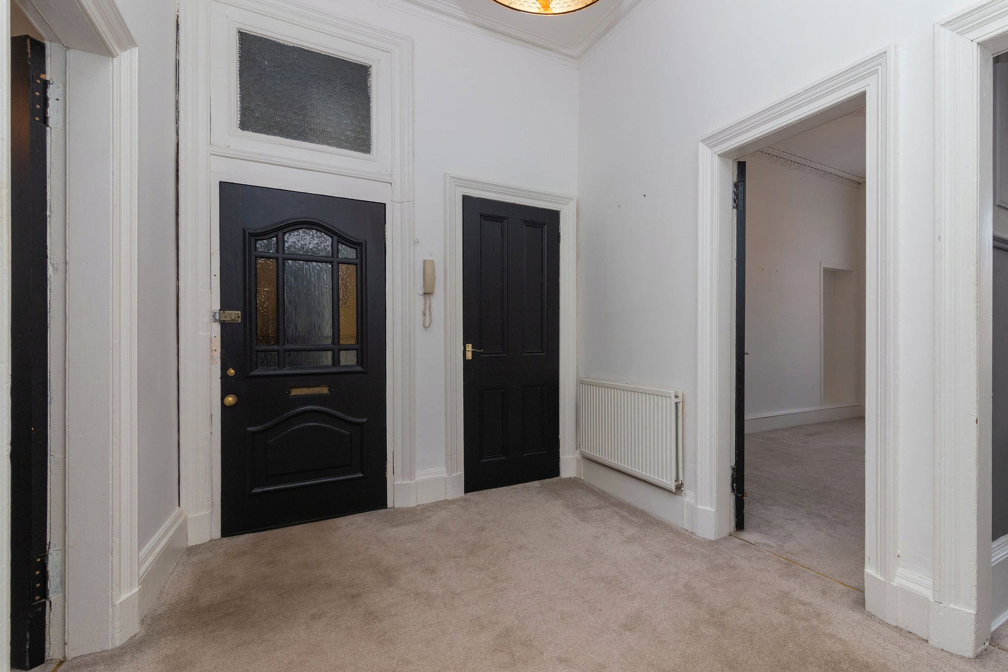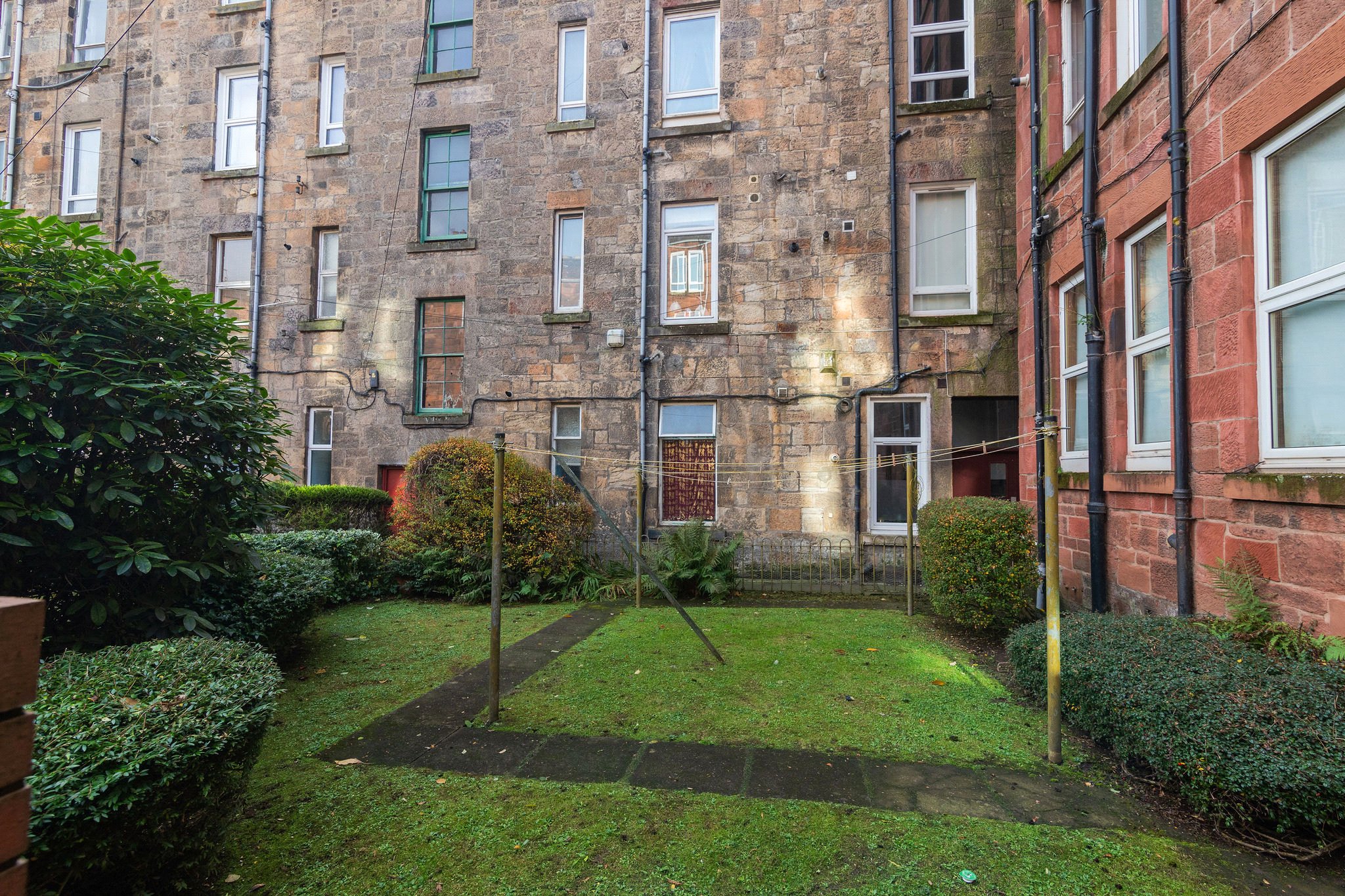 Entered via secure entry to communal close, the property is well presented, tastefully decorated and is a great example of a traditional tenement flat with a mix of traditional and modern features. The accommodation comprise of a spacious dining kitchen with recess and large larder style cupboard a luxury modern re-fitted tiled bathroom with white three piece white suite, spacious three section bay windowed living room extending to 18’8” into recess and there are two double bedrooms offering bright aspects from both its rear windows overlooking the communal rear courtyard or views to front over the private garden. The property has Gas Central Heating and Double Glazing.