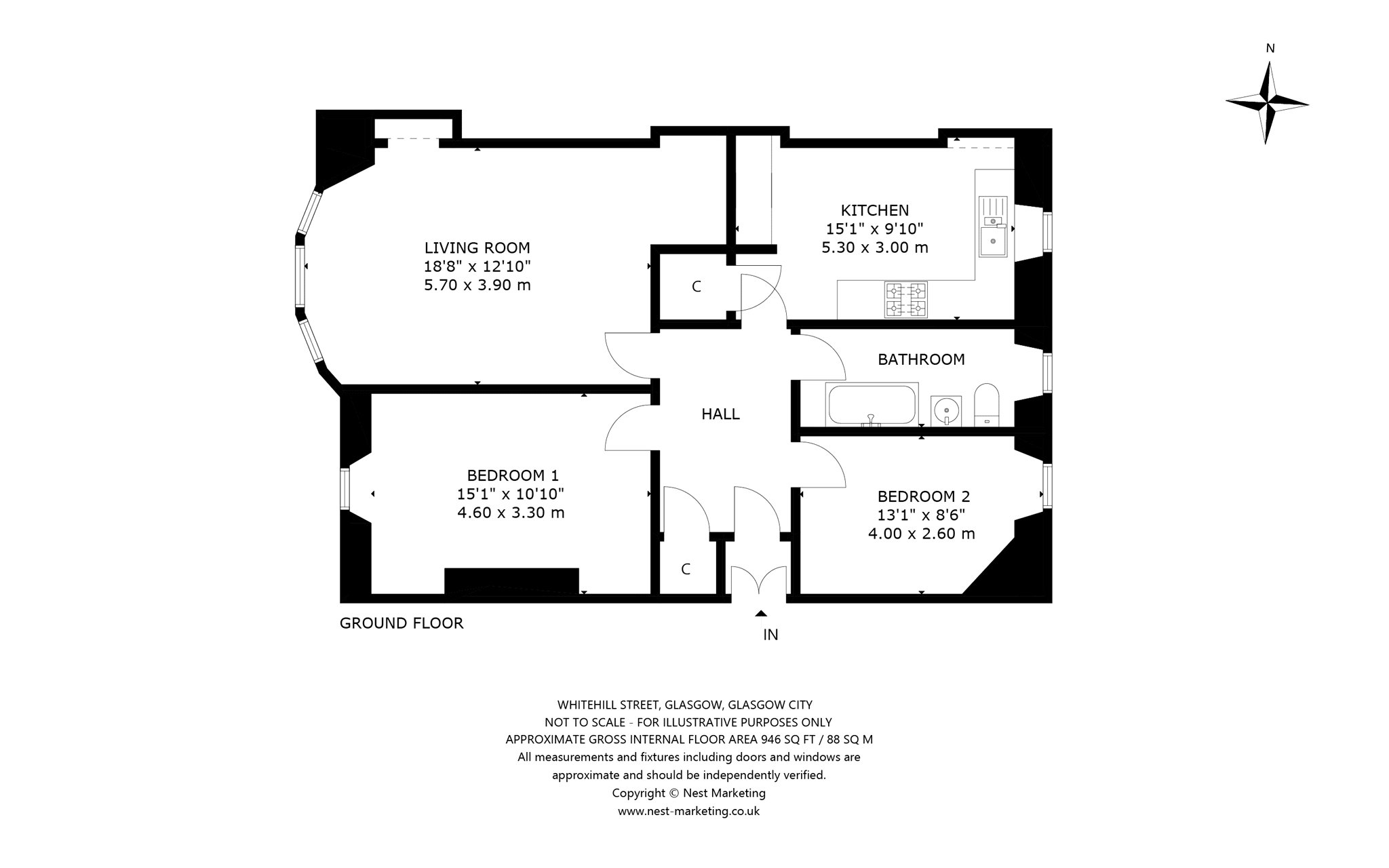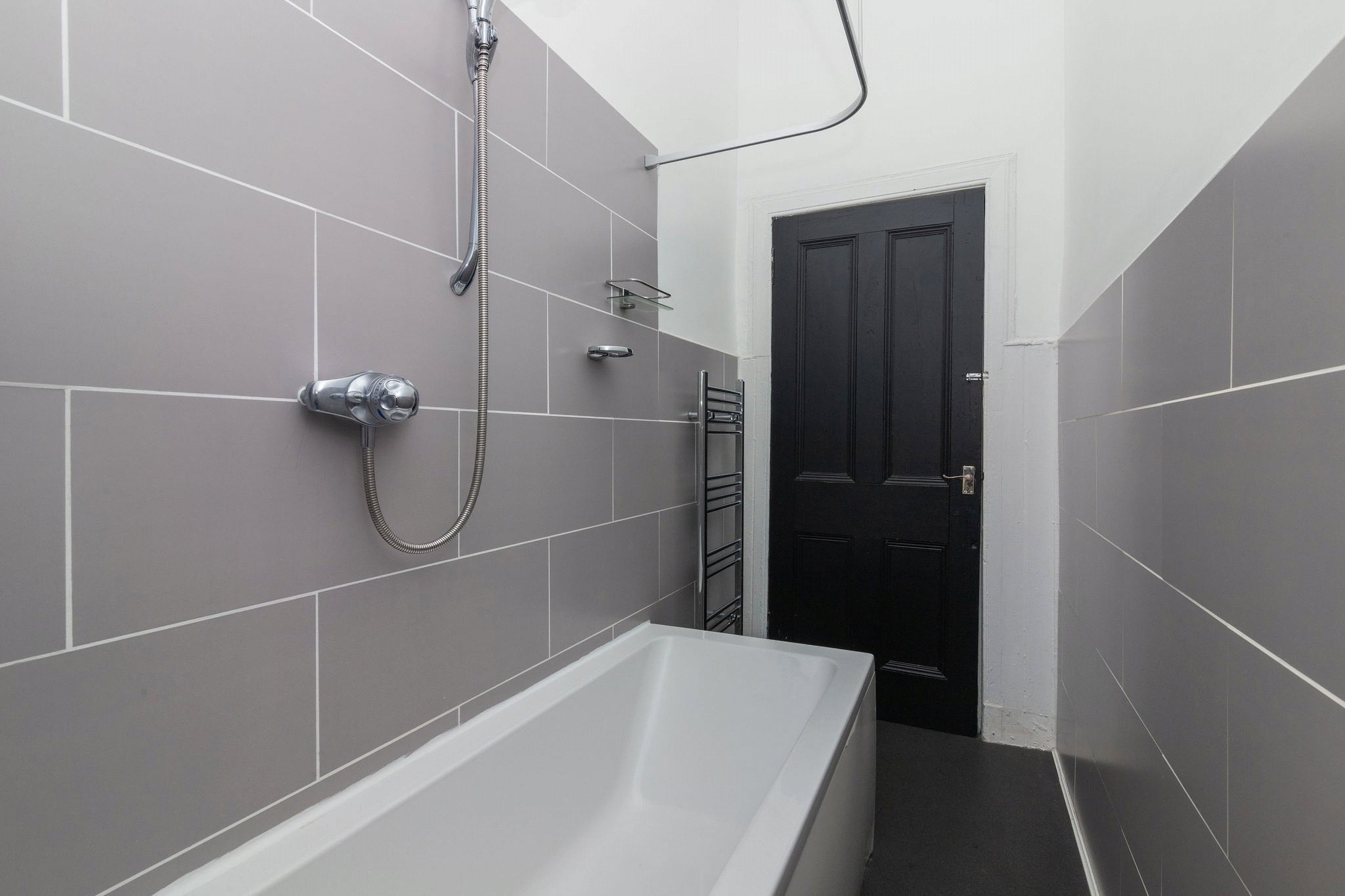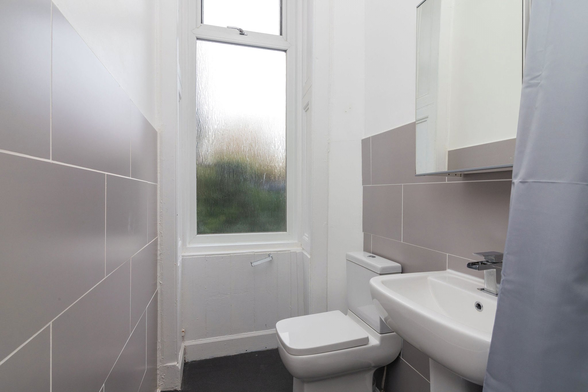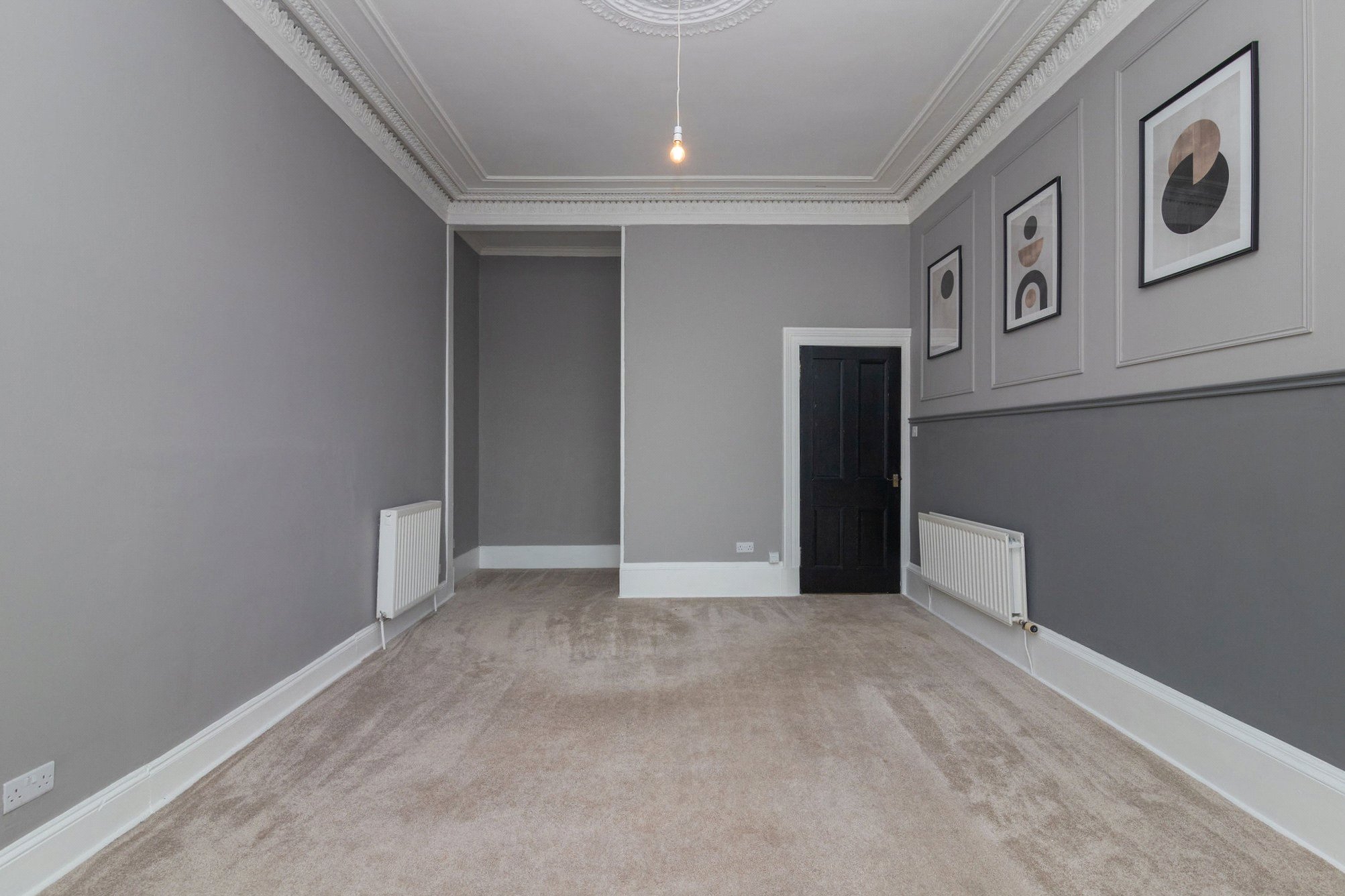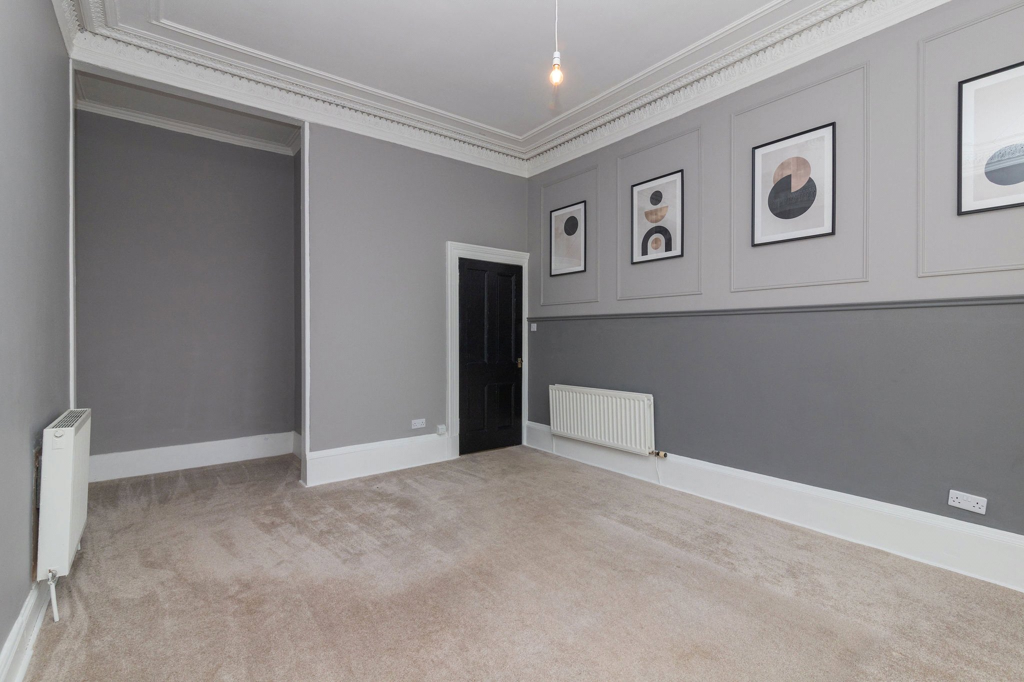 Entered via secure entry to communal close, the property is well presented, tastefully decorated and is a great example of a traditional tenement flat with a mix of traditional and modern features. The accommodation comprise of a spacious dining kitchen with recess and large larder style cupboard a luxury modern re-fitted tiled bathroom with white three piece white suite, spacious three section bay windowed living room extending to 18’8” into recess and there are two double bedrooms offering bright aspects from both its rear windows overlooking the communal rear courtyard or views to front over the private garden. The property has Gas Central Heating and Double Glazing.
