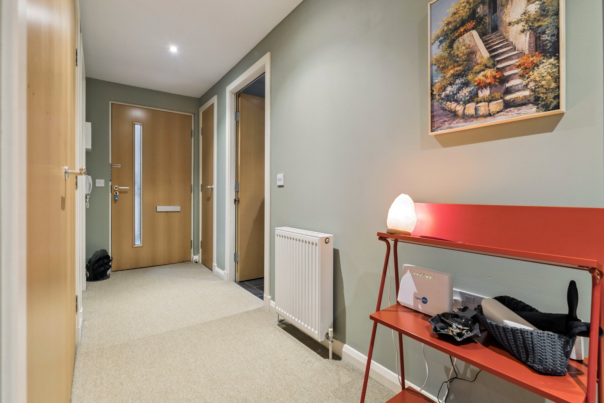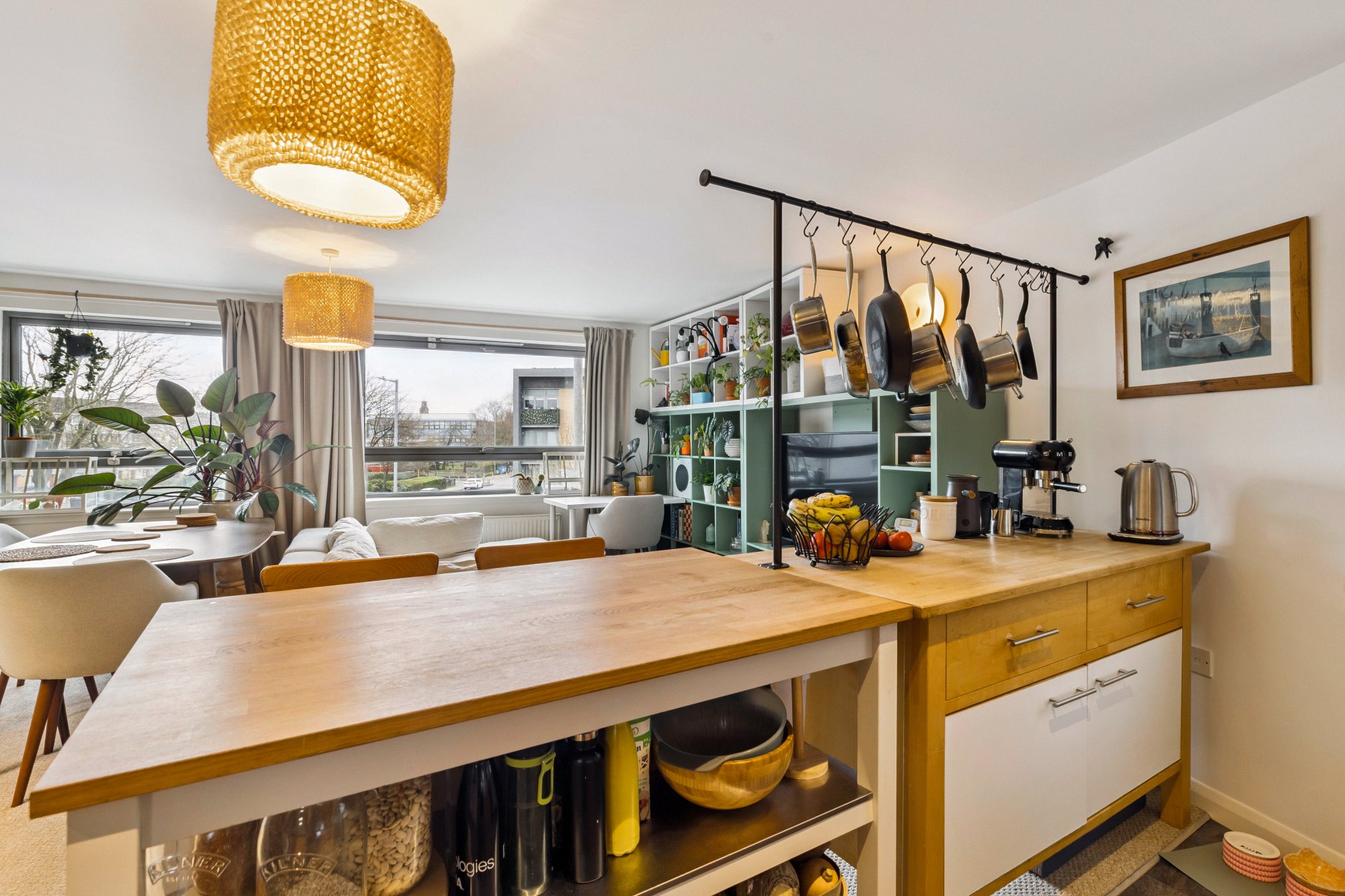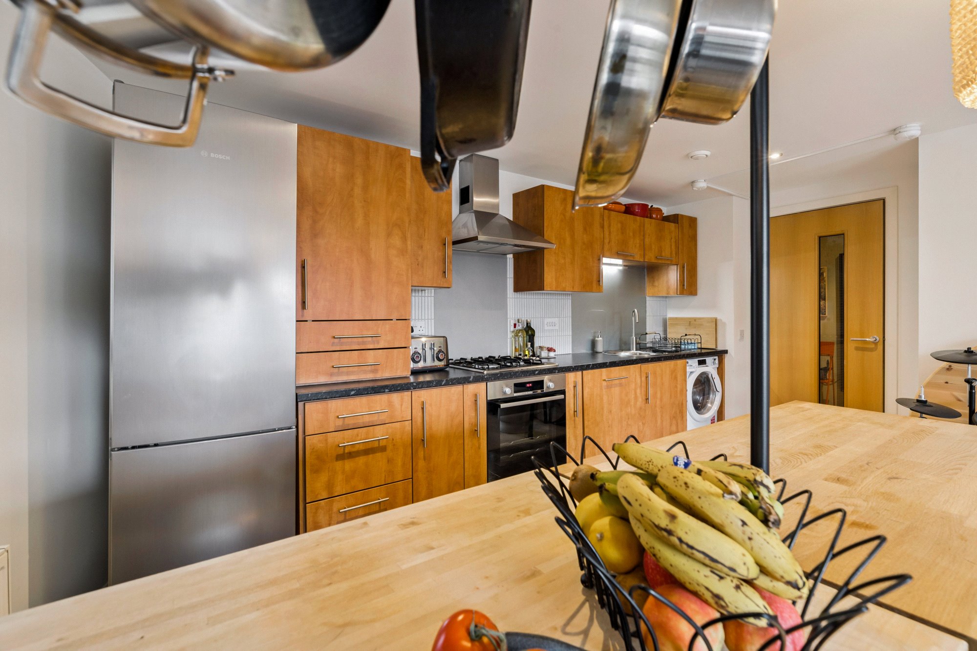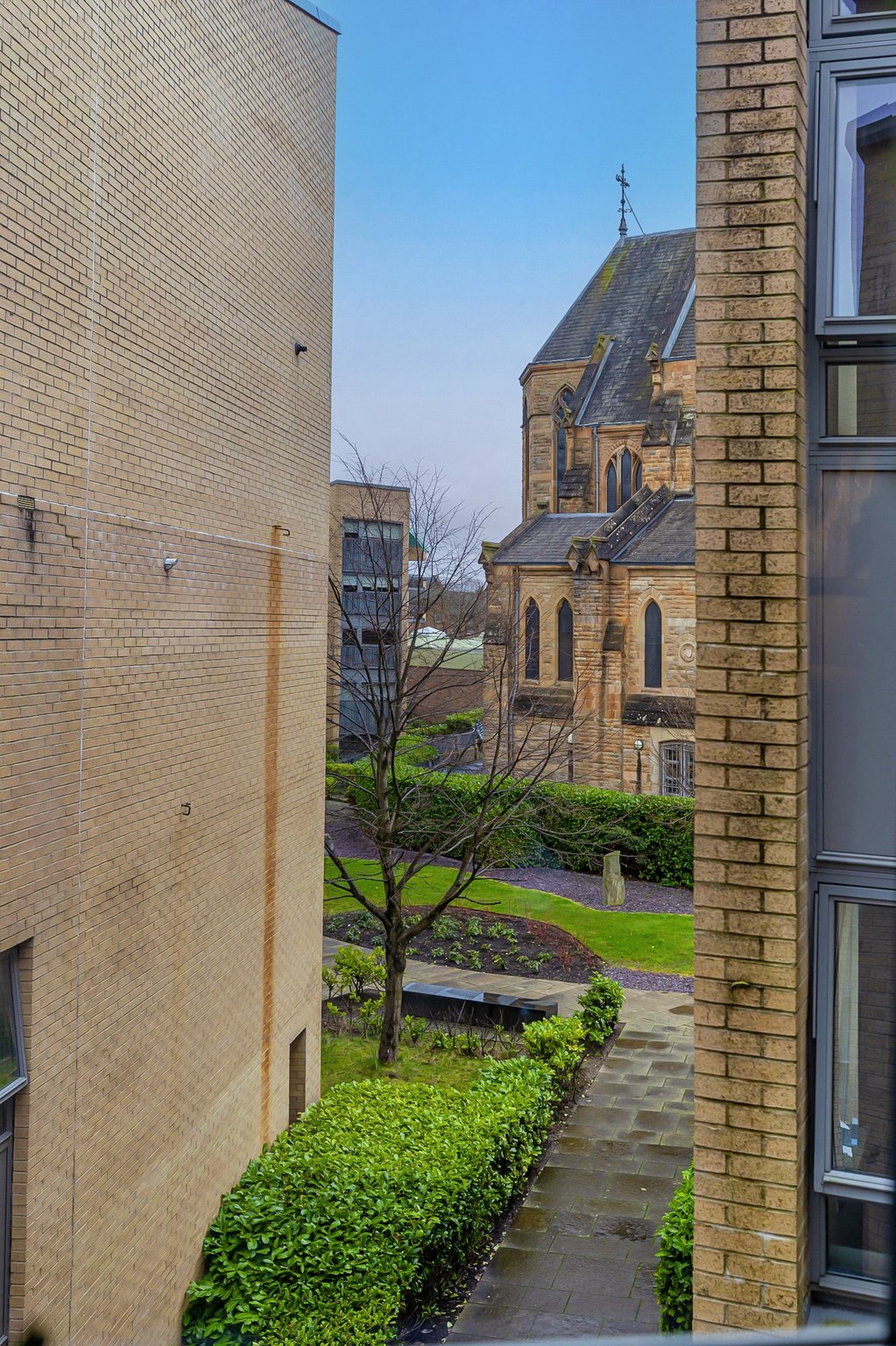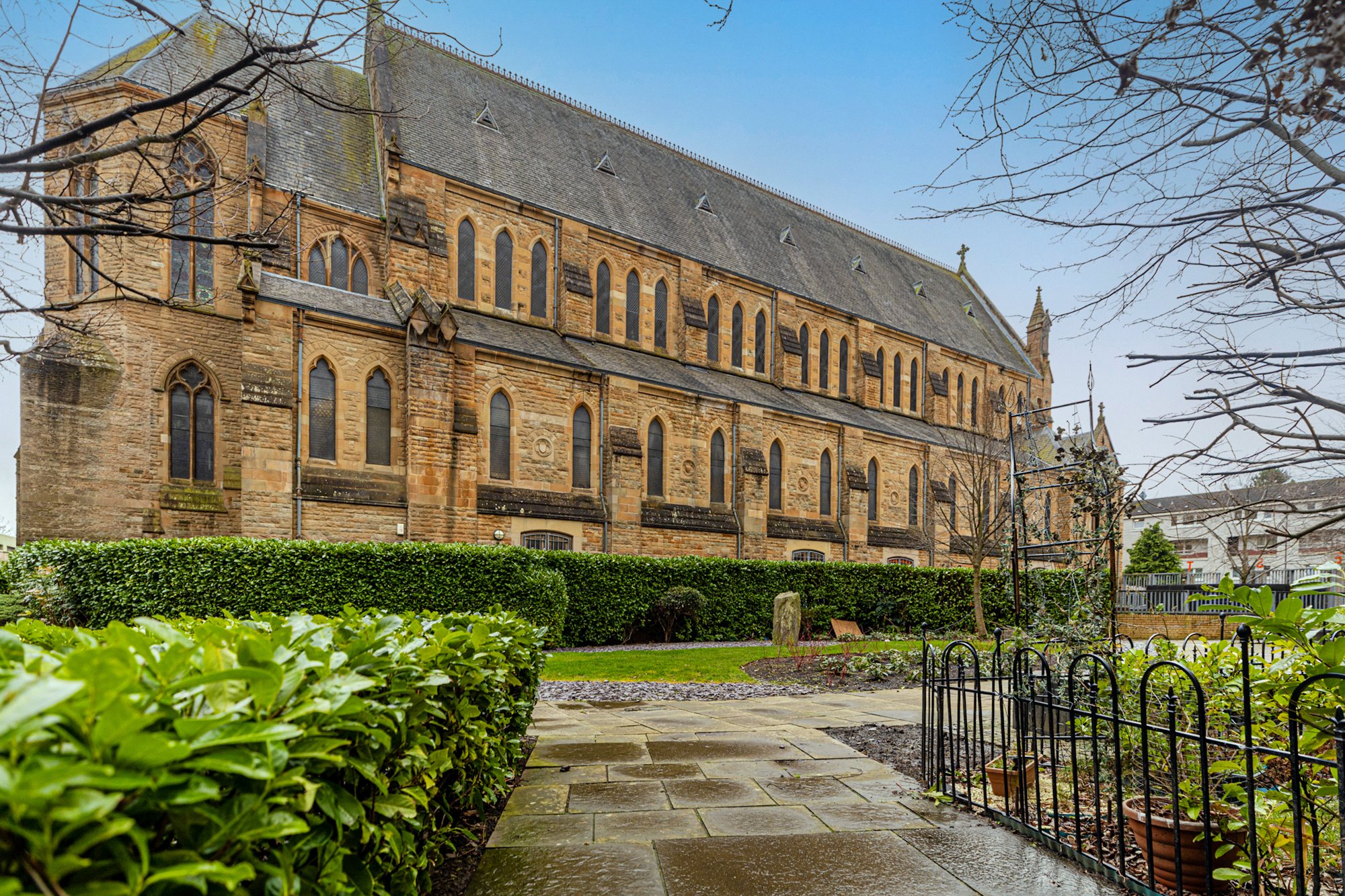 Beautifully presented, this contemporary two-bedroom, two-bathroom apartment occupies a second-floor position within a secure, gated courtyard development, centrally positioned within the sought after New Gorbals district and just a short walk across the River Clyde to Glasgow Green and the Merchant City, the location offers an ideal blend of urban convenience and community appeal. The landscaped communal courtyard provides an attractive and distinctive outlook, framing the impressive St Francis Community Centre Church, one of the Gorbals’ last significant Victorian landmarks, whose striking Gothic architecture contrasts elegantly with the surrounding modern apartment buildings.