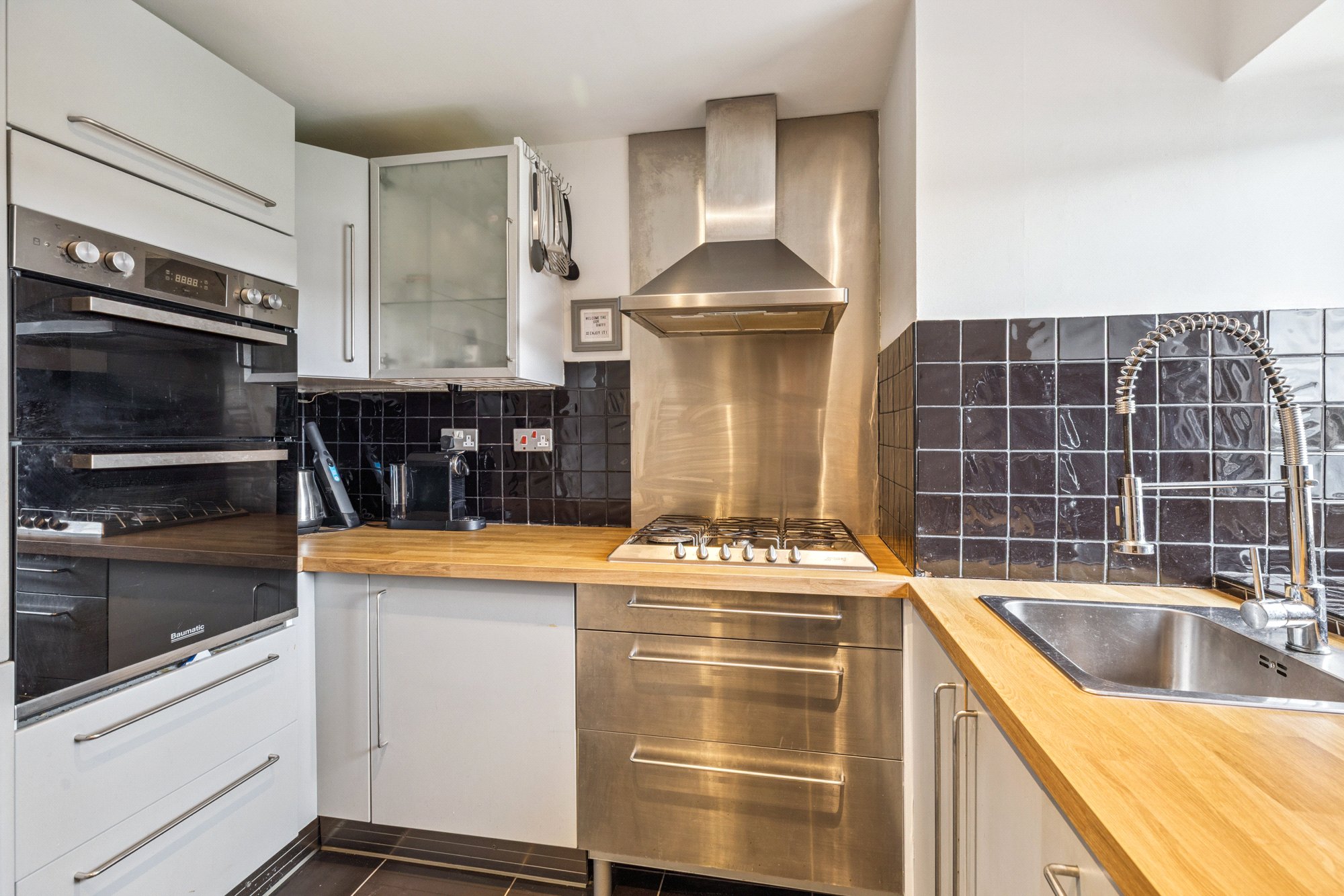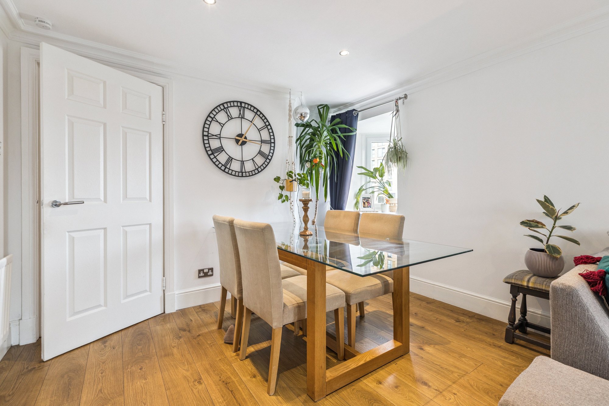 Entered via secure entry to lower floor and each landing and with stair access, the first-floor apartment itself is bright, with dual aspect east and south, and is both spacious, and thoughtfully laid out. A standout feature is the generously sized living and dining room, which enjoys full-height south-facing windows and a patio door to a sunroom and further opening onto the private balcony, offering a peaceful outdoor retreat. Further benefitting from an allocated parking space in the building’s residents’ garage, the property comes with Gas