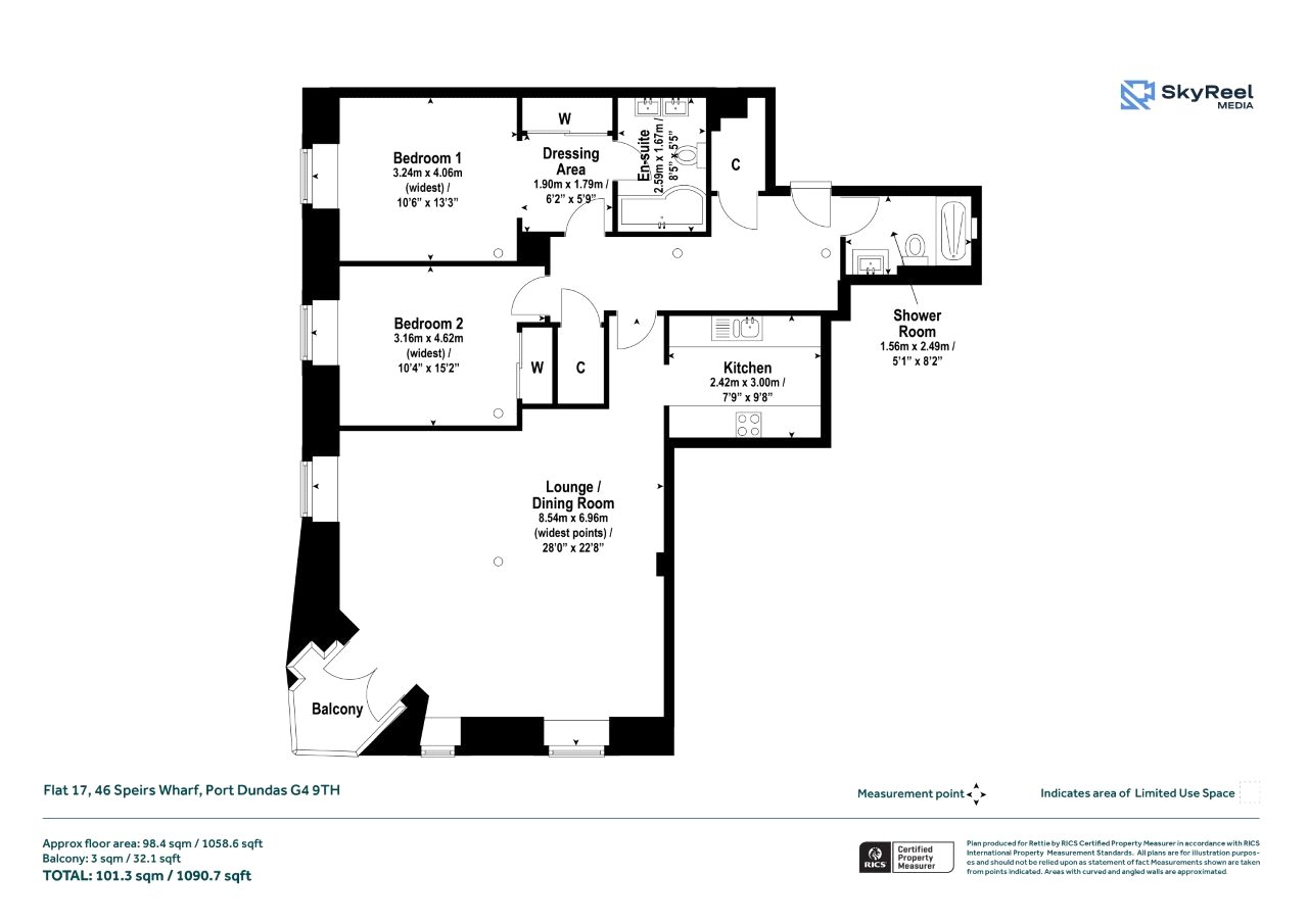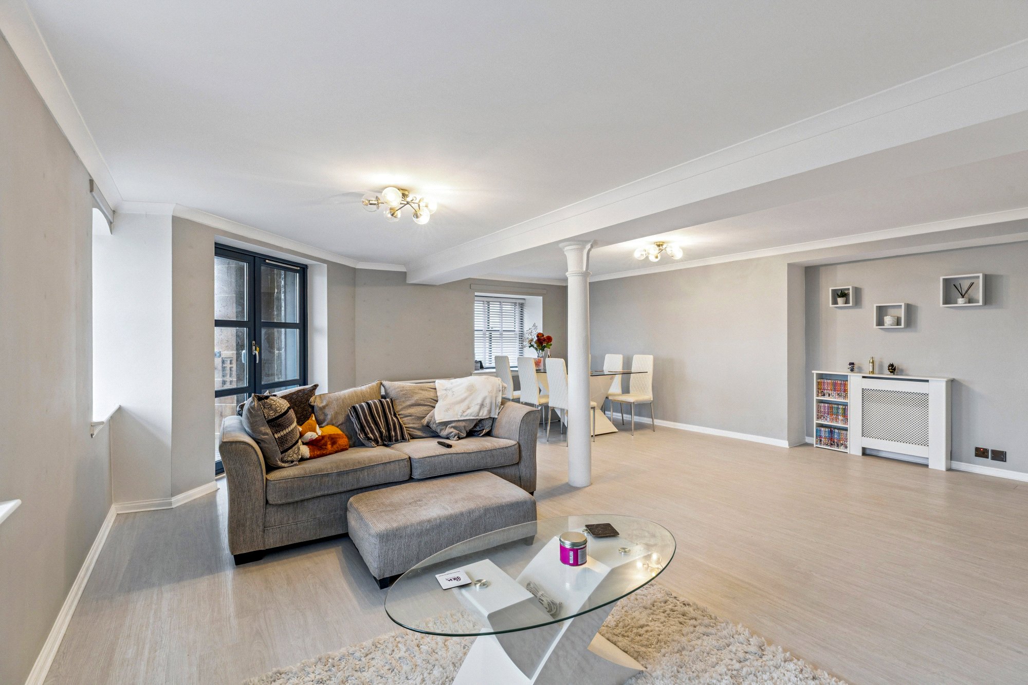 Situated within the iconic Speirs Wharf development and seldom available, this corner set, second floor two-bedroom apartment offers an urban lifestyle with excellent transport links as well as a connection to nature and a scenic outlook, from the private balcony offering lovely views of the Forth and Clyde Canal. With dual aspects from its spacious open plan living and dining space and extending to over 1058 sq ft, the property has been upgraded and well maintained during its current ownership. The development is located on the north edge of the City Centre, with the Wharf buildings dating back to 1846, they were converted for both residential and commercial use in the 1980’s and with block 46 being upgraded more recently in the early 2000’s with notable features to include a deli restaurant, a spa, off street parking with security barrier, residents’ gym and residents’ indoor heated swimming pool with jacuzzi, steam room and sauna, as well as having great proximity to the City Centre, the West End and excellent transport links via the M8 motorway.