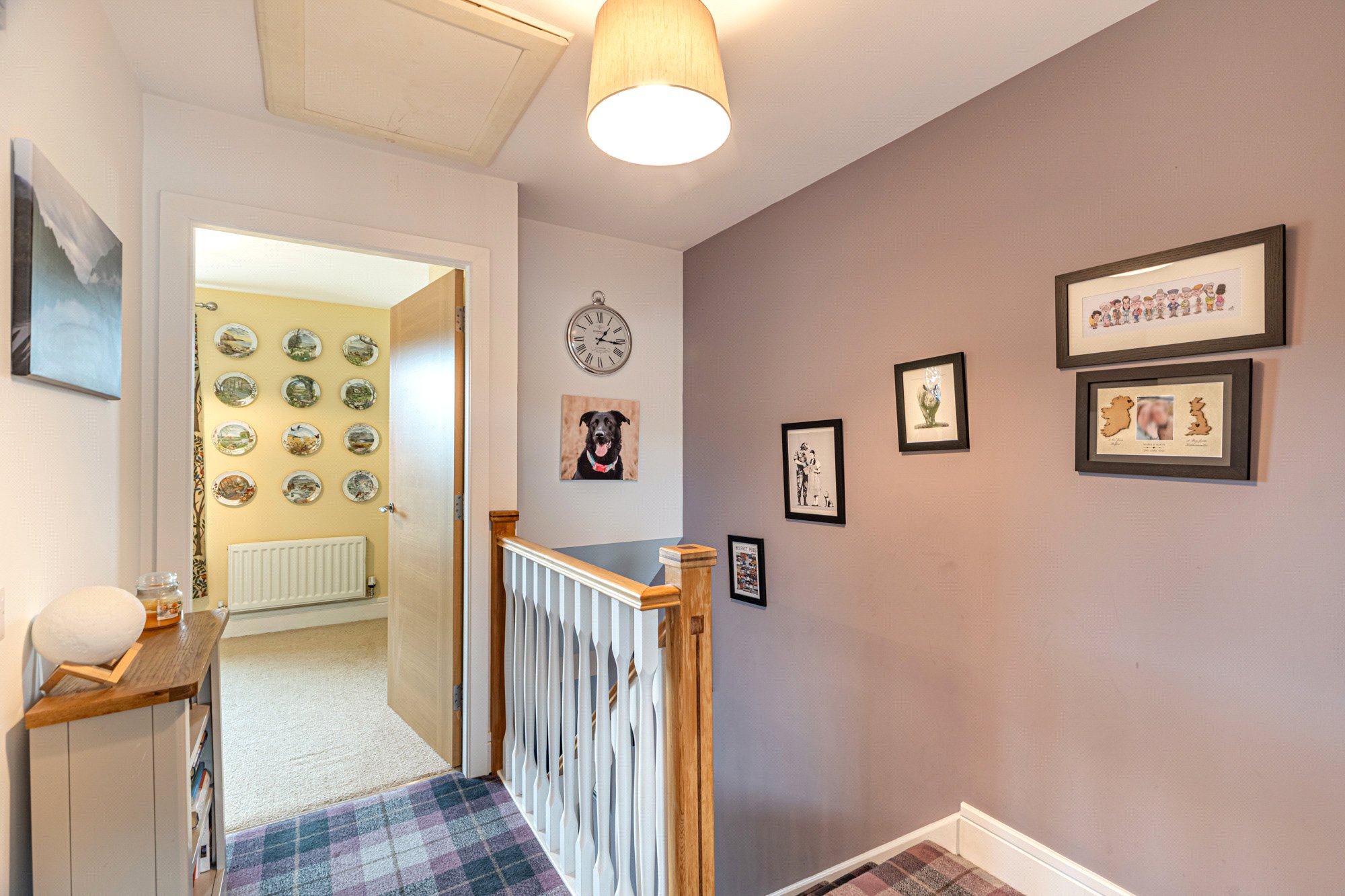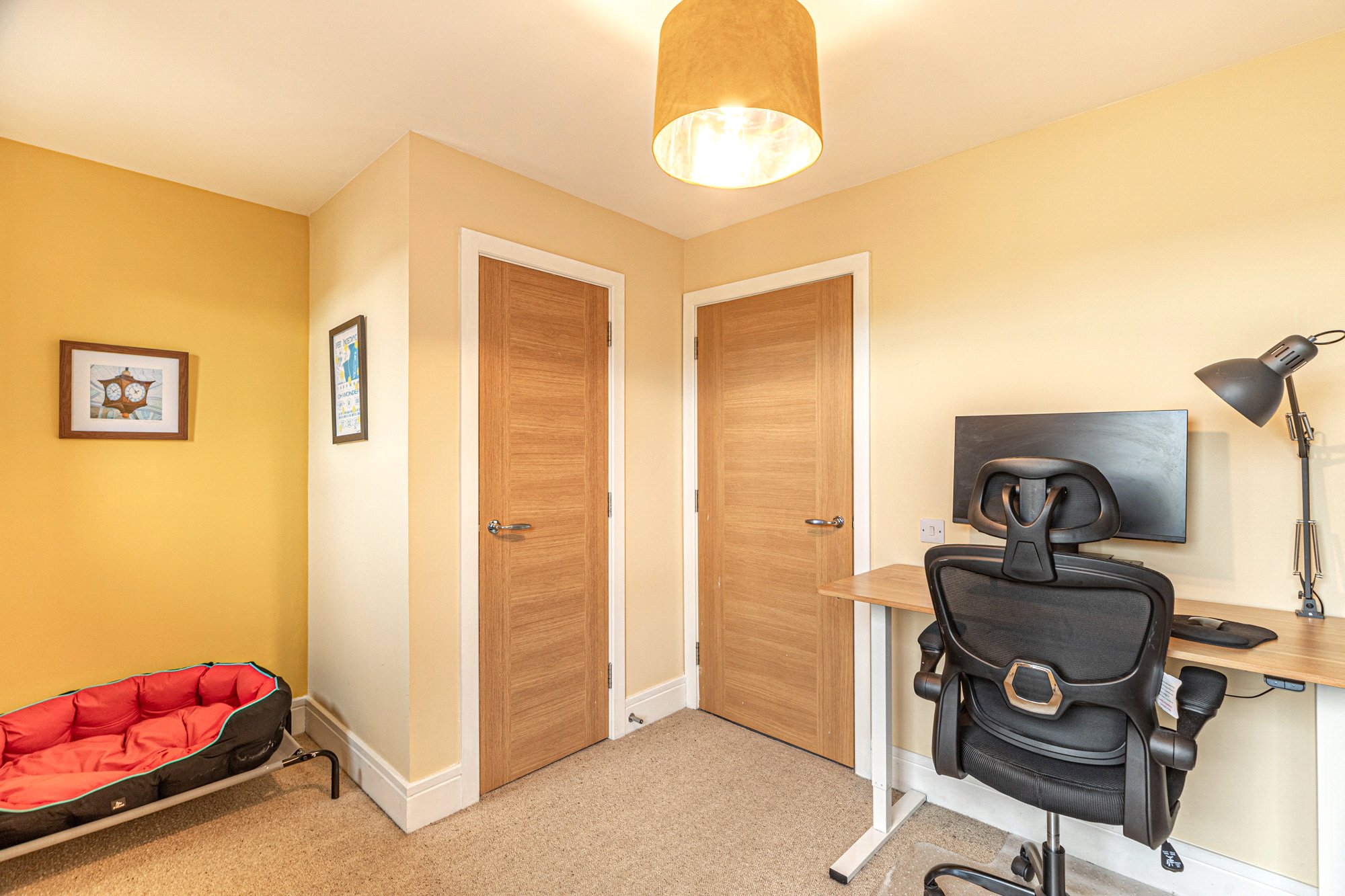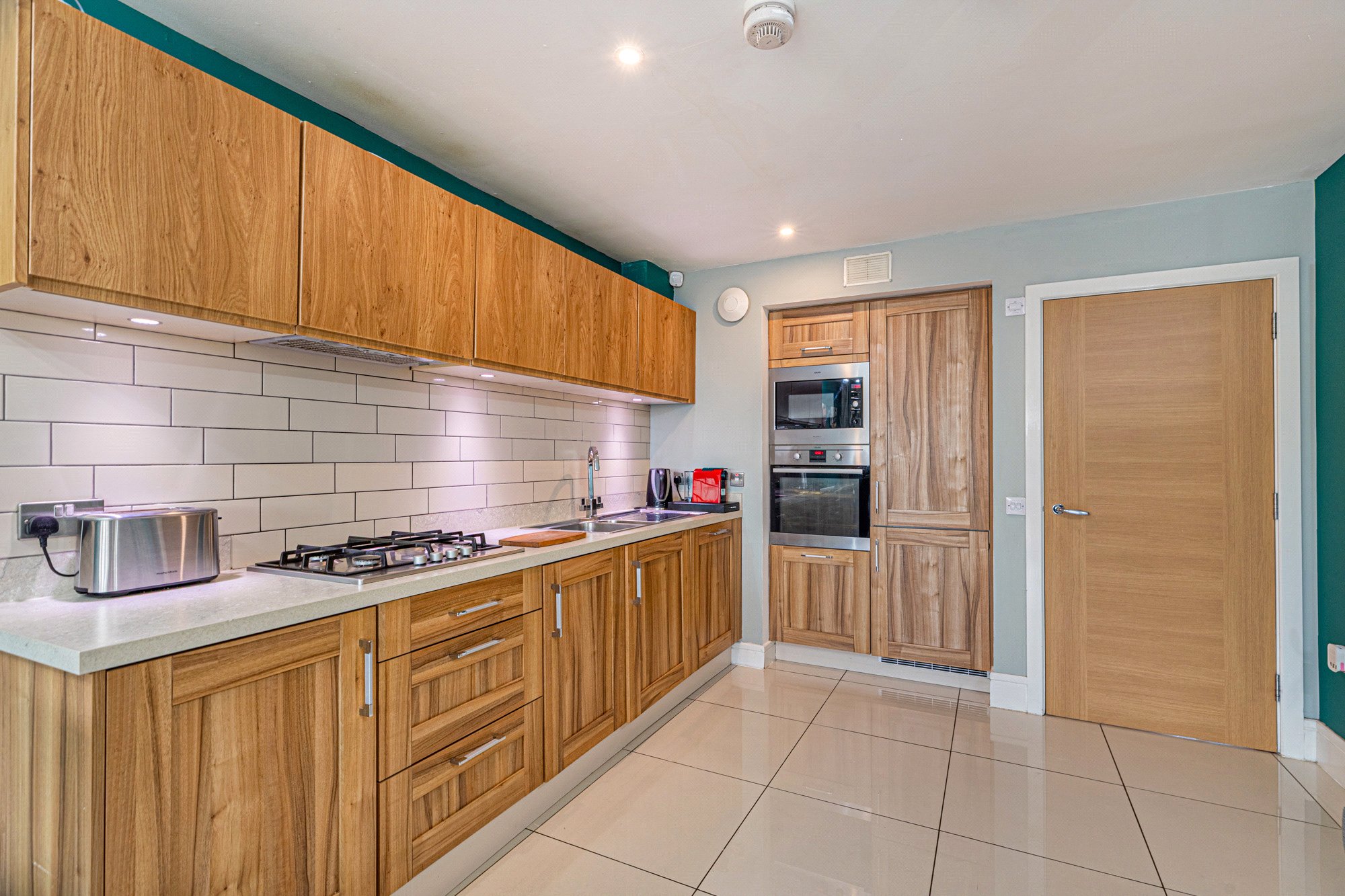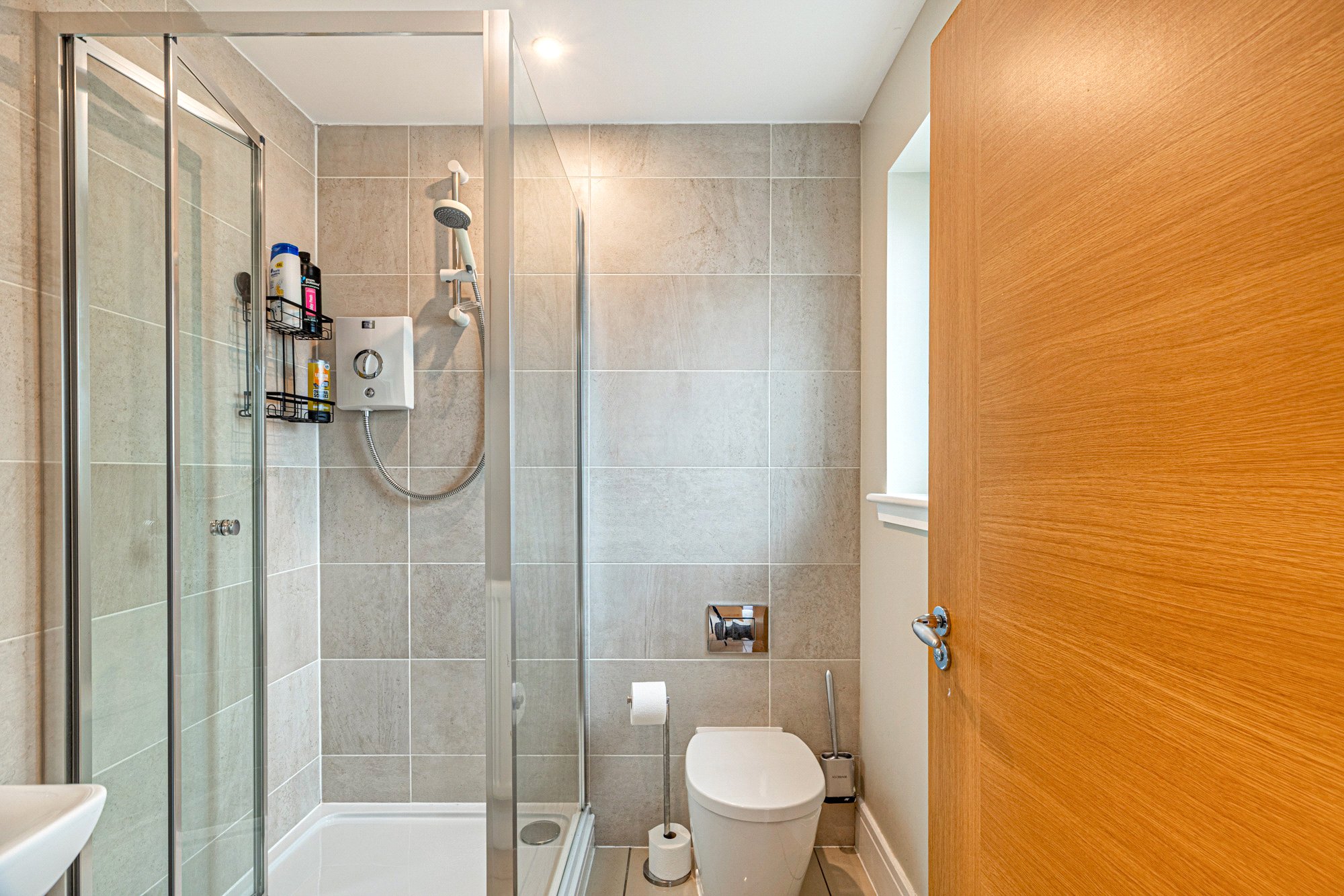 Main door entry to welcoming reception hallway with stairs to upper floor. Downstairs there is a re-fitted shower room, hall leads through to the open plan living dining and kitchen space spanning over 20 ft, the kitchen area is the modern and bright kitchen with a range of base and wall mounted cabinets and integrated appliances and with natural light flooding in from patio doors to the garden and a handy laundry cupboard offering additional storage. Upstairs there are two double bedrooms, both with fitted wardrobes and there is a modern main bathroom with white three-piece suite with over bath shower, two storage cupboards and access to a floored loft. The property has EPC Band B with double glazing and gas combi central heating boiler.