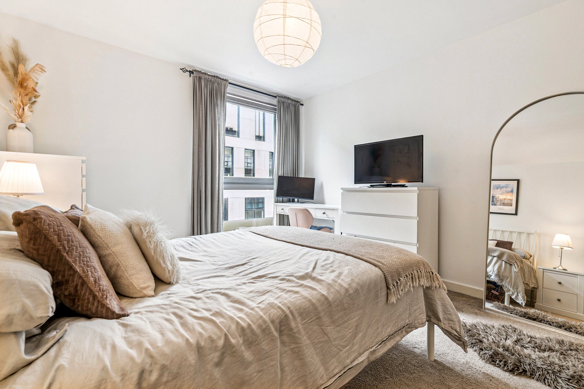This trendy apartment is situated in the heart of the Merchant City where there is a Sainsbury’s local store on the ground floor of the building and an outstanding selection of shops nearby in the Style Mile of Ingram Street, Buchannan Street and Argyle Street together with a wonderful choice of highly acclaimed restaurants and bars. Transport links are on the doorstep via bus and by rail at Glasgow Queen Street, High Street and Central Station are all within a few minutes’ walk. Strathclyde University and Research Centres are on the doorstep and the Royal Infirmary hospital is nearby on High Street. The property is exceptionally well placed for road links including the M8 motorway network.