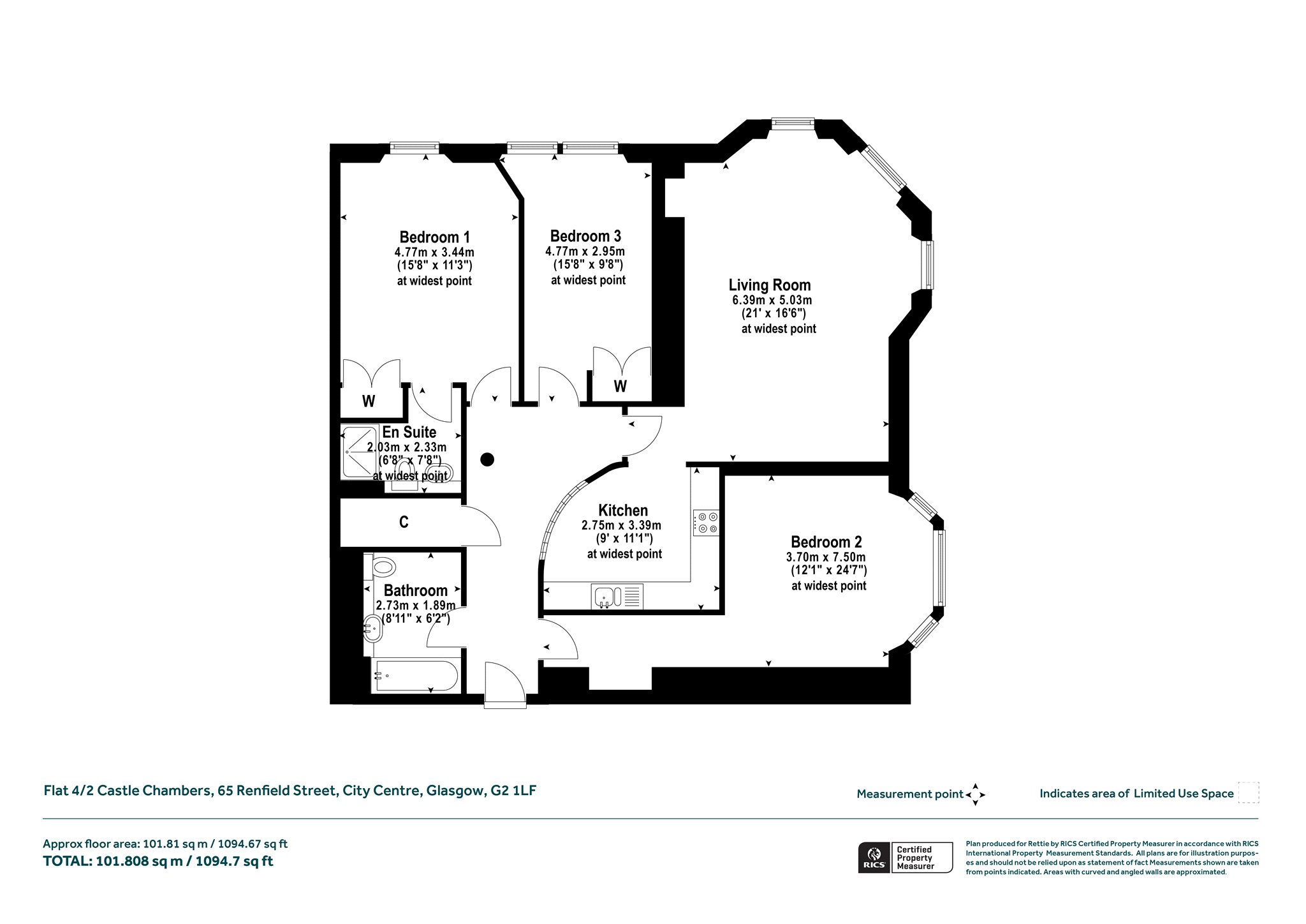 Generously proportioned, at over 1094 sq ft, this three-bedroom apartment occupies a fourth-floor position within Castle Chambers, an impressive red sandstone building in the heart of the City Centre. Situated on the corner of Renfield Street and West Regent Street. Originally constructed in early 1900 for G. & J. MacLachlan Brewers, the building was converted into residential apartments almost 100 years later. There is a caretaker on site, an active residents committee and the location is exceptionally well placed to take advantage of an enviable selection of local amenities including, every-day and leisure shopping, excellent transport links by bus, rail and road and a wide selection of bars and restaurants.