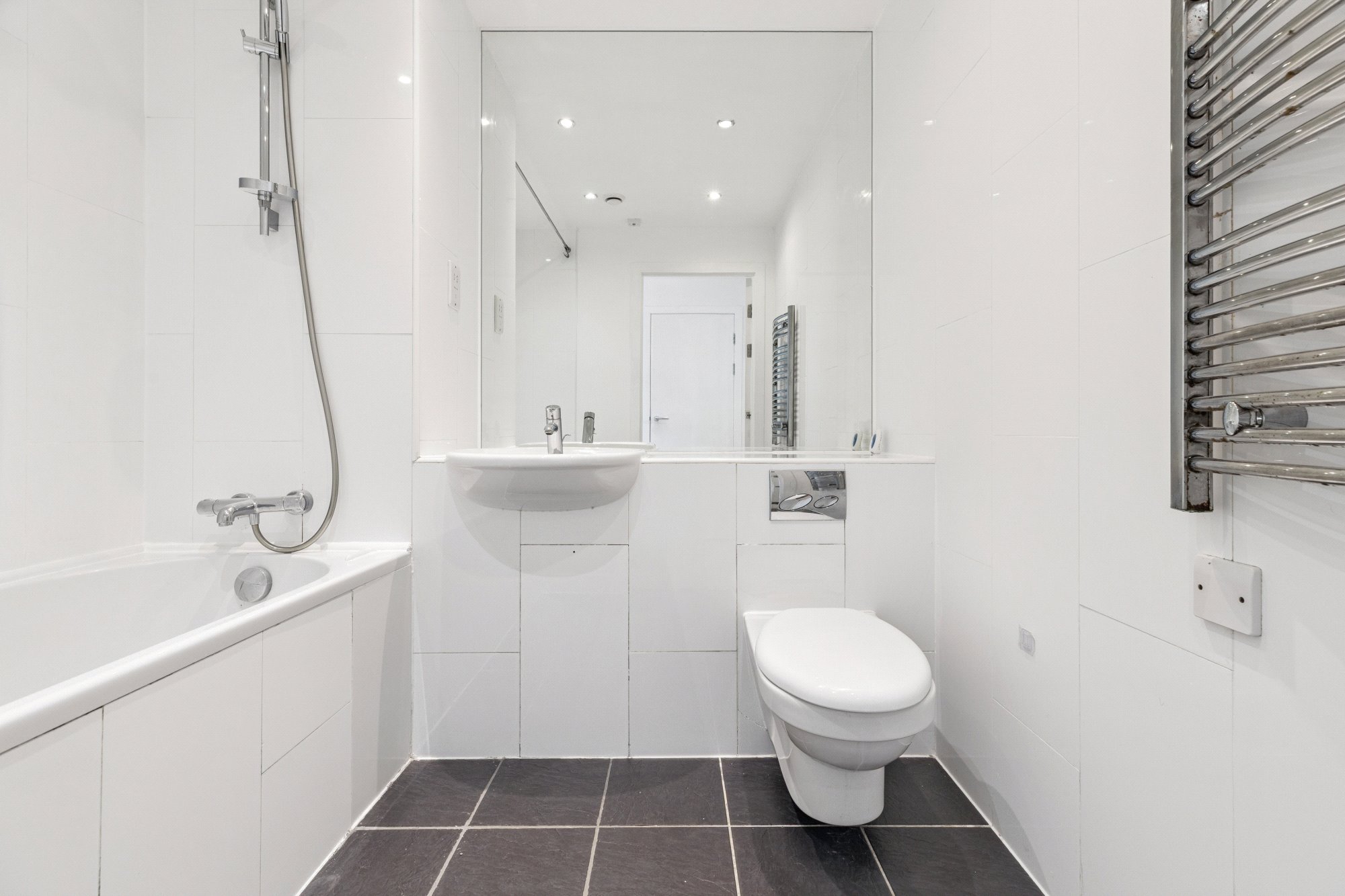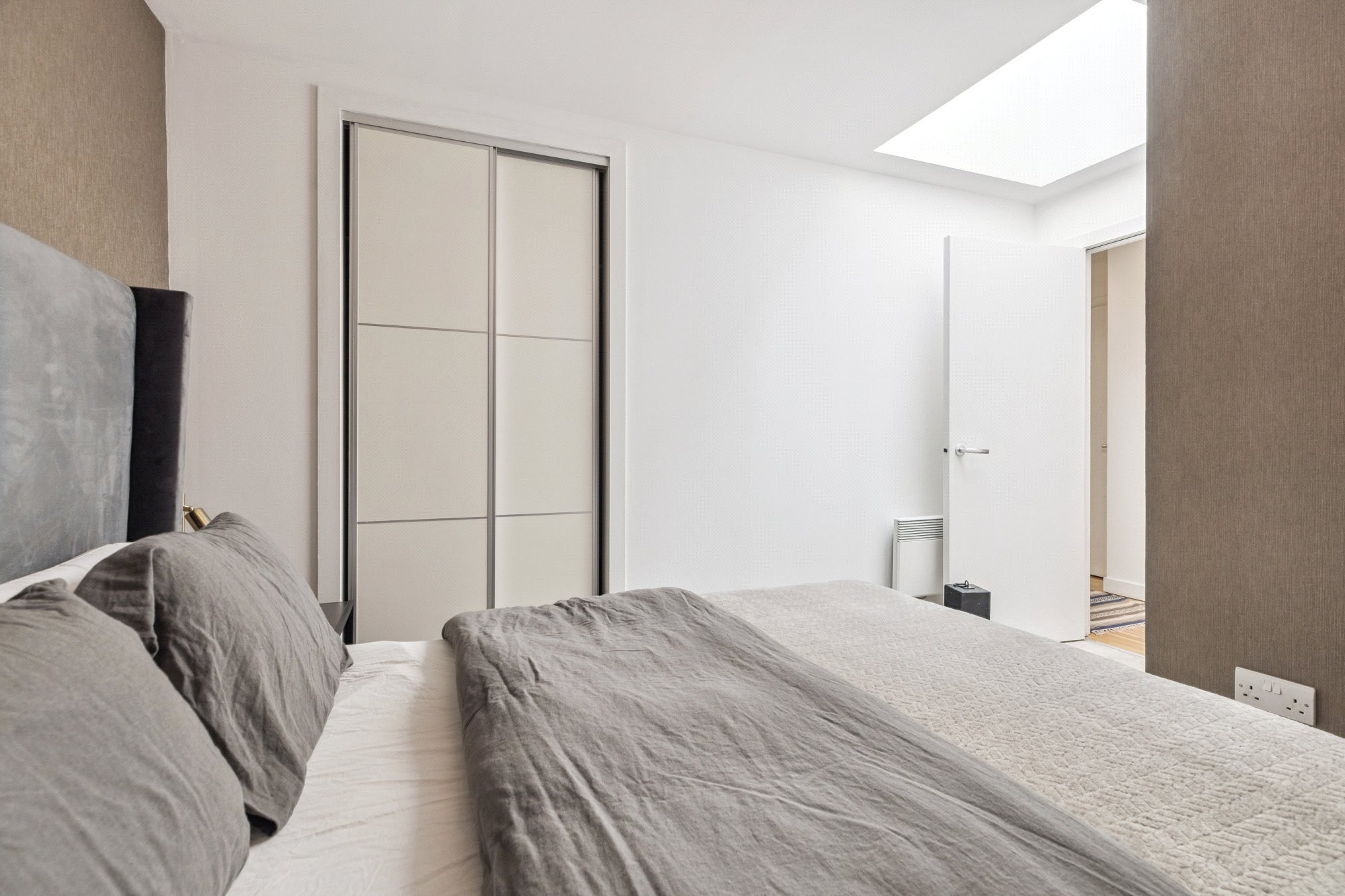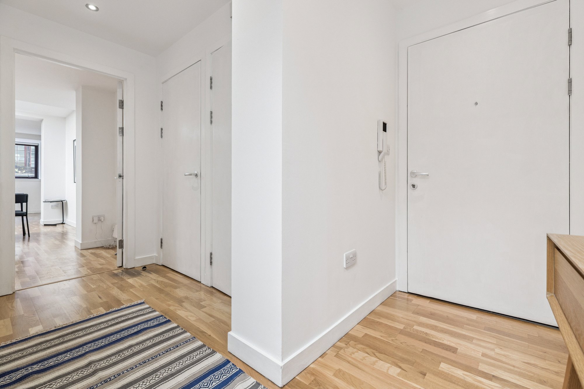 Accessed via security entry to communal hallway, there is both lift and stair access to upper floors. Completed in 2009 by Messer’s Burrell Homes the flat forms part of the traditional sandstone warehouse refurbishment section of the development. The accommodation comprises reception hallway with quality wood flooring, a laundry room cupboard, additional storage and access to the impressive open plan living/dining room spanning with engineered wood flooring and modern kitchen set back from the living space, complete with a range of base and wall mounted units, integrated appliances, main three-piece bathroom complete with tiled floor and wall coverings and over bath shower, the double bedroom is a haven for sleep with its Velux window and cavernous feel. The property has double glazing, electric heating system and fresh décor throughout. There is a locked communal bike store in the basement and an active building Residents Committee and WhatsApp group to steer the building management and maintenance.