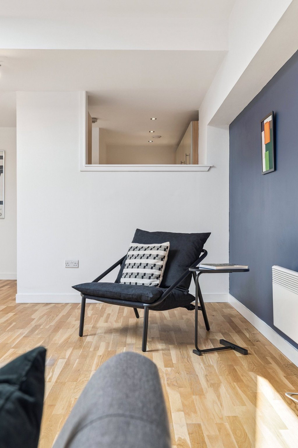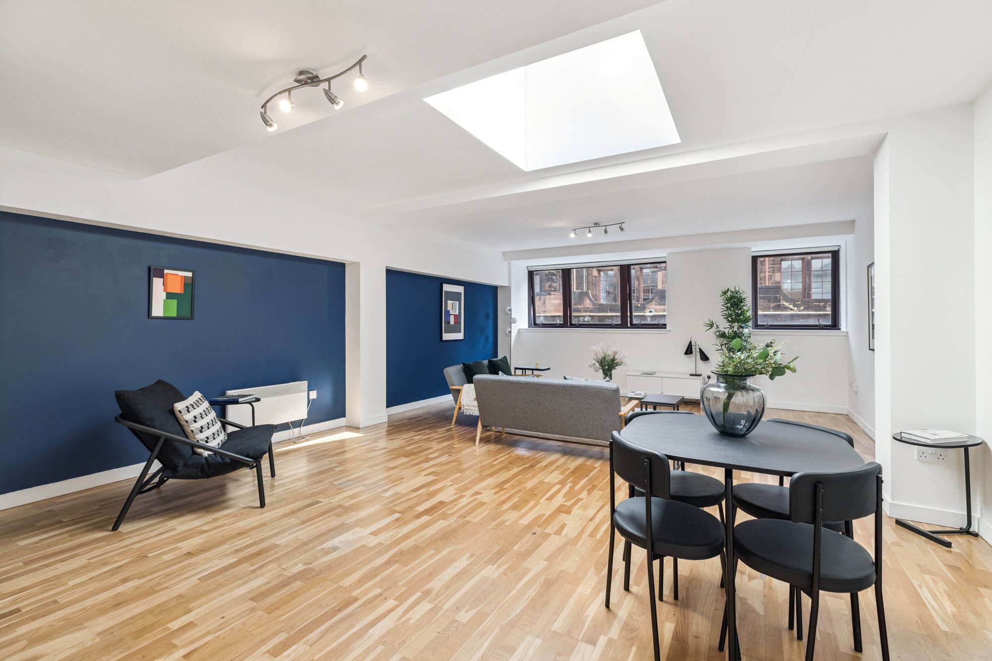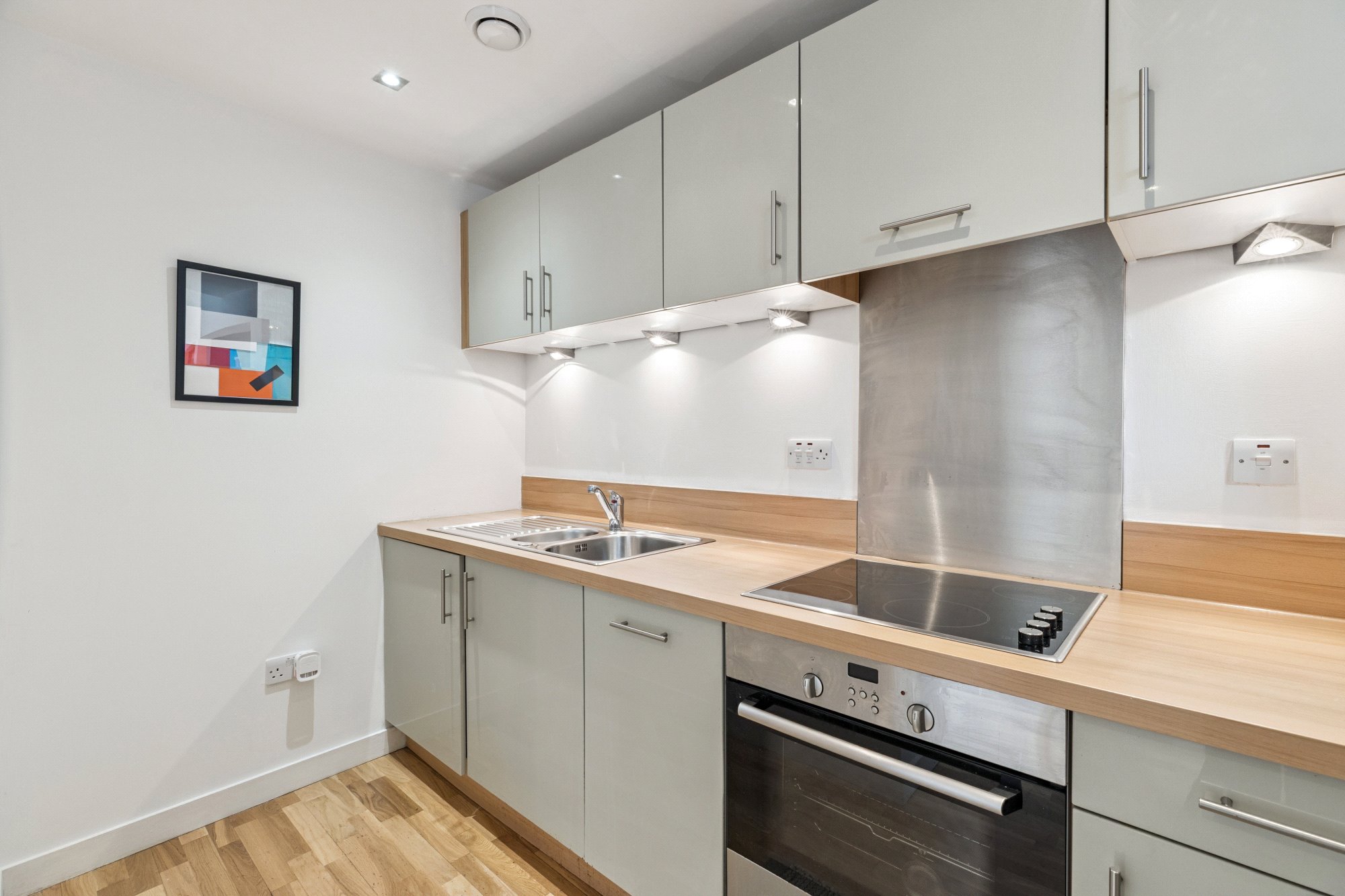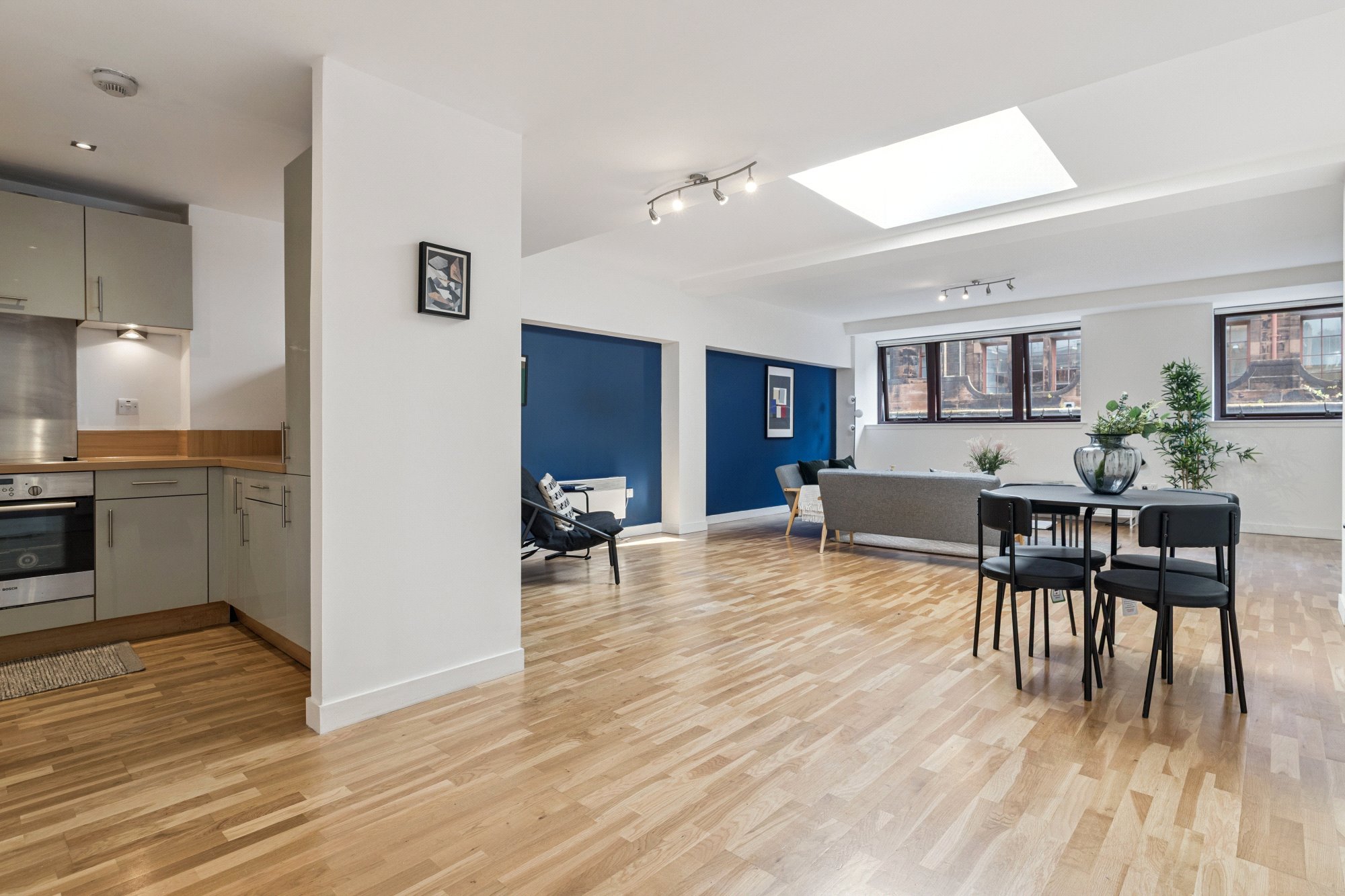 Super stylish and exceptionally spacious this one-bedroom, City apartment has been recently redecorated, and offers very generous proportions extending to over 950 sq ft. Situated on the fourth floor of the Vienna Apartments, the extensive open plan loft style living space stretches over 25’ 8” and has windows stretching the length of the east facing space, and with open outlook over Mitchell Street and towards the famous Lighthouse tower. The layout offers great flexibility for anyone working from home and looking for space and being so central, the property is well placed to take advantage of the many amenities of City living and has excellent transport links.